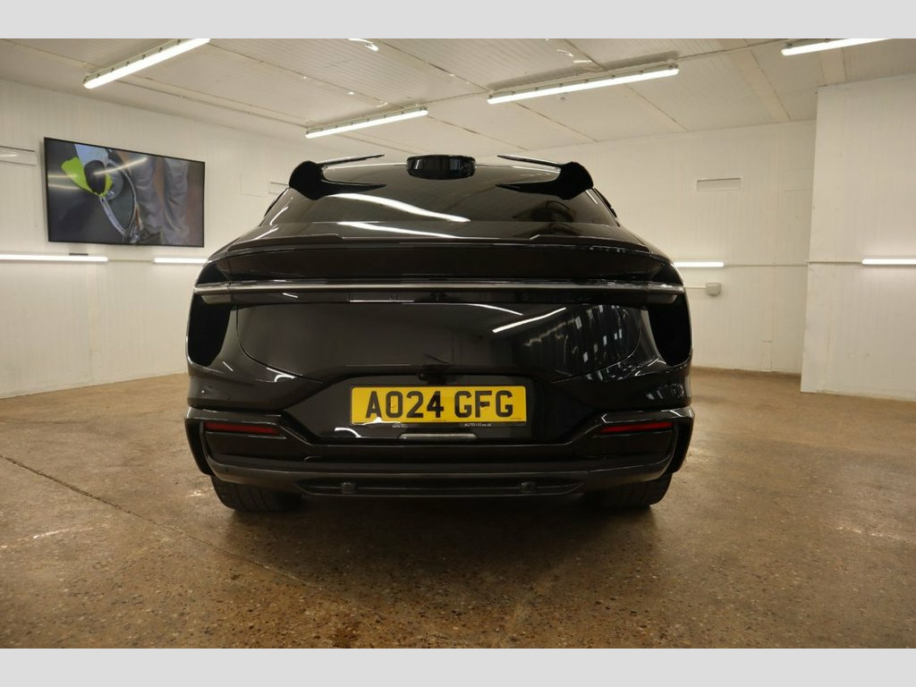 This 2024 Lotus Eletre R in Black Lotus finished in Stella Black with contrasting Grey Leather and Alcantara Sport Ricaro trim with double grey stitching presents an exceptional opportunity with its remarkably low mileage of just 3258 miles. As an all electric, four wheel drive SUV, this R trim model boasts a substantial 112 kWh battery offering a maximum range of 279 miles. Charging at home with a 7kW charger will take approximately 16 hours and 40 minutes, while rapid public charging can replenish the battery from empty to 80% in a swift 22 minutes. This capable vehicle also has a towing weight of 2250 kg. The Eletre R is equipped with advanced technology to enhance your driving experience. Notable features include Blind Spot Detection with Blind Spot Assistance, a Heads Up Display, and Matrix LED Headlights for superior visibility. Intelligent Adaptive Cruise Control with ACC ensures effortless journeys, and Ultra HD Cameras, including front and rear parking assistance, provide comprehensive awareness. Performance is a key highlight, with an impressive 0-60mph acceleration time of just 3.0 seconds, demonstrating its superior capability compared to other vehicles in its class. Factory options include Panoramic Full Length Sunroof with Electric Tinting and Blackout, Camera Side Door Mirrors, Cameras All Round, Black Sport Gloss Alloy Wheels, Electric Boot Opening and Closing, Piano Wood Pack to Central Dashboard, Drive Modes include Sport Individual Track and Off-road an 12-Way Electrically Adjustable Front Sea, 15.1in HD OLED Centre Screen, 22in Alloy Wheels - 10-Spoke - Gloss Bla, 22kW On-Board Charger, 4-Zone Electronic Climate Control, 40/20/40 Folding Rear Seats, 5G Compatibility, ABS - Anti-Lock Braking System, Active Aero Pack, Active Air Suspension, Active Front Grille, Active Rear Spoiler, Air Quality System, Airbags - Driver, Aluminium Gloss Black Roof, Auto-Dimming Side Mirrors, Black Badging, Black Pack, Blind Spot Detection, Bluetooth, Cantilevered Carbon Fibre Floating Split, Carbon Fibre Pack, Charge Indicator, Children Presence Detection, Collision Mitigation Support Front - CMS, Collision Mitigation Support Rear - CMSR, Configurable Ambient