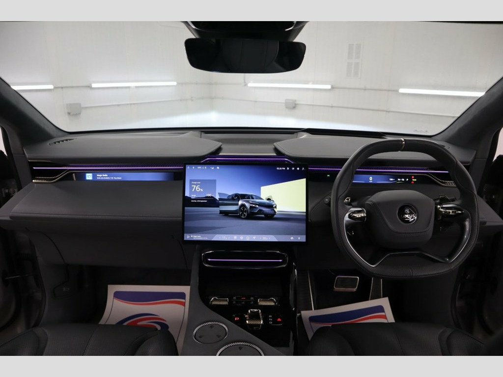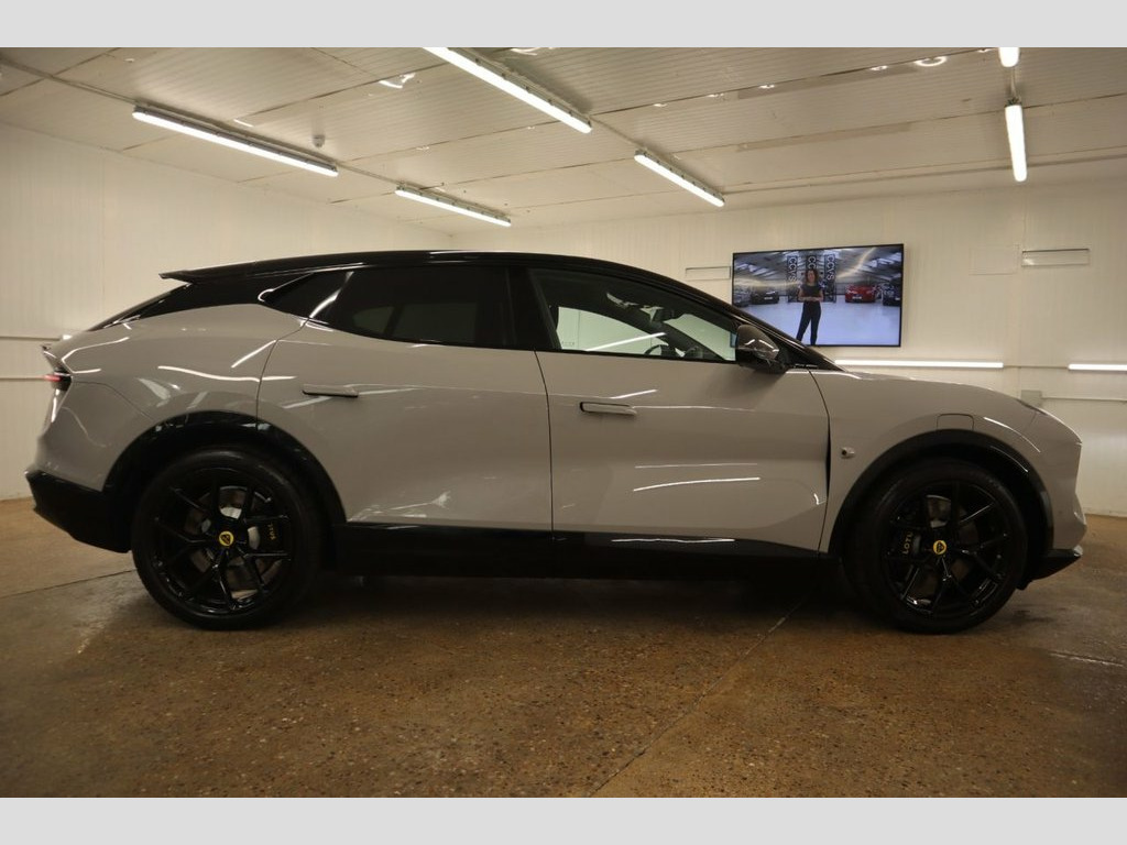 This 2023 Lotus Eletre R is a remarkable example of electric performance, offering an exhilarating driving experience. As a Four Wheel Drive electric SUV, it boasts a substantial 112 kWh battery, providing a maximum range of 279 miles on a full charge. For convenience, a full charge at home using a 7kW charger takes approximately 16 hours and 40 minutes, while rapid public charging can replenish the battery from empty to 80% in just 22 minutes. This model is also equipped to handle practical needs, with a towing weight of 2250 kg. Inside, you'll find a premium KEF audio system, ultra HD cameras for enhanced parking assistance, Bluetooth connectivity, a heads up display, and wireless smartphone charging, all designed to elevate your journey. The performance of this Lotus Eletre R truly sets it apart. Its acceleration is particularly impressive, achieving 0-60mph in a mere 3.0 seconds, demonstrating a significant advantage over many comparable vehicles. This rapid acceleration is a testament to the advanced engineering and electric powertrain that Lotus is renowned for. The combination of its dynamic capabilities, extensive range, and advanced technology makes this Eletre R a compelling choice for those seeking a sophisticated and powerful electric SUV. Presented in stunning Kaimu Grey with contrasting Leather and Alcantara Sports Trim with double Grey stitching with two keys and manufacturers warranty. Factory options include Apple CarPlay, dual zone air-conditioning, 12-Way Electrically Adjustable Front Sea, 15.1in HD OLED Centre Screen, 22in Alloy Wheels - 10-Spoke - Gloss Bla, 22kW On-Board Charger, 4-Zone Electronic Climate Control, 40/20/40 Folding Rear Seats, 5G Compatibility, ABS - Anti-Lock Braking System, Active Aero Pack, Active Air Suspension, Active Front Grille, Active Rear Spoiler, Air Quality System, Airbags - Driver, Aluminium Gloss Black Roof, Auto-Dimming Side Mirrors, Black Badging, Black Pack, Blind Spot Detection, Bluetooth, Cantilevered Carbon Fibre Floating Split, Carbon Fibre Pack, Charge Indicator, Children Presence Detection, Collision Mitigation Support Front - CMS, Collision Mitigation Support Rear - CMSR, Configurable Ambient