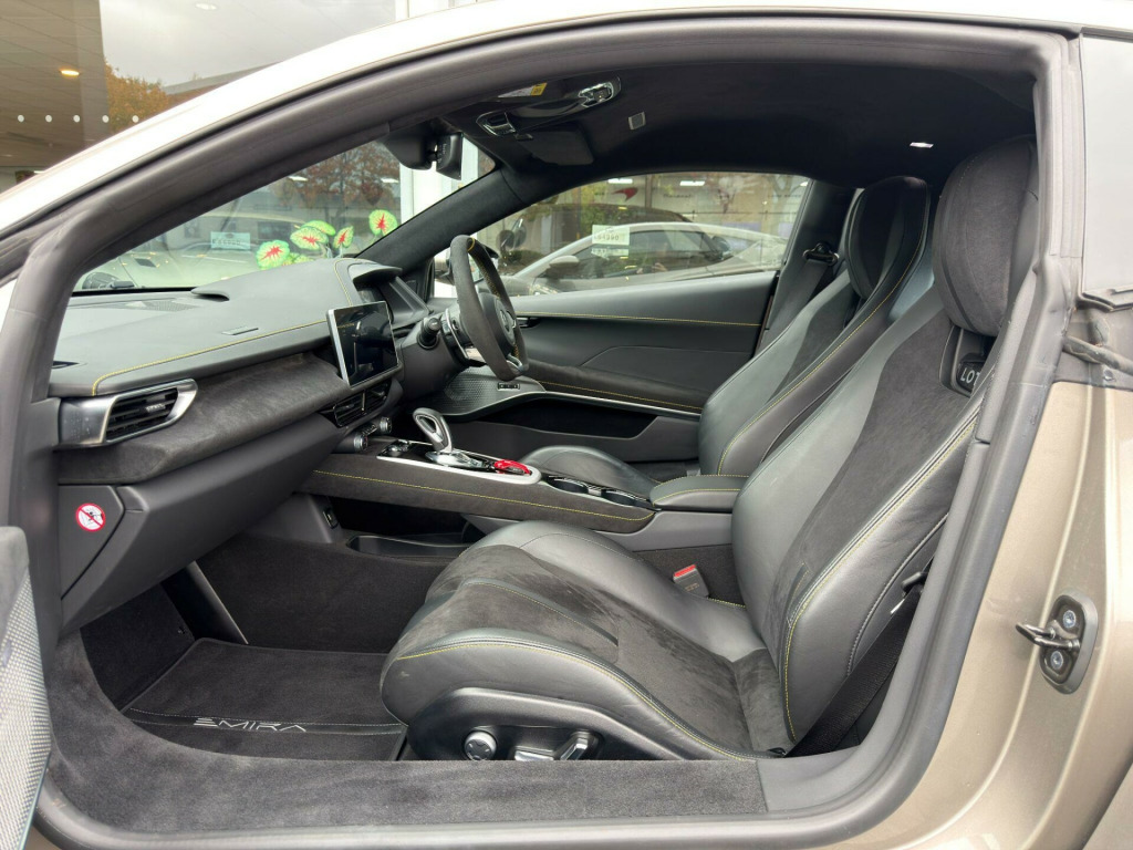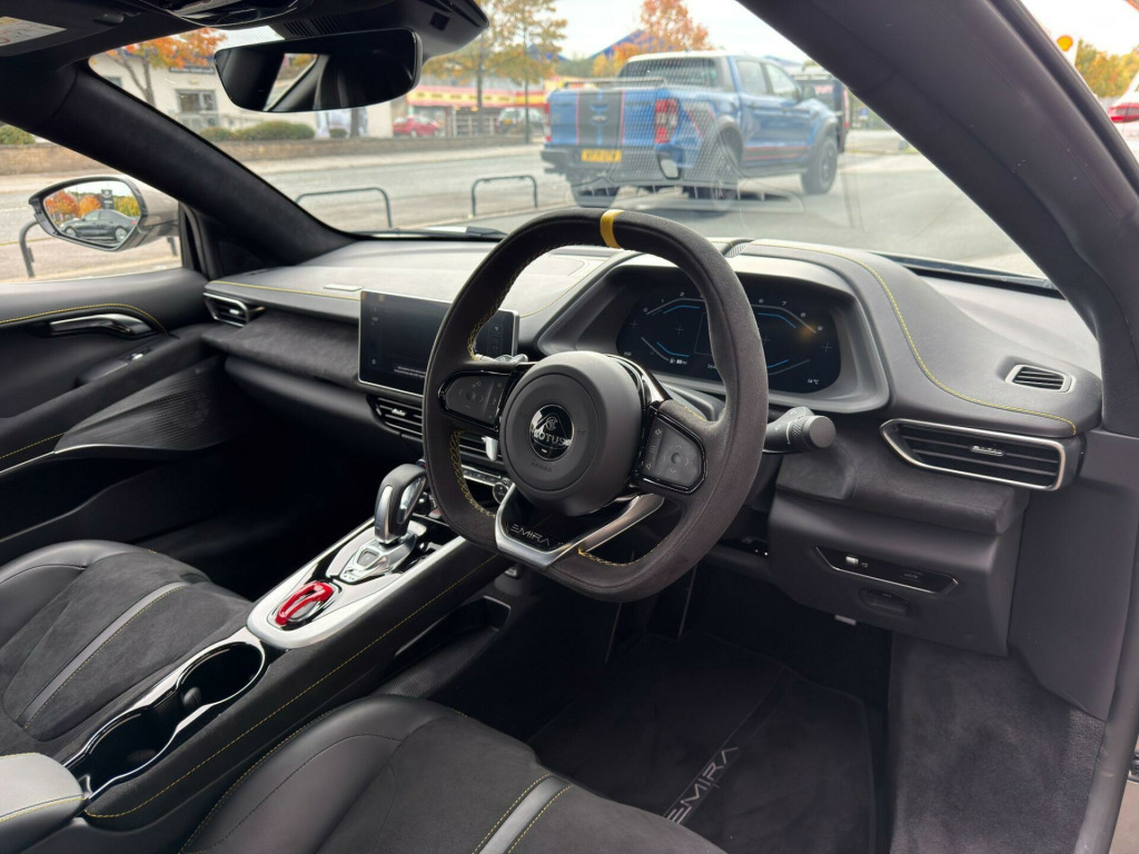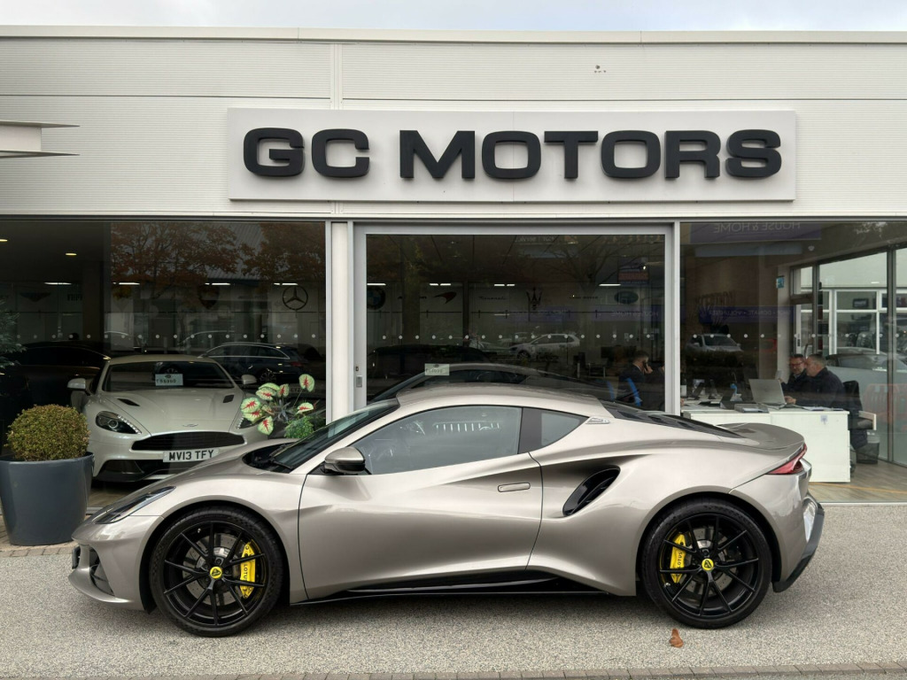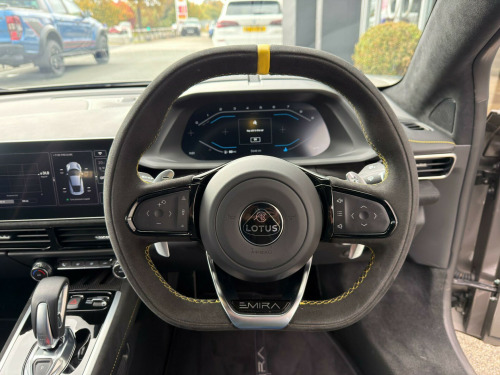 2.0 First EditionFactory Options: Sport Suspension, 20” Ultra Lightweight Gloss Black V-Spoke Forged Alloy Wheels, Black Alcantara Steering Wheel with Yellow TDC and Stitching, Black Alcantara Interior with Yellow Stitching, Yellow Brake Calipers.Standard Specification: 340W KEF Premium Branded 10 Channel Audio, Lotus Drivers Pack (Switchable Exhaust Sound Based on Drive Mode, Launch Control), Lotus Design Pack (Sports Pedals, Black Alcantara Headliner), Convenience Pack (Front Parking Sensors, Rear Reversing Camera, Rain-Sensing Wipers with Aero Blades, Auto-Dimming Mirrors, Rear Luggage Storage Net), Apple CarPlay, Android Auto, Keyless Start, 12-Way Adjustable Seats including Drivers Side Seat & Mirror Memory, Heated Seats, Rear Parking Sensors, Cruise Control, Single Zone Air Conditioning, Selectable Drive Modes, LED Headlights, Auto Lights, Daytime Running Lights, LED Rear Lights, 12.3” TFT Instrument Cluster, MMI 10.25” Touch Screen, Satellite Navigation, DAB Radio, Bluetooth, Emira Branded Sill Kick Plates, Satin Chrome Interior Trim Finishers, Aero Design Flush Door Handles, Powerfold & Heated Door Mirrors.Finished in Nimbus Grey Paint. Lotus Warranty Until 07/2027This car does not have a panoramic roof.Proudly No.1 in the UK for customer service in 2024, as awarded by AutoTrader. All our cars are HPI clear. Please contact us for your own personal video presentation of this particular car. We offer competitive finance rates with our in-house team from PCP, lease purchase and HP. Whilst we make every effort to ensure that the specification and technical information for the cars on our website is correct, some of it is supplied by third party providers and we cannot guarantee its accuracy. It is therefore important that you do not solely rely on this information.. 340W KEF Premium Branded 10 Channel Audio, Lotus Drivers Pack (Switchable Exhaust Sound Based on Drive Mode, Launch Control), Lotus Design Pack (Sports Pedals, Black Alcantara Headliner), Convenience Pack (Front Parking Sensors, Rear Reversing Camera, Rain-Sensing Wipers with Aero Blades, Auto-Dimming Mirrors, Rear Luggage Storage Net), Apple CarPlay, Android Auto, Keyless Start, 12-Way Adjustable Seats including Drivers Side Seat & Mirror Memory, Heated Seats, Rear Parking Sensors, Cruise Control, Single Zone Air Conditioning, Selectable Drive Modes, LED Headlights, Auto Lights, Daytime Running Lights, LED Rear Lights, 12.3” TFT Instrument Cluster, MMI 10.25” Touch Screen, Satellite Navigation, DAB Radio, Bluetooth, Emira Branded Sill Kick Plates, Satin Chrome Interior Trim Finishers, Aero Design Flush Door Handles, Powerfold & Heated Door Mirrors, Sport Suspension, 20” Ultra Lightweight Gloss Black V-Spoke Forged Alloy Wheels, Black Alcantara Steering Wheel with Yellow Top Dead Centre Marker and Contrast Stitching, Black Alcantara Interior with Yellow Contrast Stitching, Yellow Brake Calipers.