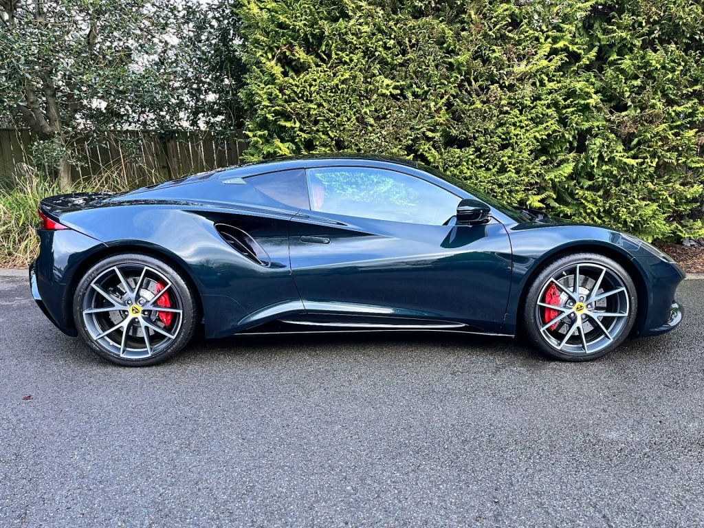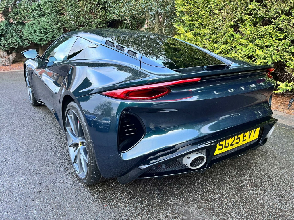 This 2025 one owner Lotus Emira First Edition presents an exceptional opportunity with an incredibly low mileage of just 1000 miles, making it virtually as new. Finished in dark verdant green metallic paintwork This striking vehicle is powered by a potent 2.0L petrol engine, adhering to the Euro 6 emission class, and boasts a single owner since new. Inside, you'll find luxurious heated seats for enhanced comfort, while the advanced LED headlamps ensure excellent visibility. Seamlessly connect your devices with Wireless Apple CarPlay and Android Auto, and immerse yourself in superior sound quality thanks to the KEF Premium 10 Channel Audio system, delivering 340W of pure audio fidelity.The performance of this Emira is truly remarkable, achieving 0-60mph in a swift 4.2 seconds, a testament to its dynamic engineering. This rapid acceleration, combined with its low CO2 emissions, highlights how this vehicle offers a more engaging and environmentally conscious driving experience compared to many others in its class. The inclusion of the KEF premium branded sound system further elevates the ownership experience, providing an audio environment that is both sophisticated and powerful.. 10.25in Touch Screen - MMI, 12-Way Adjustable Seat including 2 Memory Function Seat and Mirror, 12.3in TFT Instrument Cluster, 12v Socket, 20in Alloy Wheels - Ultra Lightweight V-Spoke Forged - Diamond Cut, ABS - Anti Lock Brakes, Aero Design Flush Door Handles, Ambient Mood Lighting - White, Artificial Exhaust Sound Generation - Cabin Sound, Auto Lights, Black Brake Calipers, Black Leather Steering Wheel - Black Stitching, Bluetooth, Branded Brake Calipers, Centre Armrest with Stowage Bin, Convenience Pack, Cruise Control, Cup Holders, DAB Radio, Daytime Running Lights, Driver and Passenger Airbags, EBA - Electronic Brake Assistance, Electric Front Windows, Electric Park Brake, Emira Branded Sill Kick Plates, Emira First Edition C-Pillar Badges, Heated Seats, Hydraulic Power Assisted Steering, Illuminated Vanity Mirror, KEF Premium Audio System, KEF Premium Branded 10 Channel Audio - 340W - Apple Carplay - Android Auto, Keyless Start, LED Headlamps, Lotus Design Pack, Lotus Drivers Pack, Lower Black Pack, Powerfold and Heated Door Mirrors, Rear Parking Sensors, Satellite Navigation, Satin Chrome Interior Trim Finishers, Selectable Drive Modes, Silver Lotus Rear Badge, Single Zone Climate Control, Steering Column with Manual Reach and Height Adjust, Storage Net in Rear Luggage Compartment and Passenger Footwell, Stowage - Door Bin and Glovebox Centre Console, TPMS - Tyre Pressure Monitoring System, Tailgate Demist Function, Titanium Exhaust Finisher, USB Port x 2, Voice Control, Welcome Home Lighting, Wireless Apple Carplay - Android Auto, Red Brake Calipers, Black Alcantara Steering Wheel - Red TDC and Stitching, Nappa Leather - Tan, Tour Suspension W- Goodyear Eagle F1 Supersport.