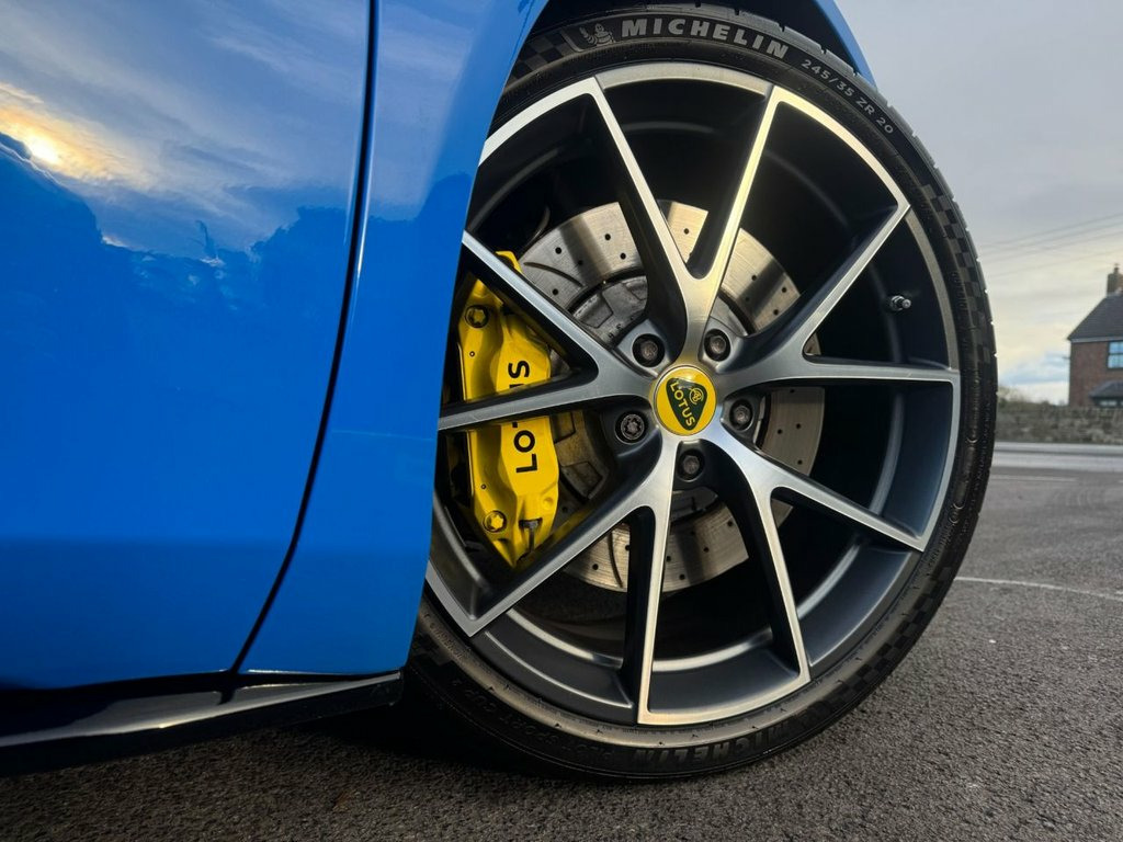 Alcantara - Black with Yellow Stitching, Sport Suspension W- Michelin Pilot Sport, Seneca Blue, Scorpion S5 Vehicle Tracker, Yellow Brake Calipers, 20in Alloy Wheels - Ultra Lightweight V-, Black Alcantara Steering Wheel, Black Pack, 10.25in Touch Screen - MMI, 12-Way Adjustable Seat including 2 Memor, 12.3in TFT Instrument Cluster, 12v Socket, ABS - Anti Lock Brakes, Aero Design Flush Door Handles, Air Conditioning - Single Zone, Ambient Mood Lighting - White, Armrest, Artificial Exhaust Sound Generation - Ca, Auto Lights, Black Brake Calipers, Black Leather Steering Wheel - Black Sti, Black Premium Lotus Branded Driver and P, Bluetooth, Branded Brake Calipers, Convenience Pack, Cruise Cont