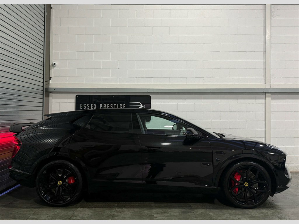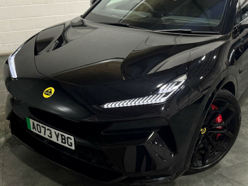 Full Service History, Sat Nav, Black Pack, Pan Roof, 360 Surround View Cameras, Upgraded Sound System, Soft Door Close,Yellow and Black Badging,Wireless Smartphone Charging,Wireless Apple Carplay - Android Auto,Visual Park Assist,Ultra-HD Cameras,Type 2 Mode 3 Charging Cable,Twin Cup Holders on Centre Console,Traffic Sign Information - TSI,Torque Vectoring,Steering Wheel - Dark Grey Leather with Gold Accents,Standard Pedals,Selectable Drive Modes,Seat Belts - Dark Grey,Satellite Navigation,Rear Cross Traffic Alert - RCTA,Rear Collision Warning,Privacy Glass,Powerfold and Heated Door Mirrors,Power Steering,Pirelli P-Zero Tyres,Park Assist - Front and Rear,Millimetre-wave Radar,Matrix LED Headlights,Air Quality System,Configurable Ambient Lighting,Collision Mitigation Support Rear - CMSR,Collision Mitigation Support Front - CMSF,Chrome Silver Rear Lotus Badge,Children Presence Detection,Charge Indicator,Bluetooth,Blind Spot Detection,Auto-Dimming Side Mirrors,Aluminium Gloss Black Roof with Black Roof Rails,Airbags - Driver,DAB Radio,Active Rear Spoiler,Active Front Grille,Active Air Suspension,Active Aero Pack,ABS - Anti-Lock Braking System,5G Compatibility,40/20/40 Folding Rear Seats,4-Zone Electronic Climate Control,22kW On-Board Charger,15.1in HD OLED Centre Screen,Heads Up Display,Lightweight Brake Discs with 6-Piston Calipers - Black,Lane Keep Aid with Lane Departure Warning-Prevention - LKA Plus,Lane Change Assist - LCA,LIDC - Lexus Intelligent Dynamic Chassis Control,KEF Reference Audio System,Interior Trim - Gloss Black,Intelligent Cockpit Infotainment System,Intelligent Adaptive Cruise Control - ACC,Illuminated Side Sills,I-Size Child Seat Anchor Points on the Outboard Rear Seats,Heated Steering Wheel,12-Way Electrically Adjustable Front Seats,Hands Free Tailgate,Front Cross Traffic Alert - FCTA,Five-Link Rear Suspension,Emergency Rescue Call - E-Call,Electric Front Windows,Driver Monitoring System,Door Storage - 1 Litre,Door Open Warning - DOW,Dolby Atmos with KEF Speaker System,Deployable LIDAR Technology,Daytime Running Lights and Scrolling Directional Indicators,22in Alloy Wheels - 5-Spoke - Gloss Black,Glass Roof,Stellar Black