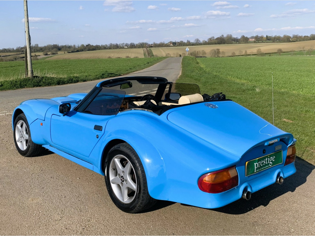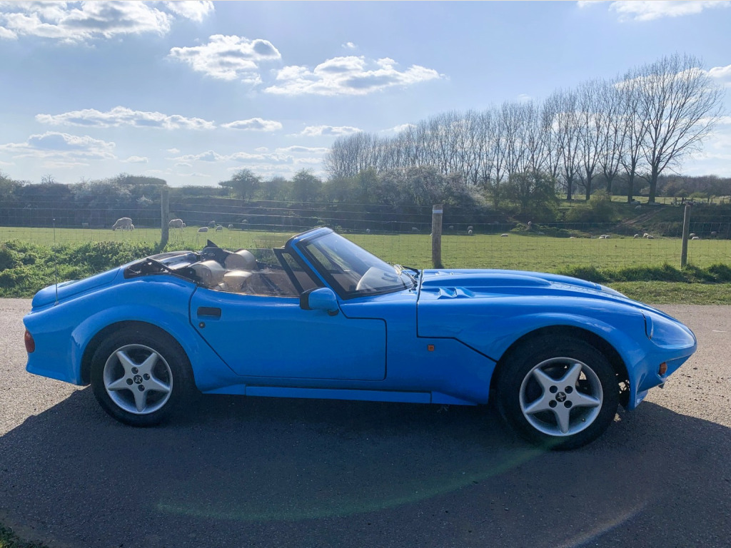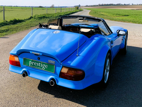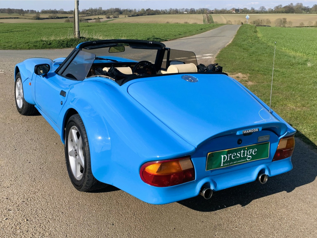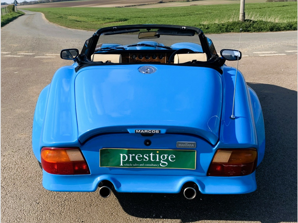 A special and rare English sportscar that is certainly a head-turner, , In 1992, the Marcos Mantara was introduced as a factory-made model – a further extension of the original GT styling but on steroids. Powered by Rover V8 3. 9 EFI engine. The Mantara ended up campaigning in GT racing, with the ultimate version being the LM600, , The Mantara incorporated a McPherson strut damper, coil spring and anti-roll bar based on a Ford system and makes for a more pleasurable driving experience, plus the Mantara was the first Marcos with power-assisted steering. Only 134 of these cars were made and they are rare sight and sound nowadays. , This 1994 model has had a small number of owners, the last reluctantly making way for another vehicle. The car has been well looked after see following service history which is all Marcos specialists. A new hood has been fitted relatively recently, and the radiator has been upgraded. The car has an Alpine stereo and as the original bill of sale shows was fitted with options of leather, power steering. 13 inch steering wheel, alarm immobiliser, headlamp covers, and icebox for future A/ C fitment. , Service history, 47 miles, 1177 miles, 6537 miles, 11, 480 miles, 18, 208 miles, 24, 054 miles, 29, 734 miles, 35, 936 miles, 41, 495 miles, 48, 371 miles, 54, 152 miles, 59, 038 miles, 68, 247 miles, 72, 444 miles, 80, 245 miles, 84, 158 miles, 89, 530 miles, 95, 366 miles, 98, 506 miles, , The car is not Concours as the price reflects but is a clean and tidy example, finish in a largely unmarked made to order Bugatti blue bodyshell, and a roof that is in good condition. A light tan interior which shows some patina, the wood is in good condition and the car drives well. Currently, MOTd, and supplied with previous MOTs which indicates that some welding has been done in the past. Good historic paperwork including orignal handbook, plus new bills etc, , Has been independently inspected by Marcos specialist resulting in a good bill of health. All sound underside if not a little scruffy, recent new springs, tuning, tyres etc being regulary looked after by a Classic Motorsport company. Recently featured in Classic car magazine