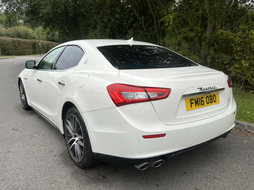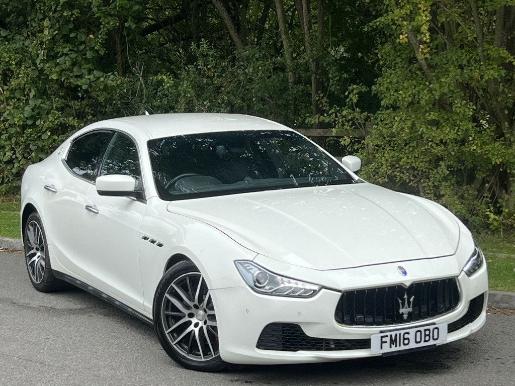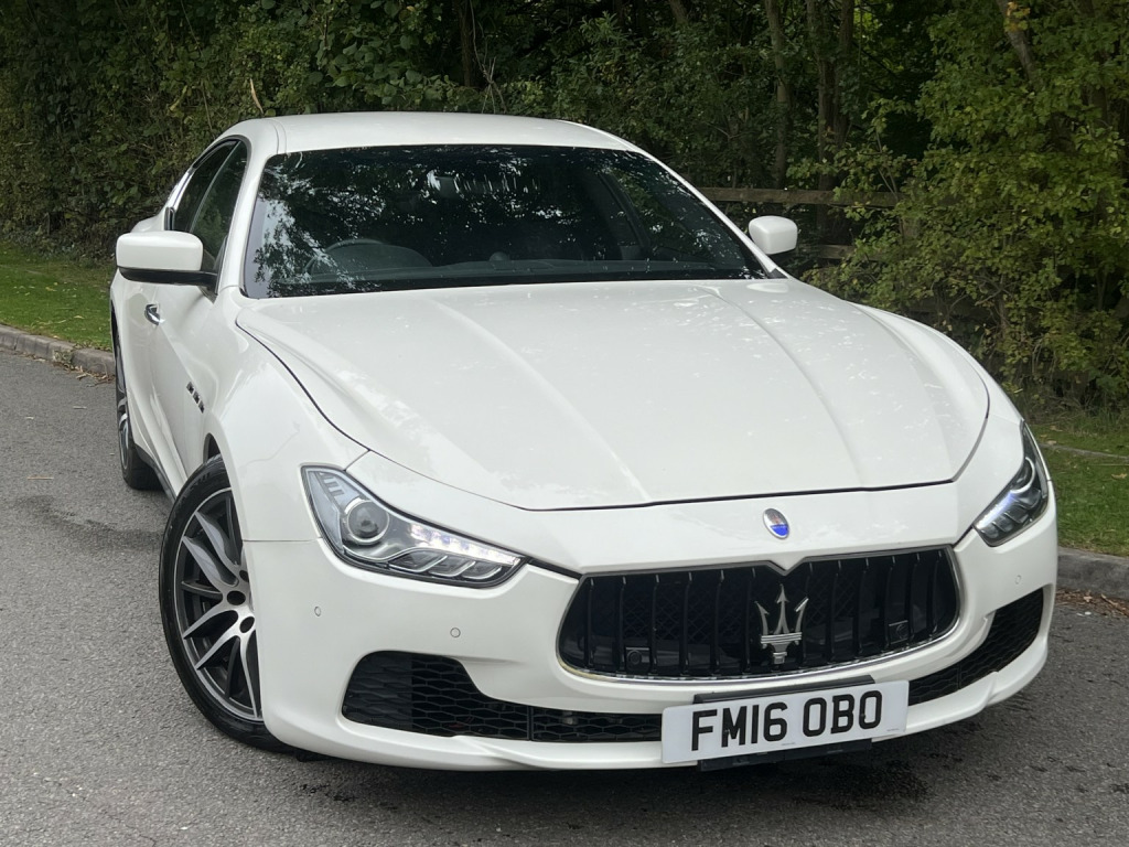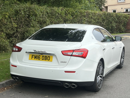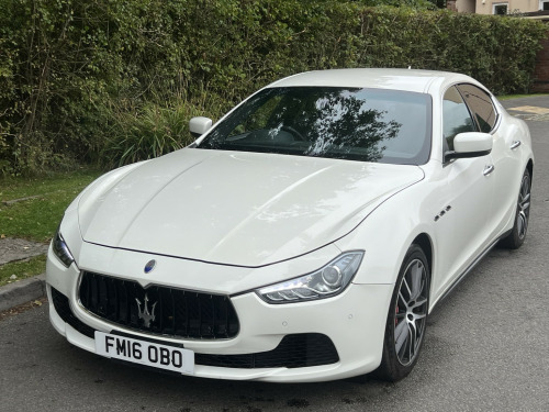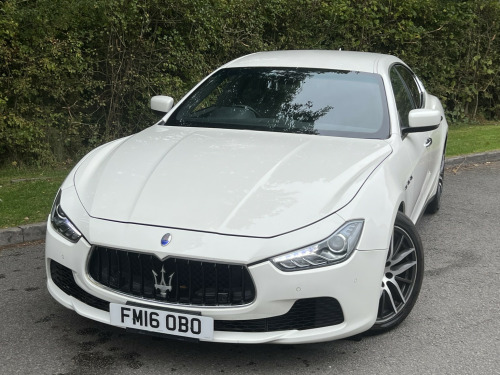 MASERATI GHIBLI 3.0d V6 275 BHP AUTO PADDLE SHIFT 2016 16 REG IN EXCELLENT CONDITION METALLIC PEARL WHITE ONLY 35k WITH A FULL MASERATI SERVICE HISTORY USUAL HIGH SPECIFICATION INCLUDING FULL HEATED AND ADJUSTABLE ELECTRIC BLACK LEATHER TRIM TOUCHSCREEN SATELLITE NAVIGATION SYSTEM WITH DAB RADIO BLUETOOTH TELEPHONE AND BT MUSIC STREAMING FRONT AND REAR PARKING SENSORS WITH REVERSE CAMERA 19 INCH ALLOY WHEELS WITH NEW TYRES ALL ROUND XENON HEADLIGHTS WITH RUNNING LED ADAPTIVE CRUISE CONTROL AIR CONDITIONING ELECTRIC BOOT RELEASE ETC THIS MASERATI GHIBLI LOOKS AND DRIVES SUPERB WITH ANY VIEWING WELCOME WOULD CONSIDER PART EXCHANGE FINANCE AVAILABLE