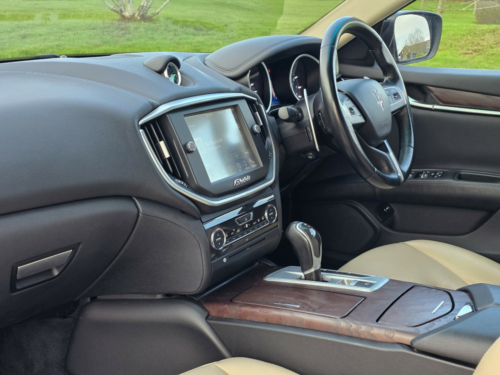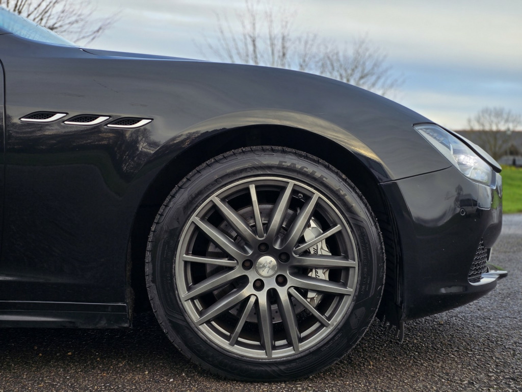 At Kass Classics We Are Offering This Beautiful Rare Maserati Ghibli 3.0 V6 S ZF Auto 4dr Finished In A Beautiful Colour Combination. This Maserati Has Had Four Brand New Goodyear F1 Asymmetric Tyres Fitted All Round With A Four Wheel Alignment Carried Out. It Comes With A Full Service History With Services Carried Out On 19778 Miles, 34156 Miles, 39968 Miles, 52526 Miles, 60024 Miles. The Last Service Was A Full Service Which Included Oil And Filter, Air Filter, Pollen Filter, Spark Plugs, Auxiliary Drive Belt, Alternator Belt. This Ghibli S Drives Absolutely Amazing With The Perfect Exhaust Note To Go With It, It Sounds Incredible And Just Leaves You Smiling From The Initial Start Up Till The End Of Your Journey. The S Varient Came With a Higher Power Output Of 410HP Compared To The Standard Version Which Makes This One Rare. The Specification On This Ghibli S Includes Automatic Xenon Headlamps, Daytime Running Lights, Reverse Camera, Satellite Navigation, Bluetooth Tel/Audio, USB, Aux, CD, Paddle Shifters, On Board Computer, Tyre Pressure Monitor System, Cupholders, Dual Zone Climate Control, Cruise Control, Sport Mode, 19 Alloy Wheels, Electric Tailgate, Electric Seats, Lumbar Support, Electric Steering Column, Electric Park Brake etc. Both Remote Keys Are Present With The Owners Manuals, Service Booklet etc. Visit www.kassclassicsautos.co.uk, Nationwide Delivery Available Please Ask, Part Exchange Welcome. Full service history, Excellent bodywork, Full leather interior - Excellent Condition, Tyre condition New, 5 seats, Metallic Black, Upgrades - 19in Alloy Wheels - Poseidone Design, Double Laminated Side Windows - High Thermal and Noise Insulation, Privacy Glass - Rear and Rear Side Windows, Alcantara Headlining, Interior Trim - High Gloss Ebano Wood Trim for Selected Interior Details, Maserati Active Shifting Aluminium Gear Shift Paddles Mounted on the Steering Column, Poltrona Frau Extended Leather Interior - Nero, Steering Column with Power Height and Reach Adjustments, Steering Wheel and Gear Knob in Fine Poltrona Frau Black Leather with High Gloss Carbon Fibre Insert, Standard Features - 12V Socket - Front, 12V Socket - Rear, 18in Alloy Wheels - Vulcano Design, 5 Arm Multilink Rear Suspension, 7in Multifunction Digital Display Cluster with On-Board Computer - Driver Info, ABS - Anti-Lock Braking System, ASR - Acceleration Slip Regulation, Active Cruise Control, Adaptive Front Lighting System, Airbags - Driver Dual-Stage Smart, Airbags - Driver Knee, Airbags - Front Seat Side, Airbags - Head, Airbags - Passenger Dual-Stage Smart, Alarm System - Perimetric and Volumetric Sensing-Anti-lift Device, Aluminium Key Fob, Automatic Headlight Activation, Automatically Dimming Rear View Mirror, BAS - Brake Assist System, Bi-Xenon Headlamps with Adaptive Front Lighting and Hi-Pressure Headlamp Washers, Bluetooth Connectivity, Brake Calipers in Matt Black, DVD Audio and Video Player, Dashboard Mounted Maserati Design Clock, Dual Zone Automatic Climate Control with 13 Air Outlets - 4 Rear, EBD - Electronic Brakeforce Distribution, EPB - Electronic Parking Brake, Electric Front and Rear Windows, Electrically Adjustable Front Seats - 8-Way with Two Memories for Drivers Side, Electrically Adjustable and Foldable Exterior Mirrors, Electronic Immobiliser, Exterior Trim - Chromeline, Fabric Headlining, Front Armrest with Twin Mechanical Opening-Illuminated-Air Conditioned Storage Compartment, Front Parking Sensors, Front Seats with Lumbar Support - 4 Ways Adjustments, Front and Rear Head Restraints with Embossed Trident Logo, Full LED Taillights and Third Stop Light Integrated Into the Rear Window, Headlight Washers, Hill Holder, I.C.E. Control - Increased Control and Efficency, Interior Trim - Open Pore Radica Wood Trim for Selected Interior Details, Keyless Entry and Keyless Go Function, LED Day Running Lights, Laminated Front Glass with High Thermal and Noise Insulation, Lightweight Boot Lid Construction with Keyless Opening and Remote Key Unlocking, MSP - Maserati Stability Program, MSR - Motor Spin Regulator, MTC - Maserati Touch Control Unit Including 8.4in Touch Screen Display, Mechanical Limited-Slip Differential, Multi-Function Steering Wheel, NavTrak Vehicle Tracking System with Automatic Driver Recognition and Remote Inhibition, Rain Sensing Windscreen Wipers, Rear Armrest, Rear Parking Sensors, SD Card Reader, Satellite Navigation, Speakers x8, Speed Sensitive Power Assisted Steering, Split Folding Rear Seat at 60-40, Sport Button for Sport Mode Set-up, Standard Audio System, Steering Column with Manual Height and Reach Adjustments, TPMS - Tyre Pressure Monitoring System with Pressure Displayed within the Central Digital Cluster, Three-Spoke Steering Wheel and Gear Knob in Poltrona Frau Coloured Leather, Twin Dual Pipe Exhaust System in Chrome-Plated Stainless Steel, Two Cup Holders in Rear Armrest, Tyre Sealing Compound and Electric Air Compressor, USB Charger in Rear Armrest, USB Port and Aux-In Plug, Velour Floor Mats, Appointments Only. £15,990