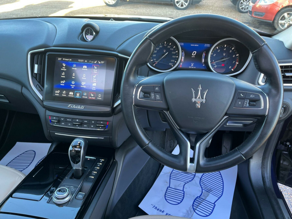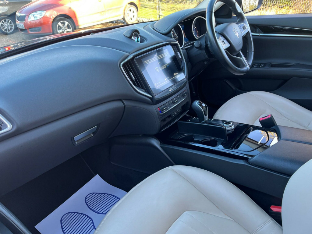FREE UK DELIVERY - FINANCE AVAILABLE, CONTACT US NOW FOR A NO OBLIGATION QUOTE - CALL NOW TO ARRANGE A TEST DRIVE - PART EXCHANGE WELCOME - ONE YEAR WARRANTY MINIMUM, EXTENDED AVAILABLE, WARRANTY CAN BE REDEEMED AT VAT REGISETERED GARAGE - NO ADMIN FEES - ALL VEHICLES HPI CHECKED - FULL USED CAR INSPECTION MECHANICAL APPRAISAL CARRIED OUT ON ALL VEHICLES BEFORE LEAVING OURSELVES - YOU CAN REST ASSURED YOU'RE MAKING THE RIGHT DECISION WHEN PURCHASING YOUR NEW VEHICLE FROM US - OVER 100 VEHICLES IN STOCK - RIVERSIDE AUTOS LTD FAMILY RUN BUSINESS ESTABLISHED SINCE 2005 -This 2017 Maserati Ghibli V6 S presents a compelling blend of performance and luxury. Powered by a potent 3.0L petrol engine, this S trim model delivers exhilarating acceleration, reaching 0-62mph in a swift 5.0 seconds. The Ghibli is equipped with Bi-Xenon headlamps featuring adaptive front lighting and high pressure washers for optimal visibility, complemented by automatic headlight activation. Parking is made easier with rear parking sensors, and the dual zone automatic climate control, complete with 13 air outlets including four for the rear, ensures a comfortable cabin environment for all occupants.Beyond its impressive performance figures, the Maserati Ghibli V6 S offers practical advantages. The keyless entry and keyless go function provide convenient access and starting, while the generous boot space ensures ample room for luggage or shopping. These features, combined with the advanced lighting and climate control systems, demonstrate how this Maserati Ghibli V6 S offers a superior driving experience compared to other vehicles in its class.. 12V Socket - Front, 12V Socket - Rear, 18in Alloy Wheels - Vulcano Design, 5 Arm Multilink Rear Suspension, 7in Multifunction Digital Display Cluster with On-Board Computer - Driver Info, ABS - Anti-Lock Braking System, ASR - Acceleration Slip Regulation, Active Cruise Control, Adaptive Front Lighting System, Airbags - Driver Dual-Stage Smart, Airbags - Driver Knee, Airbags - Front Seat Side, Airbags - Head, Airbags - Passenger Dual-Stage Smart, Alarm System - Perimetric and Volumetric Sensing-Anti-lift Device, Aluminium Key Fob, Automatic Headlight Activation, Automatically Dimming Rear View Mirror, BAS - Brake Assist System, Bi-Xenon Headlamps with Adaptive Front Lighting and Hi-Pressure Headlamp Washers, Bluetooth Connectivity, Brake Calipers in Matt Black, DVD Audio and Video Player, Dashboard Mounted Maserati Design Clock, Dual Zone Automatic Climate Control with 13 Air Outlets - 4 Rear, EBD - Electronic Brakeforce Distribution, EPB - Electronic Parking Brake, Electric Front and Rear Windows, Electrically Adjustable Front Seats - 8-Way with Two Memories for Drivers Side, Electrically Adjustable and Foldable Exterior Mirrors, Electronic Immobiliser, Exterior Trim - Chromeline, Fabric Headlining, Front Armrest with Twin Mechanical Opening-Illuminated-Air Conditioned Storage Compartment, Front Parking Sensors, Front Seats with Lumbar Support - 4 Ways Adjustments, Front and Rear Head Restraints with Embossed Trident Logo, Full LED Taillights and Third Stop Light Integrated Into the Rear Window, Headlight Washers, Hill Holder, I.C.E. Control - Increased Control and Efficency, Interior Trim - Open Pore Radica Wood Trim for Selected Interior Details, Keyless Entry and Keyless Go Function, LED Day Running Lights, Laminated Front Glass with High Thermal and Noise Insulation, Lightweight Boot Lid Construction with Keyless Opening and Remote Key Unlocking, MSP - Maserati Stability Program, MSR - Motor Spin Regulator, MTC - Maserati Touch Control Unit Including 8.4in Touch Screen Display, Mechanical Limited-Slip Differential, Multi-Function Steering Wheel, NavTrak Vehicle Tracking System with Automatic Driver Recognition and Remote Inhibition, Rain Sensing Windscreen Wipers, Rear Armrest, Rear Parking Sensors, SD Card Reader, Satellite Navigation, Speakers x8, Speed Sensitive Power Assisted Steering, Split Folding Rear Seat at 60-40, Sport Button for Sport Mode Set-up, Standard Audio System, Steering Column with Manual Height and Reach Adjustments, TPMS - Tyre Pressure Monitoring System with Pressure Displayed within the Central Digital Cluster, Three-Spoke Steering Wheel and Gear Knob in Poltrona Frau Coloured Leather, Twin Dual Pipe Exhaust System in Chrome-Plated Stainless Steel, Two Cup Holders in Rear Armrest, Tyre Sealing Compound and Electric Air Compressor, USB Charger in Rear Armrest, USB Port and Aux-In Plug, Velour Floor Mats, Premium Audio System 600W with 10 Speakers, 20in Alloy Wheels - Urano Design Machine Polished, Brake Calipers Painted in Red, Electric Sunroof with Tilt and Slide Functions, Privacy Glass - Rear and Rear Side Windows, Alcantara Headlining, Convenience Pack, Heated Front Seats, Leather - Cuoio, Steering Column with Power Height and Reach Adjustments, Maserati Crest on 1/4 Panel, Keyless Entry, Power Fold Mirrors, Maserati Touch Control + Infotainment, Piano Black Interior Trim, Valved Exhaust, Rear Seat ISOFIX, Push Button Start.