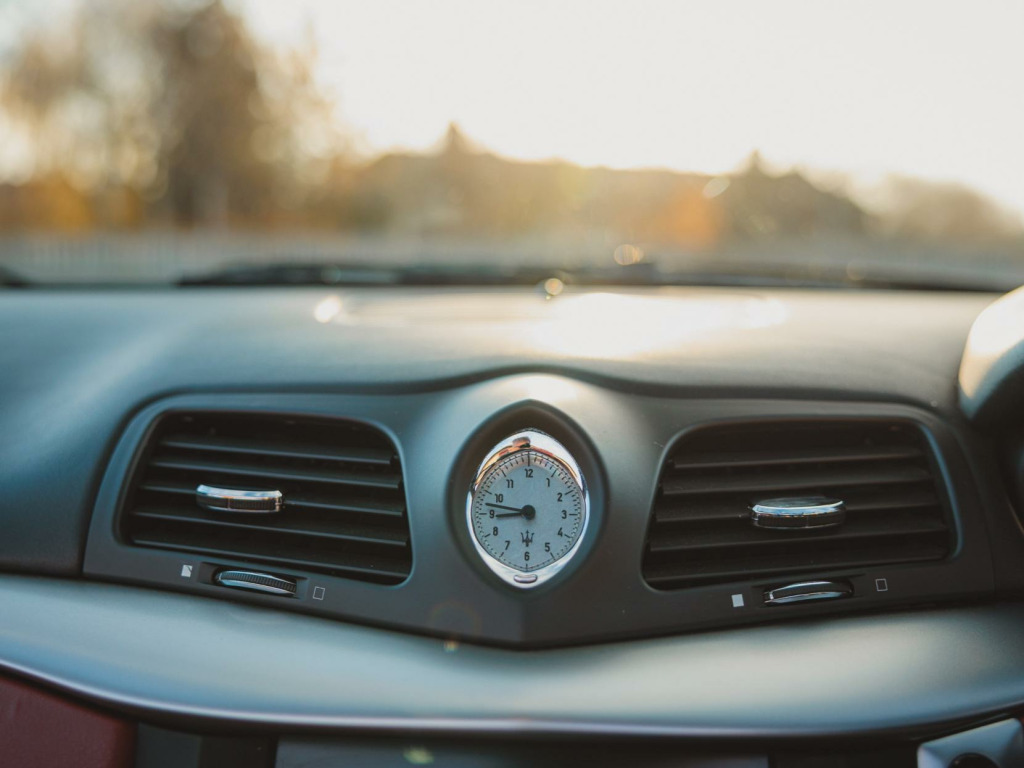 The interior is trimmed in Poltrona Frau Bordeaux leather, extending across the seats, dashboard, door cards and centre console. Seat bolsters remain firm with minimal wear, the rear seats present particularly well, and the cabin retains crisp switchgear markings. The Maserati analogue clock, Bose audio system and trident detailing are all present, creating a characterful and distinctive cabin. The boot is clean and correctly trimmed, complete with toolkit. Noted imperfections are limited to a parking sensor warning light, non-functioning driver’s seat adjustment and some light sticky-button wear to the steering wheel and adjacent switch panel.