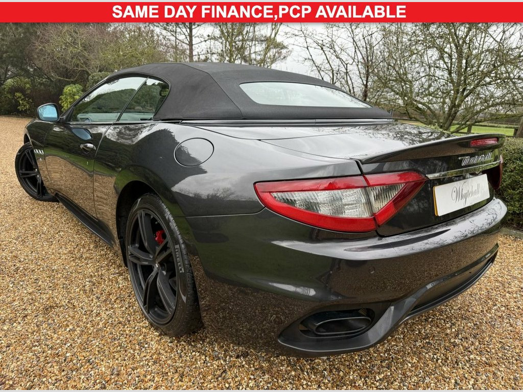 Whytehall are delighted to offer this exceptional 2019 Maserati GranCabrio V8 Sport Nerissimo,MC shift, its a truly rare find with an incredibly low mileage of just 7000 miles and only two previous owners. This striking example boasts a powerful 4.7 litre Euro 6 petrol engine, delivering exhilarating performance with a 0-60mph time of under 5.0 seconds. The Sport Nerissimo trim enhances its already impressive presence, featuring dark headlights with white side markers and Bi-Xenon headlights complete with integrated LED daytime running lights and a convenient headlight washing system.Carbon interior package, Aerodynamic carbon fibre exterior package. Inside, you will be immersed in the premium sound experience of the Harman Kardon system, featuring 10 speakers and a powerful 900W output. Comfort is assured with dual zone automatic climate control, including two rear air outlets, ensuring a pleasant environment for all occupants. Parking is made simpler with reverse camera, rear parking sensors and parking assistance. These carefully selected features and the outstanding provenance of this Maserati GranCabrio demonstrate its superior quality and appeal compared to other vehicles in its class.Full HR Owen service history, 2 sets of keys, Hpi checked. Same day low rate finance available. Part exchange welcome. Delivery. 20in Alloy Wheels - MC Design Glossy Bla, ABS - Anti-Lock Braking System, Active Shifting Gear Paddles - Trofeo De, Adaptive Light Control System, Additional Lip Spoiler in Deck Lid in Bo, Aerodynamic Package in Carbon Fibre, Airbags - Dual-Stage Front - Lateral - H, Alarm System - Perimetric and Volumetric, Aluminium Sports Pedals, Automatic Headlight Activation, Automatically Dimming Rear View Mirror, Battery Charger and Maintainer, Bi-Xenon Headlights with Integrated LED , Brake Calipers Painted in Red, Central Locking - Remote, Cruise Control, Dashboard Mounted Maserati Design Clock, Dual Powered-Heated Exterior Mirrors, Dual Zone Automatic Climate Control with, Eco Chrome Interior Trim