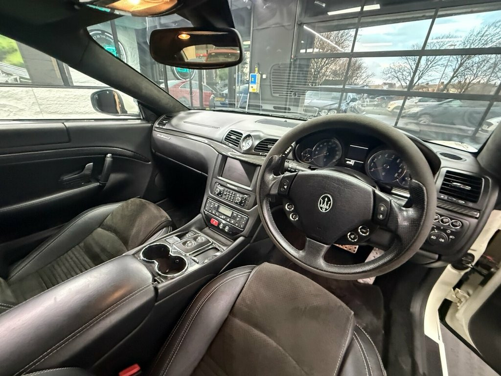 Here we have a lovely Maserati Granturismo 4.7 V8 S finished in Bianco Eldorado. The car has just had a recent MOT and Service. The features of the car include Carbon interior pack, Bose Premium Audio, Half leather interior, Cd player, Gloss black alloys, Suede Steering wheel, Cruise control, Parking sensors, Trip computer. The service history as as follows, Maserati 2013 @ 12522 miles, Maserati 2014 @ 22028 miles, Maserati 2015 @ 28995 miles, Maserati 2017 @ 33176 miles, Maserati 2018 @ 35001 miles, Maserati 2022 @ 41298 miles, Motorzone 2025 @ 45953 miles where the car also had a new F1 Actuator. With over 25 years of main dealership experience we specialise in, used car sourcing, used vehicle finance and high standards of vehicle preparation as well as high standards of customer service. We are confident you have come to the right place for your next car. All of our cars are HPI Clear and go though a thorough pre sale check and are serviced if required. Part exchange welcome Every car also comes with a minimum of 6 Months MOT. Here at Motorzone north west we offer a very personal retail experience taking in to account every aspect of your buying journey giving you the guidance and facts to make the right decisions for your new car. We look forward to meeting you, why not give us a call to book your appointment today. BOSE Sound System, Interior Carbon Pack- Evolution 2, Bianco Eldorado, 20in Neptune alloy Wheel, 20in Trident design Alloy Wheels, 20in birdcage Alloy Wheels, 6 Speakers, Alu Grey interior trim, Black brake calipers, Chrome Interior Trim- Dark Grey, Fabric headlining Trim, Puncture Repair kit with 12V Air compres, Skyhook suspension, Smoked quartz interior trim, Steering Wheel gearshift paddles