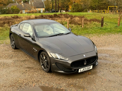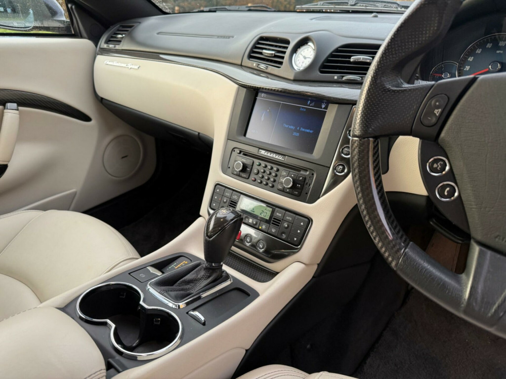 Beautiful well spec'd example which has been dry stored by the last owner who has had the car since 2020. Every service invoice included. Matching P Zeros.This 2013 Maserati Granturismo V8 Sport presents an exceptional opportunity with its remarkably low mileage of just 28,000 miles, a clear vehicle history check, and a comprehensive Sport trim. Powered by a potent 4.7 litre petrol engine, this Italian masterpiece offers a driving experience that is both exhilarating and refined. The car is equipped with essential features for modern convenience, including front and rear parking sensors to aid manoeuvrability, dual zone automatic climate control with rear air outlets for passenger comfort, and Bluetooth connectivity for seamless audio and calls. Automatic headlight activation ensures optimal visibility in varying conditions.The performance of this Maserati Granturismo V8 Sport is truly a standout, with an impressive 0-62mph acceleration time of just 4.8 seconds. This brisk acceleration demonstrates the vehicle's superior engineering and power compared to many others in its class. Combined with its sophisticated styling and the prestige of the Maserati brand, this Granturismo V8 Sport offers a compelling package for discerning drivers seeking both performance and luxury.WE OPERATE BY APPOINTMENT ONLY. PLEASE CALL THE SHOWROOM TO BOOK A TIME SLOT. SUPPLIED WITH 6 MONTHS RAC PLATINUM PLUS WARRANTY, 12 MONTH BREAKDOWN COVER AND RAC APPROVED 82 POINT COMPLIANT INSPECTION in alloy wheels - astro design, 30gb hard disk drive, 7in dashboard screen, abs - anti-lock braking system, adaptive light control system, aerodynamic side skirts and front splitter, airbags - driver dual-stage smart, airbags - front seat side, airbags - passenger dual-stage smart, airbags - window - front, alarm system - perimetric and volumetric sensing-anti-lift device, aluminium sport pedals and trofeo-design paddles, automatic headlight activation, bi-xenon headlights, black painted brake calipers, black vertical slat front grille featuring trident logo with red highlights, black-look side vents, bluetooth connectivity, cd player - with rds tuner, cruise control, dashboard mounted maserati design clock, double wishbone suspension with skyhook continuously adaptable damping, dual zone automatic climate control with two rear air outlets, ebd - electronic brakeforce distribution, epb - electronic parking brake, electric front windows, electrically adjustable front seats with lateral support, electrically adjustable and heated door mirrors, electrically assisted boot opening, electrically assisted door opening, electrochromatic interior rear view mirror, electronic immobiliser, exterior trim - shadowline, fabric rooflining, folding front armrest with illuminated storage compartment, folding rear armrest, front parking sensors, front seats with lumbar support, front and rear double cup-holders, front and rear head restraints with embossed trident logo, front and rear pre-tensioner seat belts, headlight washers, isofix rear child seat attachment, integral boot spoiler, interior trim - dark grey chrome, led rear light system, msp - maserati stability program, maserati hi-fi loudspeaker system, maserati multimedia system, multi-function steering wheel, navtrak vehicle tracking system with automatic driver recognition and remote inhibition, puncture repair kit with 12v air compressor, rain sensing windscreen wipers, rear parking sensors, satellite navigation, smokers package, speed sensitive power assisted steering, sport button for sport mode set-up, steering column adjustment for rake and reach, tc - traction control, tmc premium traffic information system, three-spoke multifunction leather sports steering wheel, usb port and aux-in plug, voice control, bose surround sound system, front seats comfort pack, coloured brake calipers - silver/blue/yellow/red/titanium, ipod connection, interior carbon package, steering wheel in carbon finish and black leather, 20in alloy wheels - anthracite grey astro design, matt black-look headlights, trident logo stitched on headrests, stitching colour upon request - excluding steering wheel, navtrak