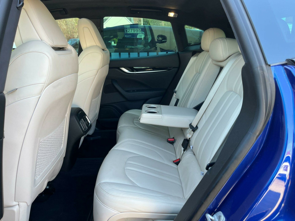 ** NATIONWIDE DELIVERY ** FULL MASERATI SERVICE HISTORY ** GT SPORTS PACK ** SAT NAV ** REVERSE CAMERA ** HEATED / MEMORY SEATS ** POWER STEERING COLOUMN ** 21'' ALLOYS ** KEYLESS ** AIR RIDE / SPORTS SUSPENSION ** SOFT CLOSE DOORS ** Presented in the beautiful colour combination of Assoluto Blue metallic with contrasting Ivory / Beige full leather interior trim. Leather extended to dash and door cards. A stunning example benefitting from a full Maserati main dealer service history (3 services). Specification includes satellite navigation with full colour touch screen, rear view / reverse camera, DAB radio, Apple Car Play, Bluetooth audio streaming, i-POD / AUX / USB interface, Bluetooth telephone, front & rear parking sensors, panoramic glass cunroof (electric slide & tilt opening) with retractable sun shade, electrically adjustable front seats with drivers memory function, heated seats, front centre arm rest with storage facility, dual zone climate control / air conditioning, electrically adjustable multi function steering wheel with paddle shift gear change, auto LED headlamps with intelligent high beam assist, rain sensitive wipers, electrically adjustable and folding exterior door mirrors, auto dimming rear view mirror, power tailgate (open & close), sports suspension with ride height control, electronic push button park brake, ABS brakes, multi airbags, vehicle stability / traction control, rear seat isofix, tailored Maserati over mats, keyless entry with push button start, remote central locking with alarm / immobiliser, soft closure doors, privacy glass, Blue brake calipers, finished with upgrade 21'' gloss Black alloy wheels (unmarked). Supplied with original Maserati owners wallet, owners / operators manuals and 2 keys. Both Nav Trak fobs also present. Simply stunning. NO DISAPPOINTMENTS!!! Buy with confidence from a long established dealer with fantastic reputation, feedback & reviews. ectric panoramic sunroof, full-led adaptive matrix headlights with anti-glare high beam assist, 21in alloy wheels - anteo dark design, sport pack, comfort seats - 12-way power front seats with two memories for drivers side, maserati active shifting aluminium gear shift paddles, brake calipers painted in blue, brake calipers in anodised blue, 20in alloy wheels - efesto platinum design, 7in multifunction digital display cluster with on-board computer - driver info, active cruise control, air adaptive suspension, air conditioned front passenger glove box with usb socket, air quality sensor, air shutter control - improves aerodynamic properties and fuel consumption, airbags - passenger deactivation, alarm system, all wheel drive intelligent q4 system with torque vectoring, bi-xenon front headlamps with integrated led daytime running lights and automatic activation, brake calipers in oxidised grey, dashboard mounted maserati design clock, demist sensor, driver and passenger sunvisor with mirror and courtesy light, dual stage front airbags - side and window airbags, dual zone automatic climate control, epb - electronic parking brake, electric front and rear windows with anti pinch sensor, electric power steering - eps with speed sensitive features, electrochromatic - electrically adjustable - heated - foldable door mirrors, electrochromatic interior rear view mirror, fabric headlining, fix and go tyre sealing compound and electric air compressor, front armrest with twin mechanical opening, front grille with vertical grille bars and bezel in chrome finish, front seat belts with pre-tensioners and load limiters - rear seat belts with load limiters, front and rear courtesy lamps - footwell - door panel handle led lights, front and rear head restraints with embossed trident logo, front and rear led fog lights, front and rear parking sensors with graphical display on central digital cluster, gt exterior detailing, gt exterior trim, heated front seats, heated rear windscreen, high double wishbone front suspension with 5-arm multilink rear suspension, hill descent control, hill holder, i.c.e. control - increased control and efficency, instrument cluster in black with white retro-illuminated dials, integrated vehicle control - ivc, keyless entry and keyless go function, led taillights and third stop light, laminated front glass with high thermal and noise insulation, lower body mouldings - body colour, msp - maserati stability program, maserati connect, maserati intelligent assistant - mia, mechanical limited-slip differential, multifunction steering wheel, off road mode setting via off road button, one 12v and two usb sockets - rear passengers, piano black trim for selected interior details, power tailgate, rain sensor, rear armrest with 2x cupholders, rear parking camera with imaging displayed on central mtc plus system, rear seats with ski hatch - load through system, rear spoiler in body colour, sport mode setting via sport button, skyhook - electronically variable active damping suspension system, soft close door system, split folding rear seat at 60-40, sport steering wheel in premium fine grain leather - nero, sports seats - 12-way power front seats with two memories for drivers side, standard audio system, steering column with power height and reach adjustments, summer tyres, tpms - tyre pressure monitoring system with pressure displayed within the central digital cluster, twin dual pipe exhaust system in chrome-plated stainless steel, velour floor mats, vodafone vehicle tracking system with automatic driver recognition and remote inhibition