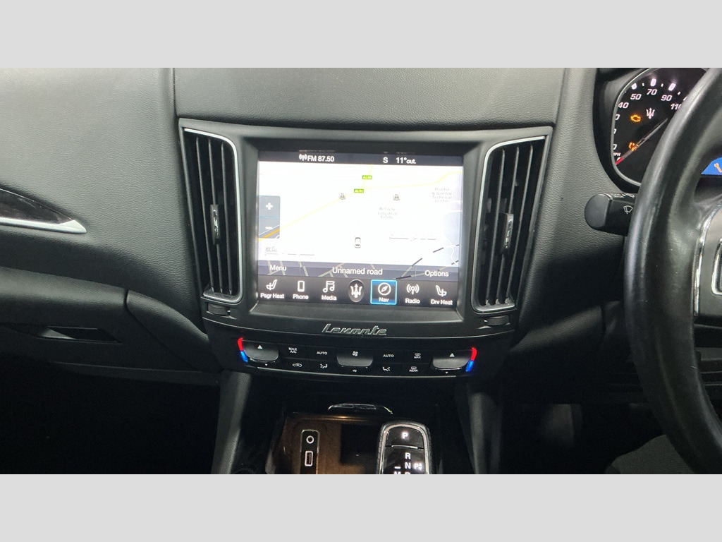 2 KEYS, ULEZ FREE, FRESH SERVICE, FRESH MOT, NAVIGATION, BLUETOOTH, PANORAMIC ROOF, LEATHER SEATS, 2 FORMER KEEPER, PARKING SENSORS, GRADE 2. in alloy wheels - borea design, brake calipers in oxidised grey, electric front and rear windows with anti pinch sensor, electrochromatic - electrically adjustable - heated - foldable door mirrors, exterior trim - chromeline, fix and go tyre sealing compound and electric air compressor, front grille with frame and vertical grille bars in chrome, front and rear head restraints with embossed trident logo, heated rear windscreen, laminated front glass with high thermal and noise insulation, ornamental side grilles in chrome, summer tyres, twin dual pipe exhaust system in chrome-plated stainless steel, 7in multifunction digital display cluster with on-board computer - driver info, active cruise control, air adaptive suspension, air shutter control - improves aerodynamic properties and fuel consumption, dashboard mounted maserati design clock, front and rear parking sensors with graphical display on central digital cluster, high double wishbone front suspension with 5-arm multilink rear suspension, i.c.e. control - increased control and efficency, mechanical limited-slip differential, off road mode setting via off road button, sport mode setting via sport button, skyhook - electronically variable active damping suspension system, speed sensitive power assisted steering, tpms - tyre pressure monitoring system with pressure displayed within the central digital cluster, air conditioned front passenger glove box with usb socket, air quality sensor, demist sensor, driver and passenger sunvisor with mirror and courtesy light, dual zone automatic climate control, electrochromatic interior rear view mirror, fabric headlining, front armrest with twin mechanical opening, front and rear courtesy lamps - footwell - door panel handle led lights, instrument cluster dials in maserati blue with white backlighting, multi-function steering wheel and gear knob in leather - nero, piano black trim for selected interior details, power tailgate, rain sensor, rear armrest with 2x cupholders, rear seats with ski hatch - load through system, split folding rear seat at 60-40, standard seats - electrically adjustable front seats - 8 ways plus 4 ways for lumbar adjustments with two memories for drivers side, steering column with manual height and reach adjustments, velour floor mats, airbags - passenger deactivation, alarm system, dual stage front airbags - side and window airbags, epb - electronic parking brake, front seat belts with pre-tensioners and load limiters - rear seat belts with load limiters, hill descent control, hill holder, keyless entry and keyless go function, msp - maserati stability program, navtrak vehicle tracking system with automatic driver recognition and remote inhibition, audio system - 280w - 8x speakers, mtc plus - maserati touch control plus, one 12v and two usb sockets - rear passengers, bi-xenon front headlamps with integrated led daytime running lights and automatic activation, front and rear led fog lights, led taillights and third stop light