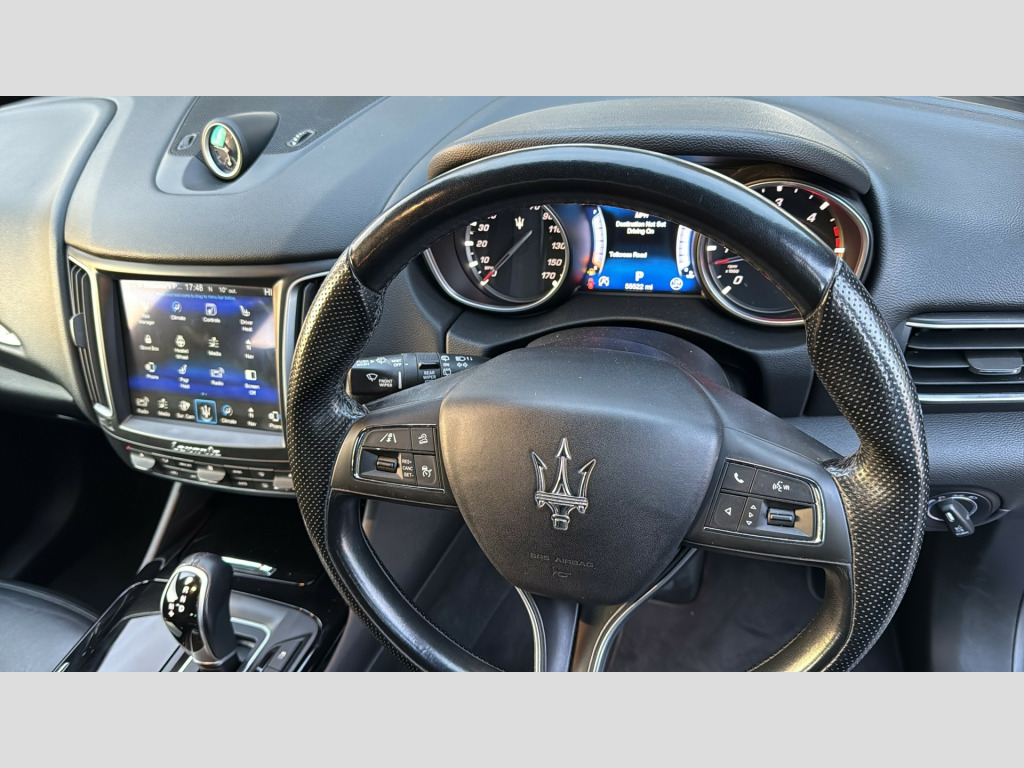 This 2017 Maserati Levante 3.0D V6 SUV, with a mileage of 55522 miles, is a stylish and powerful diesel vehicle that is sure to impress. With 5 seats and 5 doors, it offers plenty of space for both passengers and cargo, making it a great option for families or adventurous individuals. This SUV is ULEZ compliant and features a MOT that expires on 23/07/2026, providing peace of mind for the future. Its Euro 6 (s/s) engine with 275 ps ensures a smooth and efficient drive, while the 18in Alloy Wheels and Oxidised Grey Brake Calipers add a touch of sophistication to its exterior. The Electric Front and Rear Windows with Anti Pinch Sensor, Electrochromatic, Electrically Adjustable, Heated, and Foldable Door Mirrors, and Chromeline details are just a few of the luxurious features that make this Maserati Levante a top choice for those seeking both style and performance in a SUV. in alloy wheels - borea design, brake calipers in oxidised grey, electric front and rear windows with anti pinch sensor, electrochromatic - electrically adjustable - heated - foldable door mirrors, exterior trim - chromeline, fix and go tyre sealing compound and electric air compressor, front grille with frame and vertical grille bars in chrome, front and rear head restraints with embossed trident logo, heated rear windscreen, laminated front glass with high thermal and noise insulation, ornamental side grilles in chrome, summer tyres, twin dual pipe exhaust system in chrome-plated stainless steel, 7in multifunction digital display cluster with on-board computer - driver info, active cruise control, air adaptive suspension, air shutter control - improves aerodynamic properties and fuel consumption, dashboard mounted maserati design clock, front and rear parking sensors with graphical display on central digital cluster, high double wishbone front suspension with 5-arm multilink rear suspension, i.c.e. control - increased control and efficency, maserati active sound - active exhaust sound system, mechanical limited-slip differential, off road mode setting via off road button, sport mode setting via sport button, skyhook - electronically variable active damping suspension system, speed sensitive power assisted steering, tpms - tyre pressure monitoring system with pressure displayed within the central digital cluster, air conditioned front passenger glove box with usb socket, air quality sensor, demist sensor, driver and passenger sunvisor with mirror and courtesy light, dual zone automatic climate control, electrochromatic interior rear view mirror, fabric headlining, front armrest with twin mechanical opening, front and rear courtesy lamps - footwell - door panel handle led lights, multi-function steering wheel and gear knob in leather - nero, piano black trim for selected interior details, power tailgate, rain sensor, rear armrest with 2x cupholders, rear seats with ski hatch - load through system, split folding rear seat at 60-40, standard seats - electrically adjustable front seats - 8 ways plus 4 ways for lumbar adjustments with two memories for drivers side, steering column with manual height and reach adjustments, velour floor mats, airbags - passenger deactivation, alarm system, dual stage front airbags - side and window airbags, epb - electronic parking brake, front seat belts with pre-tensioners and load limiters - rear seat belts with load limiters, hill descent control, hill holder, keyless entry and keyless go function, msp - maserati stability program, navtrak vehicle tracking system with automatic driver recognition and remote inhibition, audio system - 280w - 8x speakers, mtc plus - maserati touch control plus, one 12v and two usb sockets - rear passengers, bi-xenon front headlamps with integrated led daytime running lights and automatic activation, front and rear led fog lights, led taillights and third stop light