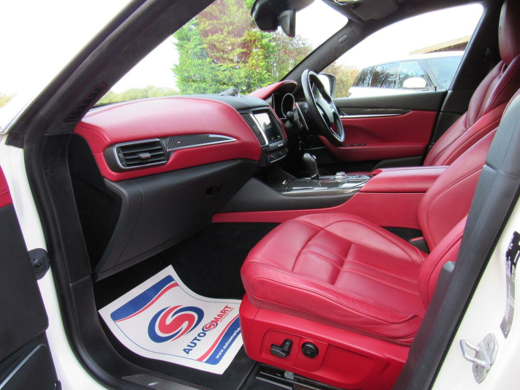 Hello & welcome to CMC Automotive. Here at CMC we are an approved AA trusted dealer. All vehicles come with nationwide warranty. We are delighted to offer this beautiful, high specification Maserati Levante 3.0D 4WD Euro 6. 2 Keys. Service history with vehicle. Finished in Bianco pearl white with heated front & rear red leather seats. Boasts an excellent specification, please see below for full specification & extras. ALL OUR VEHICLES COME HPI CLEAR. AA HISTORY CHECKED. WE OFFER COMPETITIVE FINANCE PACKAGES, APPLY ONLINE. NATIONWIDE DELIVERY AVAILABLE. EXTENDED WARRANTIES AVAILABLE. FCA APPROVED DEALER. ICO COMPLIENT DEALER. PART EXCHANGE WELCOME.