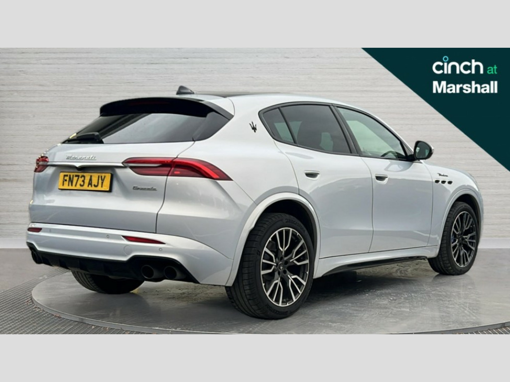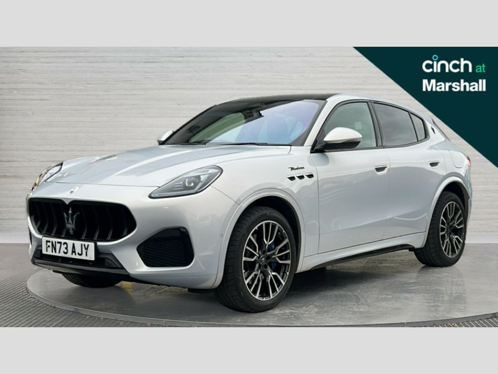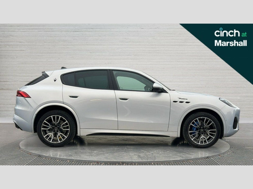 Maserati Grecale 48V MHEV 330 Modena 5dr Auto 12.3" full TFT digital colour display cluster with onboard computer and driver information, 12.3" HD touch screen central display with Maserati Intelligent Assistant (M.I.A) and satelite navigation, Android Automotive OS, 8.8" multifunction comfort display with smart gestures (controls for front/rear climate, seats, headlights, ambient lighting, clock & air suspension), Apple CarPlay and Android Auto, Bluetooth, Connectivity Services (Europe), Drive mode selector with dedicated drive modes (Comfort, GT, Offroad, Sport), E-call, Electronic Power Steering (EPS), Front and rear parking sensors with rear active braking, Head up Display, Maserati connect, Start and stop engine function, TBM (Telematic Box Module) for Connectivity, Wireless charger, All wheel drive system, Mechanical limited slip differential (M-LSD), Multilink front suspension with semi virtual steering axis and multilink rear suspension with lower control arm, ZF - 8 speed automatic transmission, 4 USB charging port, Digital Audio Broadcast (DAB), Air shutter control, Auto dimming interior frameless mirror, Automatic headlight activation with dusk sensor, Badges in black finish, Black side skirts inserts, Body coloured bumpers, Chrome door handles, Daylight opening (DLO) in black finish, Demist sensor, Front and rear aluminium door sills, Front and rear electric windows with anti-pinch sensor, Front grille with vertical grille bars in piano black finish, Front splitter in black, Full LED headlights, Heated door mirrors, Heated rear windscreen, Heated windscreen washer nozzles, Infrared (IR) protection windscreen, LED daytime running lights, LED rear fog light, LED tail lights and third stop light, Power folding door mirrors including memory, Puddle lights, Quad tips exhaust system in black finish, Rain sensor, Rear side wing doors, Rear spoiler, Rear wiper, 14 way power front sports seats with driver's side memory fuction, 3 seat bench in 2nd row, 40/20/40 split folding rear seat, Air quality sensor, Ambient lighiting on dashboard and door panels, Brushed stainless steel sports pedals, Drilled leather multifunction steering wheel in forged black with fixed aluminium paddle shifters and blue start stop button, Driver and passenger sunvisor with mirror and courtesy light, Fabric headlining trim, Front and rear internal floor mats in velour, Front armrest with 12V power outlet, Heated front seats, Maserati digital smart clock on dashboard, Power height and reach adjustable steering column, Rear armrest with 2 cupholders, Rear seats with ski hatch, Single front passenger seat, Three zone automatic climate control with rear touch screen, Two front cup holders, Tech assistance pack - Grecale, 3x3 point rear seatbelts, Acceleration Slip Regulation (ASR), Antilock Braking System (ABS), Electronic Brake Distribution (EBD) and Motor Slip Regulation (MSR), Advanced brake assist, Automated emergency braking with pedestrian recognition, Child locks on rear doors, Driver and passenger advanced dual stage front airbags, Electronic parking brake, Electronic Stability Control (ESC), Front and rear side curtain airbags, Front seat belts with pre-tensioners and load limiters, rear seat belts with load limiters, Front seat mounted side airbags, Hill descent control, Hill start assist, Integrated vehicle control, Manual passenger airbag deactivation function, Performance braking system - Ventilated brakes: 350mmX28mm with fixed, four piston callipers at front, 330mmX22mm with floating MOC calliper at rear, Tyre pressure monitoring system, Vehicle domain control (VDC), Driver and front passenger doors Keyless entry and keyless go function, Perimeter alarm system including volumetric sensing, anti-lift device and electronic immobiliser, Vodafone stolen vehicle recovery with automatic driver recognition and remote inhibition, 3 years premium service plan, Fix and go tyre sealing compound and electric air compressor