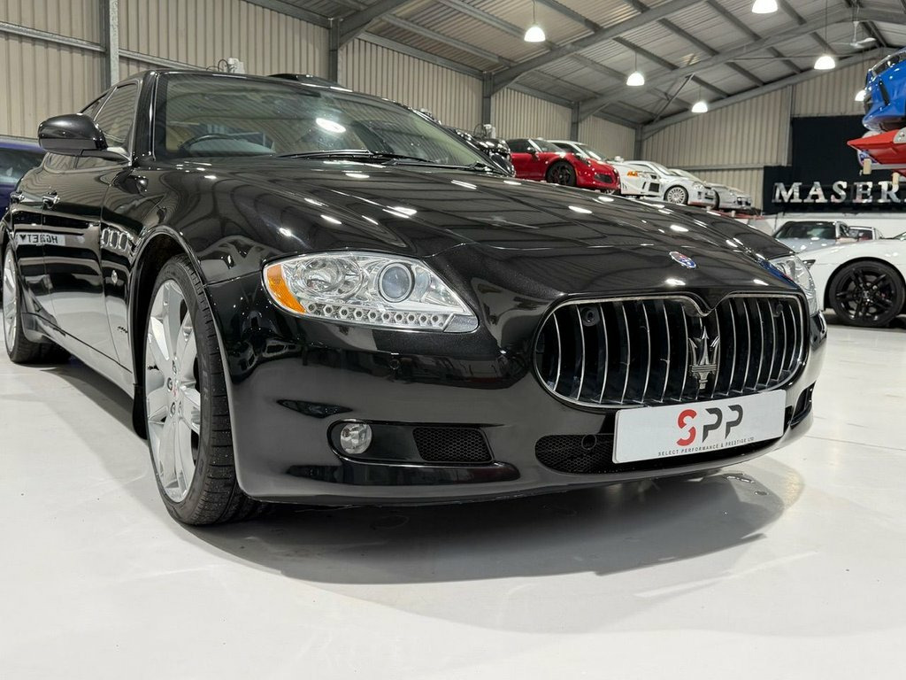 Select Performance are Delighted to Offer this Stunning Maserati QP 4.7 V8 S, 2 Former Keepers in Total but last Owner had Owned the car From May 2010, ££££ Spent Over the Years at Gray Paul and his Local Maserati Specialists.. Finished In Nero with Light Sabbia Leather.. Viewings are Highly Recommended, By Appointment Only Please and for any more Info or a Walk Round Video Please call Alex Direct on 07557 657441... Front Parking sensor, Leather- Sabbia, Nero Carbonio, Polished Wenge Wood Inlay with inlay wor, Front Seat Comfort Pack, Heated Front Seats, Alcantara headlining, 20in 7Spoke Alloy Wheels, 19in V Style polished Alloy Wheels, BOSE Sound System, Black brake calipers, Multimedia System with SatNav Radio &, Polished Wenge Wood Interior Trim, Puncture Repair kit with 12V Air compres, Starwood Trim