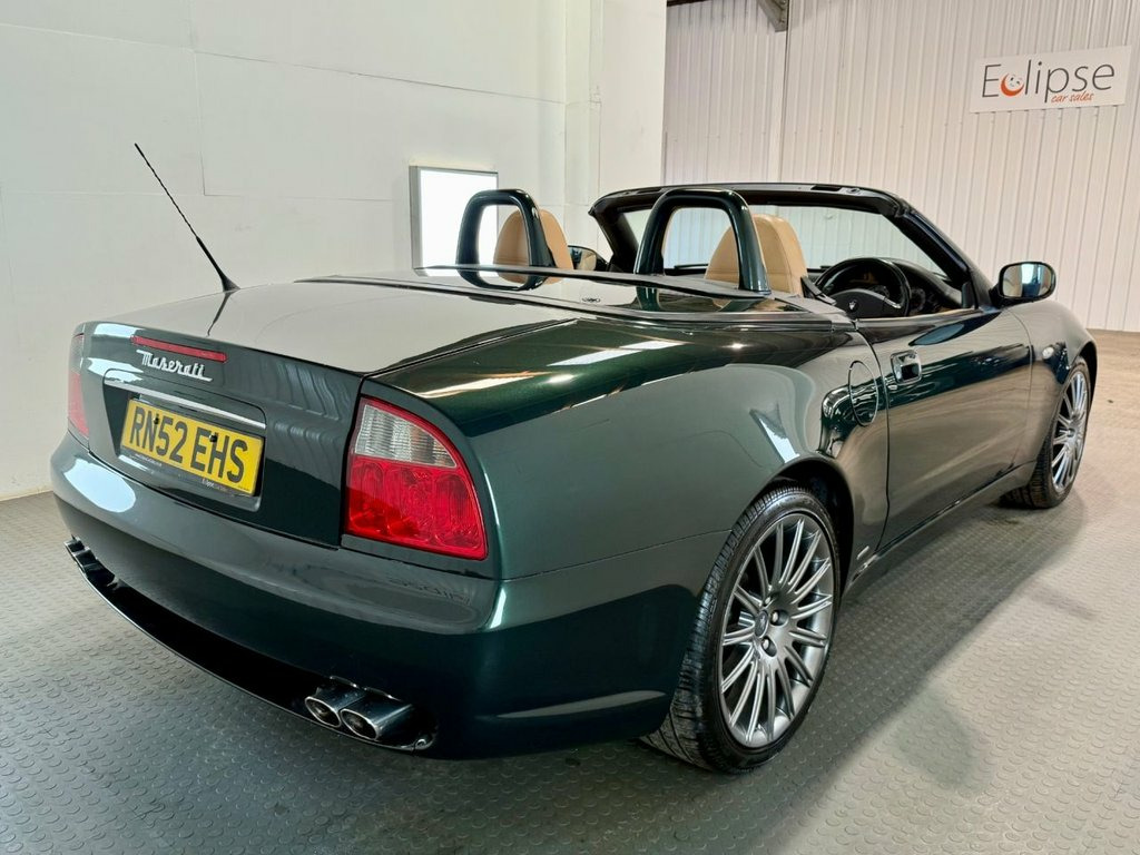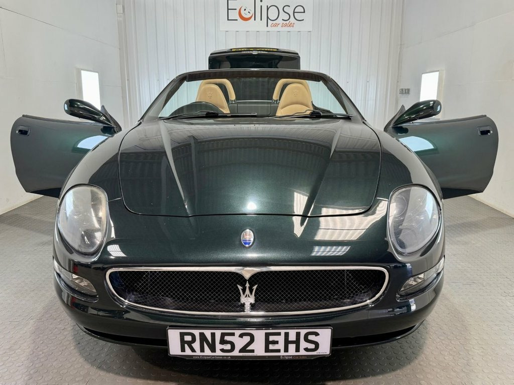 **THIS CAR MAY BE AT OUR 150 CAR STORAGE FACILITY. PLEASE CALL AHEAD BEFORE YOU VISIT TO ARRANGE VIEWING AT OUR WINCHESTER SALES SITE** A stunning example of this timeless Maserati Spyder finished in Verde Goodwood with the Cuoio (Tan) leather really makes this car pop out and a definite eye catcher. This car comes with Full Service History last service being done at a Italian Sports Car Specialist on 42.5k miles then before, that at 483 miles, 4k, 7.5k, 9k, 14k, 18k, 28k, 35k, 37k, 38.5k, 40k, 41.5k, this car also comes with MOT until December 2025 Drives and sounds amazing, perfect for a collector or as a sunny weekend drive car. Comes with all the original booklets and tool kit from Maserati from new as seen in the pictures 5 Piece Luggage Set, Gold Clock, GPS Radio Navigator, GSM Phone Kit, Heated Front Seats, Leather Cuoio (Tan), Verde Goodwood, Wind Stop