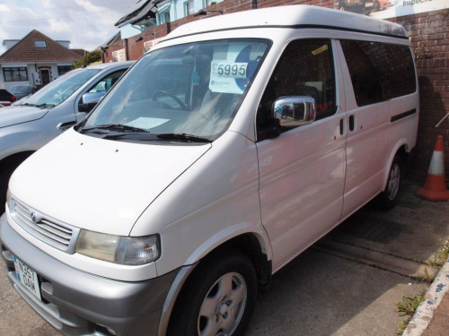 This Mazda Bongo 2.5 Diesel Automatic Day Van is finished in Abris White with grey cloth trim. Features include a rear sink, gas hob, electric pop-top roof, internal blinds, and a four-berth sleeping capacity. Clean condition throughout. Part exchange welcome and fully HPI clear. Please note: the vehicle's mileage is in kilometers, not miles, and it is an import. Registered in 2010 but the vehicles is from 1996. Adjustable Steering Wheel - Rake/Reach, CD Player, Power Assisted Steering, Rev Counter, Seating Capacity - Five Seats, Wash/Wipe - Rear, Front Head Restraints, Cigar Lighter, Centre Console, Alloy Wheels