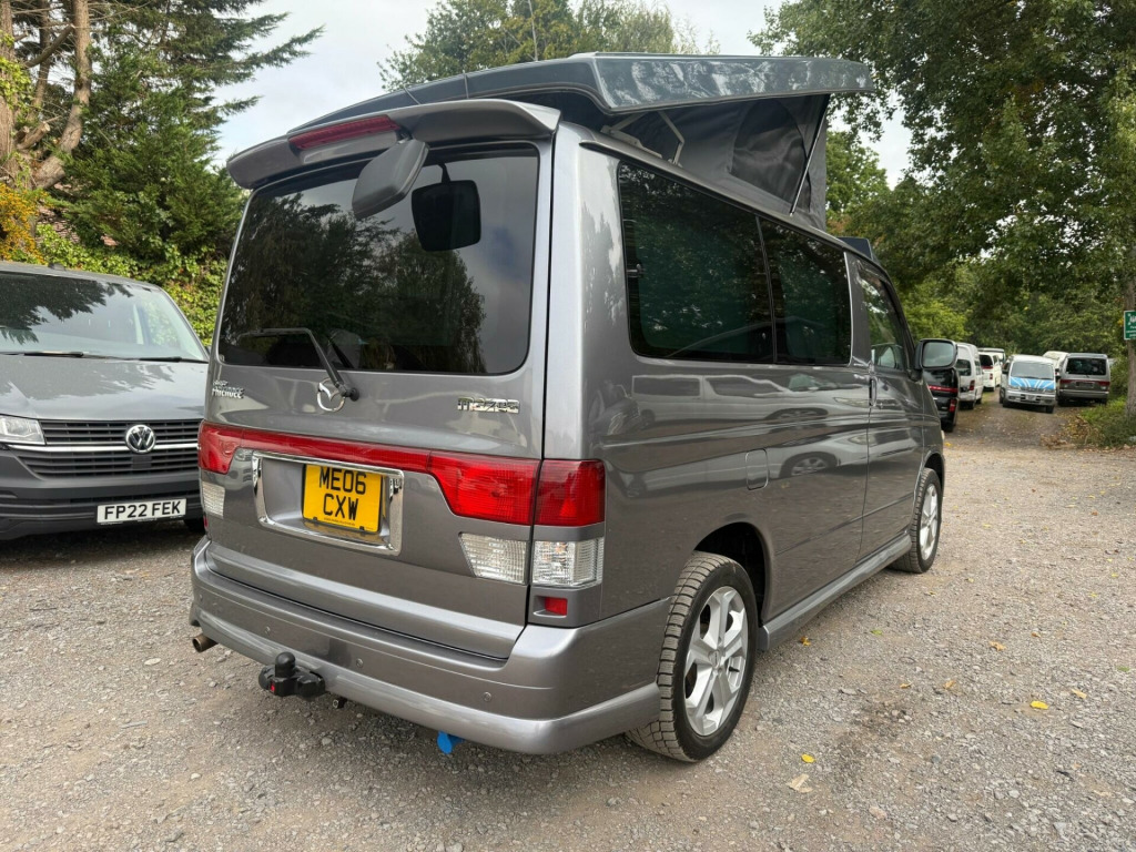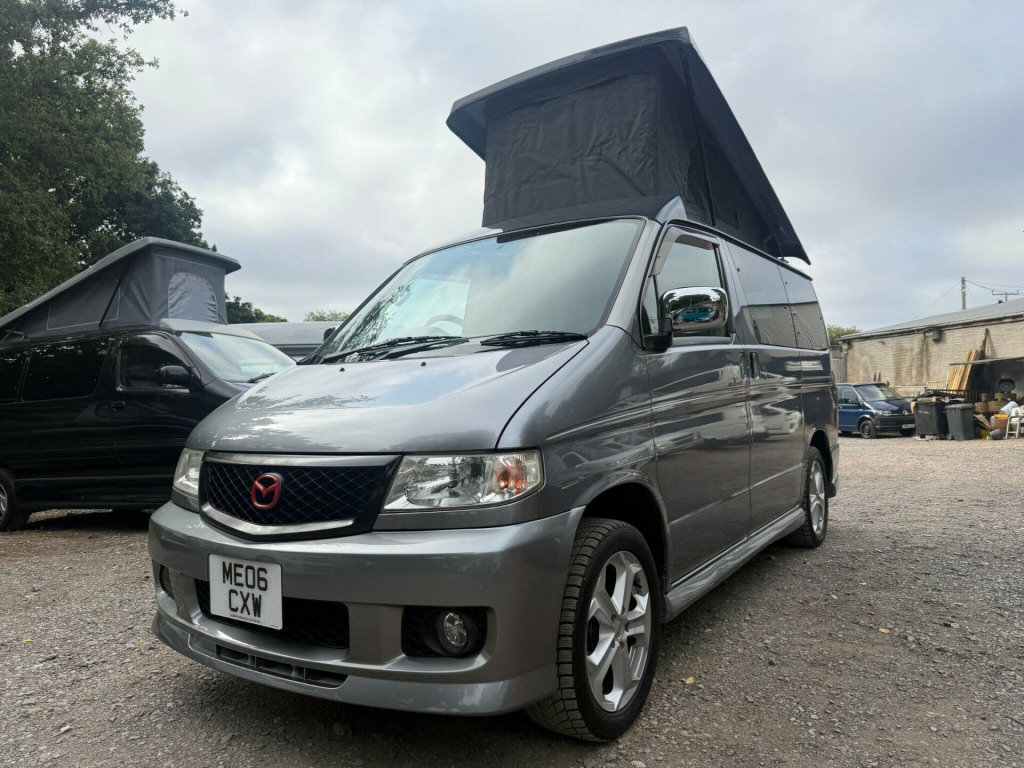 ULEZ & CAZ COMPLIANT.2006 MAZDA BONGO POP TOP 4 BERTH FULL NEW SIDE CAMPER CONVERSION INCLUDES: COOKER, SINK WITH RUNNING WATER, TOP LOADER FRIDGE, FRESH & WASTE WATER BOTTLES, MAINS HOOKUP, UK SOCKETS, STORAGE, TABLE power windows, Power Assisted Steering, Air bag ABS, Blinds, ROCK N ROLL BED goes flat to make into bed 2 adult can sleep, 2 sleep up, 2 LITRE Petrol engine automatic transmission benefits from over drive, 2 WHEEL DRIVE, CLEAN BONGO IN & OUT,Long MOT,UNDERSEAL,SERVICE. Low miles  Miles 88,486 only, 3 MONTHS ENGINE & GEARBOX WARRANTY FULL AFTER SALE SERVICES OPTIONAL EXTRAS AVAILABLE NATIONWIDE DELIVERY VIEWINGS BY APPOINTMENT ONLY..