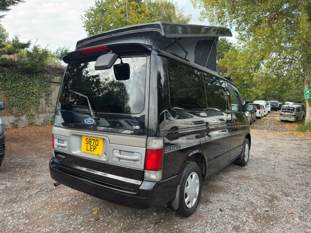 LOW MILES ONLY 43,200, MAZDA BONGO/FORD FREDA POP TOP 4 BERTH FULL BRAND NEW HIGH QUALITY SIDE CAMPER CONVERSION FITTED BY US INCLUDES: COOKER, SINK WITH RUNNING WATER, Top loader Fridge(you can still access fridge when bed down) FRESH & WASTE WATER BOTTLES, LEISURE BATTERY, SPLIT CHARGER, MAINS HOOKUP, UK SOCKETS, STORAGE, TABLE, RCD FUSE BOX, power windows, Power Assisted Steering, Dual Airbags ABS, Blinds,AIR CONDITIONING AC, POP TOP ROOF,39 INCH WIDE ROCK N ROLL BED goes flat to make into bed 2 adult can sleep, 2 sleep up, 2.5 LITRE V6 Petrol engine automatic transmission benefits from over drive, 2 WHEEL DRIVE, CLEAN BONGO IN AND OUT, NATIONWIDE DELIVERY.OPTIONAL EXTRAS AVAILABLE