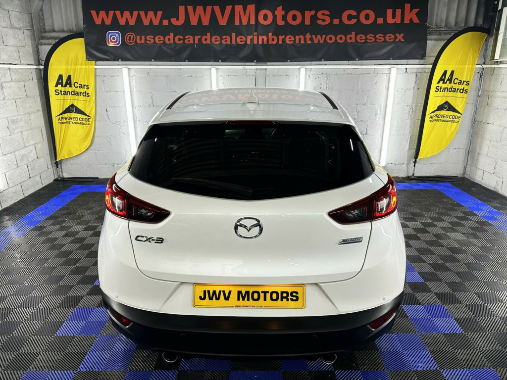 Amazing condition and great looking Mazda CX 3 SE. This Mazda definitely stands out of the crowd and is very practical and great mpg for this type of car. Which is in excellent condition inside and out for its age and low mileage. Service history comprising of 3 main dealer and 2 others. This car comes complete with 3 months warranty. (Unlimited miles and claims, parts and labour). Warranty upgrades and extended available please visit our website for full terms and conditions, for that extra peace of mind. HPI clear. Professionally valeted and detailed inside and out giving you the highest quality a car dealer can offer. The perfect new used car feeling. 1 x remote central locking key fob. Part exchange welcome. This car is ready to drive away today. Appointments only giving you the customer our full attention, call today to arrange a viewing. All credit and debit cards accepted including American express. If you are looking for finance we work with a number of brokers to help find you the best deal. If you choose to finance your car with JWV Motors we will give you something back in return, 6 months warranty with no admin fee. Unfortunately if you decide to choose an outsourced finance provider there will be an admin, this will vary depending on the company charges. If this car is not suitable for your needs you can visit all of our current stock on our website www.jwvmotors.co.uk. Why choose JWV Motors? Why not look at our reviews before making any decisions. Thank you for your time.SALE YOUR CAR THROUGH OUR SALE OR RETURN POLICY. INTERESTED PLEASE CALL FOR DETAILS. in alloy wheels, door mirrors - electrically adjustable-heated-folding-turning signal, dual exhaust system, electric windows - front and rear with one touch auto up and down on drivers side, emergency tyre repair kit, privacy glass - rear and rear side windows, radiator grille - black, side sill trim - black, 7in colour touch screen display, am-fm-dab radio - single cd player-mp3 audio system with 6 speakers, aux and 2 usb inputs, aha app and stitcher app integration, bluetooth audio streaming, integrated bluetooth system, satellite navigation - european mapping with 3-years map updates, shark fin antenna, air conditioning - automatic climate control, courtesy light with integral spotlights, door pockets - driver - front passenger and rear, engine start-stop button, front knee pads - black plastic, gear knob - leather-wrapped with piano black surround, glovebox, grab handles - two rear with coat hooks, handbrake - leather wrapped, inner door handles - satin silver, luggage compartment - flexible floorboard for adjustable floor height or secure separate storage space, luggage compartment - light, luggage compartment - tonneau cover, rain-sensing front wipers, seatback pocket - rear of front passenger seat, seats - 60-40 split folding rear, seats - drivers manual slide-recline and height adjustment, seats - front heated, seats - front passenger manual slide and recline adjustment, steering wheel - leather, steering wheel - mounted audio and bluetooth controls, steering wheel - telescopic and tilt adjust, sunvisors - driver and front passenger with vanity mirror, airbags - front passenger deactivation system, anti lock braking system - 4w-abs, dual front airbags, dynamic stability control with traction control system, eba - emergency brake assist, emergency stop signalling system - ess, front side airbags, front and rear curtain airbags, hill hold assist, isofix child seat anchorage for outer rear seats, remote central locking with deadlocking, seatbelt reminder audible warning, seatbelts - front 3-point -elr - x2 with pre-tensioners - height-adjustment, seatbelts - rear - 3-point - elr, smart city brake support, thatcham catergory 1 alarm, wipers - rear adjustable speed with intermittent, cruise control with manual speed adjustment, gear shift indicator, lane departure warning system, multimedia commander, power assisted steering - electronic, rear parking sensors, trip computer, tyre pressure monitoring system, dusk sensing automatic headlights, front fog lights - led, headlights - coming-leaving home, headlights - halogen with halogen daytime running lights and manual headlight levelling