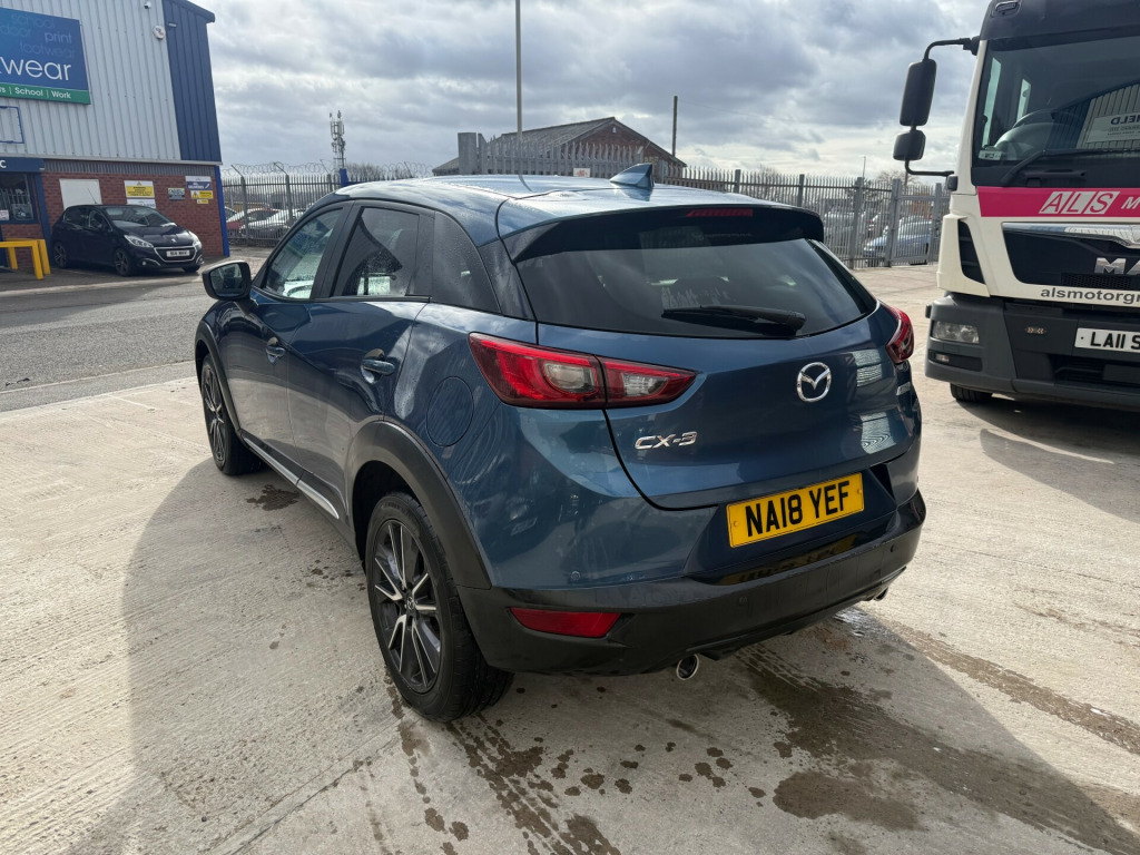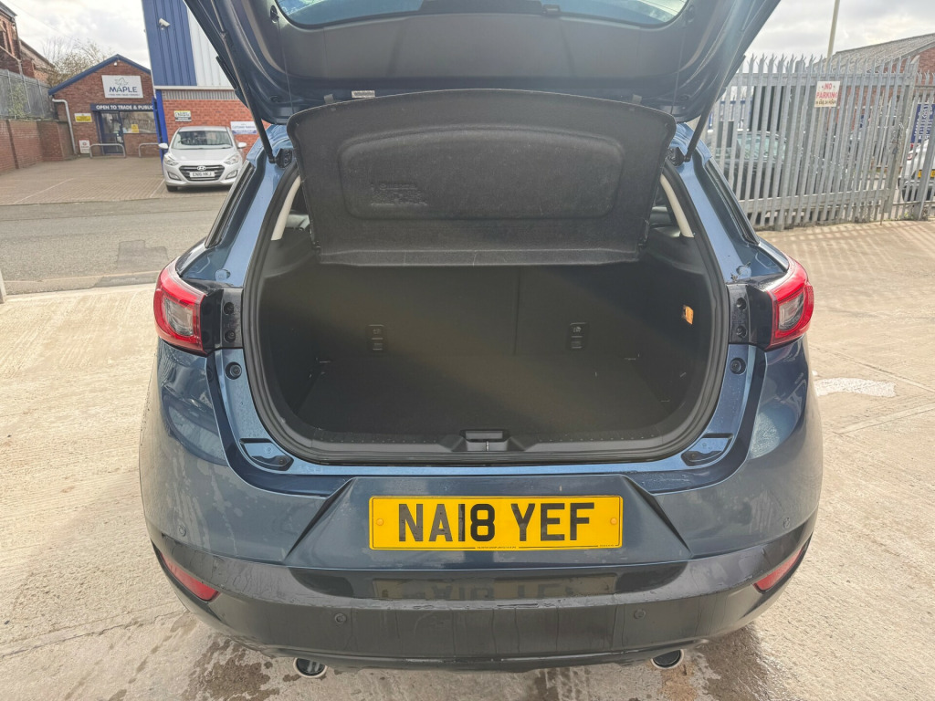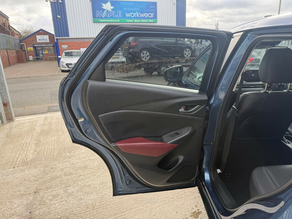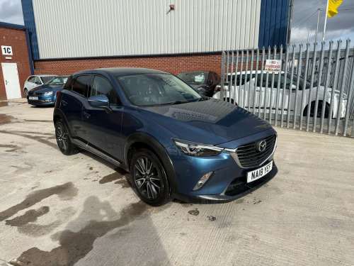 Mazda CX-3 1.5 SKYACTIV-D Sport Nav - stylish and economical diesel SUV with 103,600 miles, ULEZ compliant status and a long MOT valid until September 2026. Powered by the efficient 1.5 SKYACTIV-D engine offering excellent fuel economy with smooth performance, making it ideal for commuting or longer journeys. A well-presented example that drives very well.The CX-3 Sport Nav combines sharp styling with Mazda's renowned driving dynamics and strong build quality. The elevated driving position and spacious interior make it comfortable for everyday use, while its compact size keeps it easy to manoeuvre in town. A smart and practical SUV with a premium feel.ULEZ compliantMOT until September 2026103,600 miles1.5 SKYACTIV-D diesel engineManual transmissionSport Nav specification18 inch alloy wheelsElectrically adjustable heated folding mirrorsDual exhaust systemElectric windows5 doors - 5 seatsLow running costsServiced on saleWarranty includedFinance available via trusted partnersNationwide delivery availablePart exchange welcome in alloy wheels - gunmetal, door mirrors - electrically adjustable-heated-folding-turning signal, dual exhaust system, electric windows - front and rear with one touch auto up and down on drivers side, emergency tyre repair kit, privacy glass - rear and rear side windows, radiator grille - silver accent, side sill trim - chrome accent, 7in colour touch screen display, am-fm dab radio - single cd-mp3 premium bose sound system with 7 speakers, aux and 2 usb inputs, aha app and stitcher app integration, bluetooth audio streaming, integrated bluetooth system, satellite navigation - european mapping with 3-years map updates, shark fin antenna, air conditioning - automatic climate control, courtesy light with integral spotlights, door pockets - driver - front passenger and rear, engine start-stop button, front knee pads - dark red - soft-touch with stitching, gear knob - leather-wrapped with satin silver surround, glovebox, grab handles - two rear with coat hooks, handbrake - leather wrapped, heated steering wheel, inner door handles - chrome, luggage compartment - flexible floorboard for adjustable floor height or secure separate storage space, luggage compartment - light, luggage compartment - tonneau cover, rain-sensing front wipers, seatback pocket - rear of front passenger seat, seats - 60-40 split folding rear, seats - drivers manual slide-recline and height adjustment, seats - front heated, seats - front passenger manual slide and recline adjustment, steering wheel - leather, steering wheel - mounted audio and bluetooth controls, steering wheel - telescopic and tilt adjust, sunvisors - driver and front passenger with vanity mirror, airbags - front passenger deactivation system, anti lock braking system - 4w-abs, dual front airbags, dynamic stability control with traction control system, eba - emergency brake assist, emergency stop signalling system - ess, front side airbags, front and rear curtain airbags, hill hold assist, isofix child seat anchorage for outer rear seats, remote central locking with deadlocking, seatbelt reminder audible warning, seatbelts - front 3-point -elr - x2 with pre-tensioners - height-adjustment, seatbelts - rear - 3-point - elr, smart city brake support, smart keyless entry, thatcham catergory 1 alarm, wipers - rear adjustable speed with intermittent, colour active driving display - colour head-up display, cruise control with manual speed adjustment, gear shift indicator, lane departure warning system, multimedia commander, power assisted steering - electronic, rear parking sensors, reversing camera, trip computer, tyre pressure monitoring system, dusk sensing automatic headlights, front fog lights - led, headlights - adaptive front lighting system, headlights - coming-leaving home, headlights - led with led daytime running lights and auto headlight levelling, led signature rear lights