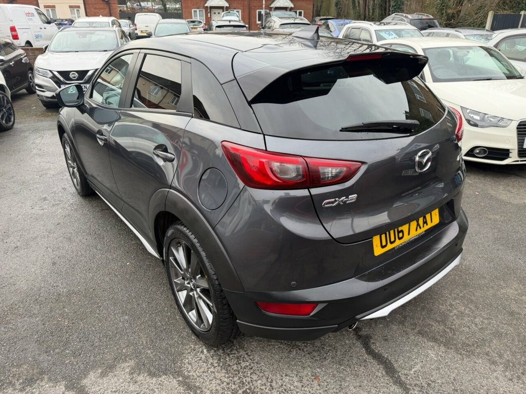 Mazda CX-3 2.0 SKYACTIV-G GT Sport – Low Miles | Heated Seats | Bose Petrol | Manual | Euro 6 | 121 PS | 36,329 Miles | MOT Until 20-09-2026 This Mazda CX-3 2.0 SKYACTIV-G GT Sport is a superb, low-mileage example of Mazda's stylish and reliable compact SUV. With just 36,329 miles from new, only two owners, and a solid 4-service history up to 36k, it has been well maintained throughout. Powered by the smooth and responsive 2.0-litre SKYACTIV-G petrol engine producing 121 PS, it delivers enjoyable performance with excellent efficiency. Its Euro 6 compliance makes it ideal for everyday driving and modern clean-air zones. Finished in grey with a dark interior, this range-topping GT Sport model offers an excellent level of specification. Features include satellite navigation, Bluetooth, alloy wheels, heated seats, and the premium Bose sound system, providing comfort and high-quality audio. A clean, low-mileage example of the Mazda CX-3 GT Sport — combining style, reliability, and excellent specification. Vehicle Preparation & Warranty Every vehicle is supplied with a minimum of 6 months MOT. If the remaining MOT is less than 6 months at point of sale, the car will receive a FREE 12-month MOT prior to collection. All vehicles are fully up to date with servicing where required. We include a FREE 3-month engine warranty, provided on a return-to-base basis. For additional peace of mind, we offer comprehensive nationwide warranty upgrades covering both parts 18in Alloy Wheels - Lustre Coating Gunme, 7in Colour Touch Screen Display, AM-FM DAB Radio - Single CD-MP3 Premium , AUX and 2 USB Inputs, Aha App and Stitcher App Integration, Air Conditioning - Automatic Climate Con, Airbags - Front Passenger Deactivation S, Anti Lock Braking System - 4W-ABS, Bluetooth Audio Streaming, Colour Active Driving Display - Colour H, Courtesy Light with Integral Spotlights, Cruise Control with Manual Speed Adjustm, Door Mirrors - Electrically Adjustable-H, Door Pockets - Driver - Front Passenger , Dual Exhaust System, Dual Front Airbags, Dusk Sensing Automatic Headlights, Dynamic Stability Control with Traction , EBA - Emergency Brake Assist, Electric Windows - F
