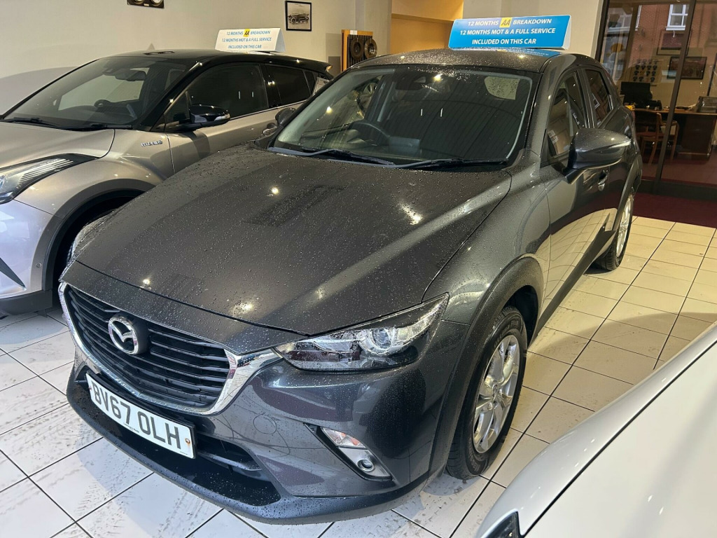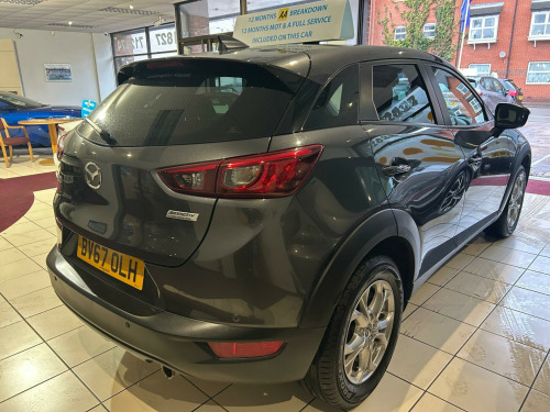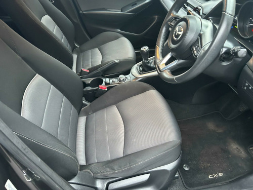 This 2017 Mazda CX-3 SKYACTIV-G SE-L Nav boasts a full service history, ensuring its excellent provenance. This stylish compact SUV is equipped with a responsive 2.0 litre petrol engine and meets Euro 6 emissions standards. For your peace of mind, it will be supplied with a 12 month MOT. Inside, you'll find a comfortable cabin featuring automatic climate control, heated front seats, and a Bluetooth hands free system for seamless connectivity on the go. The SE-L Nav trim also includes dusk sensing automatic headlights and rear parking sensors, making every journey more convenient and safe.The Mazda CX-3 SKYACTIV-G SE-L Nav offers impressive efficiency and performance. With a fuel economy of 48 miles per gallon and low CO2 emissions, it represents a cost effective choice for drivers. Its acceleration from 0 to 62 miles per hour in just 9.0 seconds demonstrates its capable performance. Furthermore, this model benefits from a low insurance group, which can help to reduce your annual running costs, making it a smart and practical option compared to many other vehicles in its class.. 12V Power Socket - Front, 16in Alloy Wheels - Silver, 7in Colour Touch Screen Display, AUX Socket, Adjustable Speed Limiter, Aha App and Stitcher App Integration, Air Conditioning - Automatic Climate Control, Air Vents - Piano Black Surround with Dark Red Inner Ring, Airbags - Curtain Front, Airbags - Curtain Rear, Airbags - Driver, Airbags - Front Passenger, Airbags - Front Passenger Deactivation System, Anti Lock Braking System - 4W-ABS, Bluetooth Audio Streaming, Bluetooth Hands Free System, Courtesy Light with Integral Spotlights, Cruise Control, Cupholder - Centre Console x2, DAB Radio, DSC - Dynamic Stability Control, Dashboard Panel - Black - Soft-touch with Stitching, Daytime Running Lights, Deadlocking, Door Mirrors - Electrically Adjustable-Heated-Folding-Turning Signal, Door Pockets - Front, Door Pockets - Rear, Dusk Sensing Automatic Headlights, EBA - Emergency Brake Assist, EBD - Electronic Brakeforce Distribution, Electric Windows - Front and Rear with One Touch Auto Up and Down on Drivers Side, Emergency Stop Signalling System - ESS, Engine Start-Stop Button, Exhaust Tailpipes - Twin, Front Fog Lights - LED, Front Knee Pads - Black Plastic, Front Side Airbags, Gear Knob - Leather-Wrapped with Piano Black Surround, Gear Shift Indicator, Glovebox Illumination, Grab Handles - Front Passenger, Grab Handles - Two Rear with Coat Hooks, Handbrake - Leather Wrapped, Headlights - Coming-Leaving Home, Headlights - Halogen, Headlights - Manual Levelling, Hill Hold Assist, ISOFIX Child Seat Anchorage for Outer Rear Seats, Immobiliser, Inner Door Handles - Satin Silver, Lane Departure Warning System, Luggage Compartment - Flexible Floorboard for Adjustable Floor Height or Secure Separate Storage Space, Luggage Compartment - Light, Luggage Compartment - Tonneau Cover, Mazda Advanced Impact Distribution and Absorption System - MAIDAS, Multimedia Commander, Overhead Console with Sunglassess Holder, Pollen Filter, Power Assisted Steering - Electronic, Privacy Glass - Rear and Rear Side Windows, Radiator Grille - Black, Radio-CD, Rain-Sensing Front Wipers, Rear Parking Sensors, Rear View Mirror - Manual - Day and Night Mode, Remote Central Locking, SRS - Supplementary Restraint System, Satellite Navigation - European Mapping with 3-years Map Updates, Satellite Navigation System, Seatback Pocket - Rear of Front Passenger Seat, Seatbelt Reminder - Front with Audible Warning, Seats - 60-40 Split Folding Rear, Seats - Drivers Manual Slide-Recline and Height Adjustment, Seats - Front Heated, Seats - Front Passenger Manual Slide and Recline Adjustment, Shark Fin Antenna, Side Door Trim - Black Cloth Inserts, Side Sill Trim - Black, Smart City Brake Support, Speakers x6, Spoiler - Rear Roof, Steering Wheel - Leather-wrapped with Satin Silver Bezel, Steering Wheel - Mounted Audio and Bluetooth Controls, Steering Wheel - Telescopic and Tilt Adjust, Sunvisors - Driver Ticket Holder, Sunvisors - Driver and Front Passenger with Vanity Mirror, TCS - Traction Control System, Thatcham Catergory 1 Alarm, Three Height Adjustable Rear Head Restraints, Trip Computer, Tyre Pressure Monitoring System, Tyre Repair Kit, USB - iPod Connectivity, Voice Control for Phone. Full service history