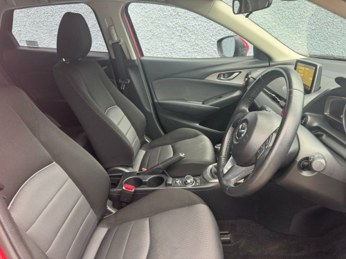 Highly reliable and superbly fuel efficient Mazda CX-3. Features include A/C, push button start, keyless entry, Bluetooth and more. Extensive Mazda service history provided. 12V Power Socket - Front, 16in Alloy Wheels - Silver, 7in Colour Touch Screen Display, Adjustable Speed Limiter, Aha App and Stitcher App Integration, Air Conditioning - Automatic Climate Con, Air Vents - Piano Black Surround with Da, Airbags - Curtain Front, Airbags - Curtain Rear, Airbags - Driver, Airbags - Front Passenger, Airbags - Front Passenger Deactivation S, Anti Lock Braking System - 4W-ABS, AUX Socket, Bluetooth Audio Streaming, Bluetooth Hands Free System, Courtesy Light with Integral Spotlights, Cruise Control, Cupholder - Centre Console x2, DAB Radio, Dashboard Panel - Black - Soft-touch wit, Daytime Running Lights, Deadlocking, Door Mirrors - Electrically Adjustable-H, Door P
