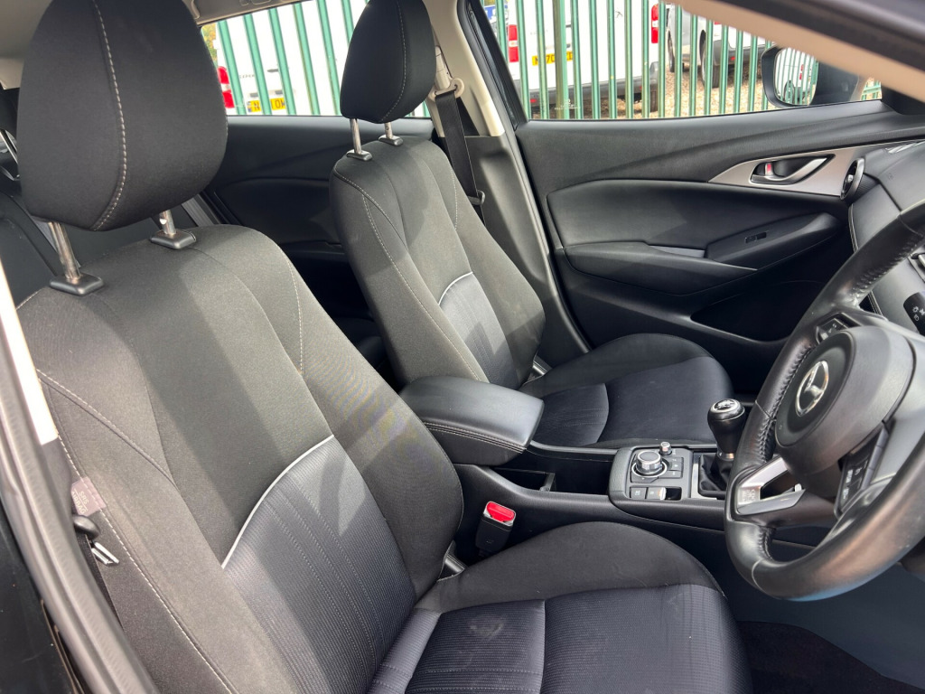 This 2018 Mazda CX-3 is a sleek SUV with just 77625 miles on the clock, powered by a reliable 2.0 SKYACTIV-G petrol engine and a manual transmission, making it a joy to drive. With 5 doors and 5 seats, there's plenty of space for the whole family, and it's ULEZ compliant, meaning you can drive in the city without worrying about extra charges. The vehicle will be sold with a new MOT on sale, so you can be confident in its roadworthiness. The car is equipped with 16in alloy wheels, electrically adjustable and heated door mirrors, a dual exhaust system, and electric windows all around for convenience. And in case of a flat tire, there's an emergency tyre repair kit included. Don't miss out on this attractive and reliable SUV!- 5 Services carried out at Mazda- New MOT on sale - 2 keys- Finance available- Part exchange welcome- Extended warranties available in alloy wheels, door mirrors - electrically adjustable - heated - auto power folding with integrated indicator lights, dual exhaust system, electric windows - front and rear with one touch auto up and down on drivers side, emergency tyre repair kit, front bumper trim - black, side sill trim - black, 7in colour touch screen display, am-fm-dab radio - single cd player-mp3 audio system with 6 speakers, aux and 2 usb inputs, aha app and stitcher app integration, audio transfer from bluetooth devices, integrated bluetooth system, mazda navigation system - european mapping with alternative route calculations - point of interest search and 3-years free map updates, shark fin antenna, abs - anti lock braking system, airbags - front passenger deactivation system, dual front airbags, dynamic stability control with traction control system, eba - emergency brake assist, electronic parking brake with auto-disengage function, emergency stop signalling system - ess, front side airbags, front and rear curtain airbags, g-vectoring, hill hold assist, isofix child seat anchorage for outer rear seats, remote central locking with deadlocking, seatbelt reminder audible warning, seatbelts - front 3-point -elr - x2 with pre-tensioners - height-adjustment, seatbelts - rear - 3-point - elr, thatcham category 1 alarm and immobiliser, wipers - rear adjustable speed with intermittent, air conditioning, auto dimming rear view mirror, centre armrest - 2x cup holders, courtesy light with integral spotlights, door pockets - driver - front passenger and rear, engine start-stop button, front knee pad - black, gear knob - leather-wrapped with piano black surround, glovebox, grab handles - front passenger and two rear with coat hooks, inner door handle surround - front and rear - chrome, luggage compartment - flexible floorboard for adjustable floor height or secure separate storage space, luggage compartment - light, luggage compartment - tonneau cover, seatback pocket - rear of front passenger seat, seats - 60-40 split folding rear, seats - drivers manual slide-recline and height adjustment, seats - front passenger manual slide - recline and height adjustment, steering wheel - leather wrapped, steering wheel - mounted audio and bluetooth controls, steering wheel - telescopic and tilt adjust, sunvisors - drivers and front passengers with covered vanity mirror and drivers ticket holder, wipers - front adjustable speed with intermittent, cruise control with manual speed adjustment, gear shift indicator, multimedia commander, power assisted steering - electronic, trip computer, tyre pressure monitoring system, headlights - coming-leaving home, headlights - halogen with halogen daytime running lights and manual headlight levelling