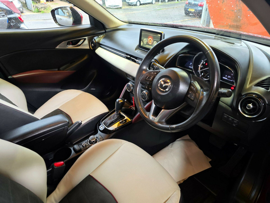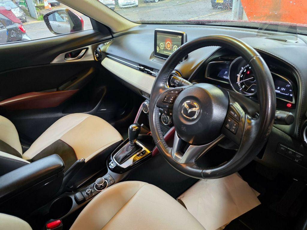 LOW MILEAGE 45K ONLY !!!! , HPI:CLEAR , ULEZ FREE, FULL SERVICE HISTORY , JUST HAD A FRESH SERVICE AND NEW BRAKE DISCS AND PADS ALL AROUND , LONG MOT , SATELLITE NAVIGATION , REVERSING CAMERA , HEAD UP SPEED DISPLAY , REAR PARKING SENSORS , FULL LEATHER WITH HEATED FRONT SEATS , 2 REMOTE MAZDA FOBS , POWERFOLDED WING MIRRORS , BLUETOOTH , CRUISE CONTROL , USB , FULLY LOADED AND GREAT LOOKING SPORT CAR , DONT MISS IT !!!, 3 to 36 months warranty available , 5 days drive away insurance available, in Greenford Perivale London, all major debit and credit card accepted, finance option available, www.wheels4you.co.uk, All Vehicles Are Subject To A £99.99 Administration FeeThis 2016 Mazda CX-3 SKYACTIV-G Sport Nav presents an exceptional opportunity with its remarkably low mileage of just 45,000 miles. As a Euro 6 compliant model, this CX-3 is powered by a responsive 2.0 litre petrol engine and features the desirable Sport Nav trim. You'll appreciate the convenience of the Bluetooth Hands Free System, allowing for seamless connectivity on the go. Driving is made easier and safer with LED headlights that automatically activate at dusk, and a reversing camera to assist with parking. Inside, the automatic climate control ensures a comfortable cabin temperature in all conditions.This Mazda CX-3 stands out with several key advantages. Its impressive fuel economy of 49 mpg means fewer trips to the petrol station, making it an economical choice for your daily journeys. Furthermore, its low insurance group rating indicates that running costs will be kept to a minimum. The vehicle also boasts low CO2 emissions, which is beneficial for both the environment and potential future motoring regulations. These highlights collectively demonstrate how this CX-3 offers a superior ownership experience compared to many other vehicles in its class. v power socket - front, 18in alloy wheels - gun metallic diamond-cut, 7in colour touch screen display, aux socket, adjustable speed limiter, aha app and stitcher app integration, air conditioning - automatic climate control, air vents - piano black surround with dark red inner ring, airbags - curtain front, airbags - curtain rear, airbags - driver, airbags - front passenger, airbags - front passenger deactivation system, anti lock braking system - 4w-abs, bluetooth audio streaming, bluetooth hands free system, courtesy light with integral spotlights, cruise control, cupholder - centre console x2, dab radio, dsc - dynamic stability control, dashboard panel - black - soft-touch with stitching, deadlocking, digital speedometer, door mirrors - electrically adjustable-heated-folding-turning signal, door pockets - front, door pockets - rear, driver mode selection switch, dusk sensing automatic headlights, eba - emergency brake assist, ebd - electronic brakeforce distribution, electric windows - front and rear with one touch auto up and down on drivers side, emergency stop signalling system - ess, engine start-stop button, exhaust tailpipes - twin, front fog lights - led, front knee pads - dark red - soft-touch with stitching, front side airbags, gear knob - leather-wrapped with satin silver surround, gear shift indicator, glovebox illumination, grab handles - front passenger, grab handles - two rear with coat hooks, handbrake - leather wrapped, head up display, headlights - adaptive front lighting system, headlights - automatic levelling, headlights - coming-leaving home, headlights - led, hill hold assist, isofix child seat anchorage for outer rear seats, immobiliser, inner door handles - satin silver, led daytime running lights, lane departure warning system, luggage compartment - flexible floorboard for adjustable floor height or secure separate storage space, luggage compartment - light, luggage compartment - tonneau cover, mazda advanced impact distribution and absorption system - maidas, multimedia commander, overhead console with sunglassess holder, pollen filter, power assisted steering - electronic, premium bose sound system, privacy glass - rear and rear side windows, radiator grille - chrome-accent, radio-cd, rain-sensing front wipers, rear lights - led, rear parking sensors, rear view mirror - manual - day and night mode, reversing camera, srs - supplementary restraint system, satellite navigation - european mapping with 3-years map updates, satellite navigation system, seatback pocket - rear of front passenger seat, seatbelt reminder - front with audible warning, seats - 60-40 split folding rear, seats - drivers manual slide-recline and height adjustment, seats - front heated, seats - front passenger manual slide and recline adjustment, shark fin antenna, side door trim - dark red - soft-touch with black leatherette inserts, side sill trim - chrome accent, smart city brake support, smart keyless entry, soft-touch meter hood - black, speakers x7, spoiler - rear roof, steering wheel - leather-wrapped with satin silver bezel, steering wheel - mounted audio and bluetooth controls, steering wheel - paddle shift, steering wheel - telescopic and tilt adjust, sunvisors - driver ticket holder, sunvisors - driver and front passenger with vanity mirror, tcs - traction control system, thatcham catergory 1 alarm, three height adjustable rear head restraints, trip computer, tyre pressure monitoring system, tyre repair kit, usb - ipod connectivity, voice control for phone
