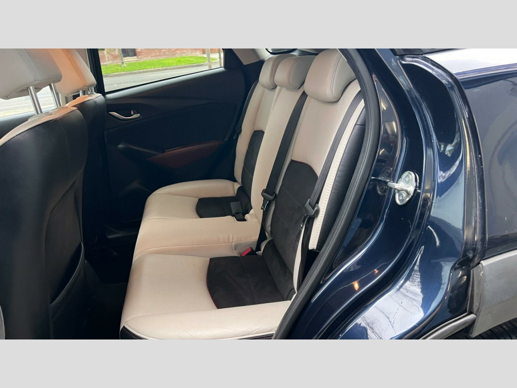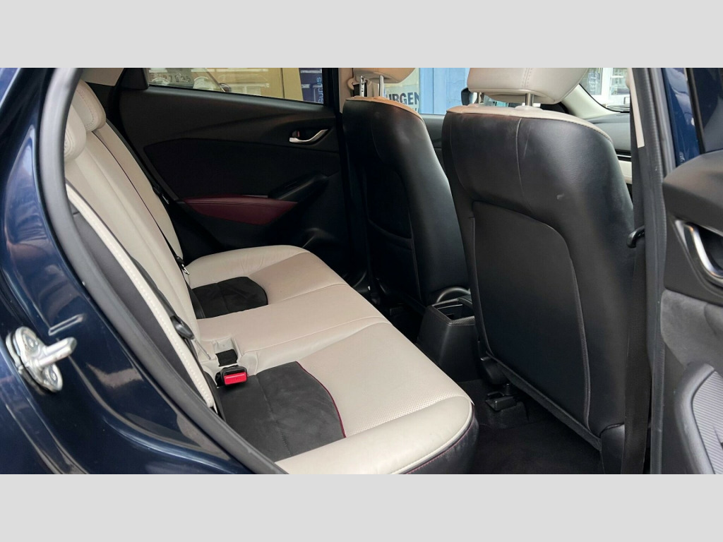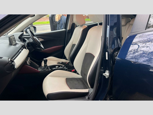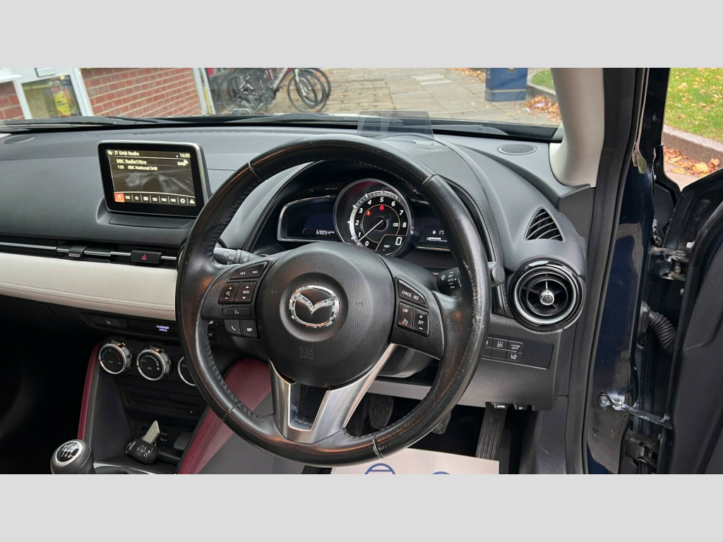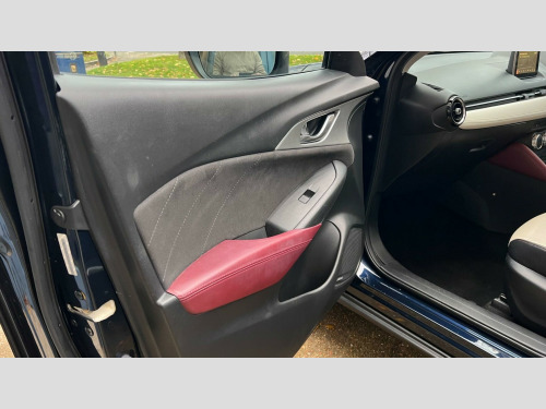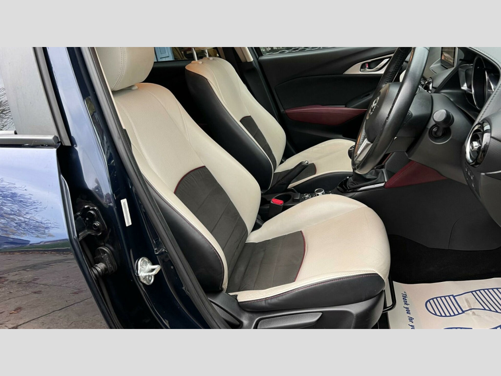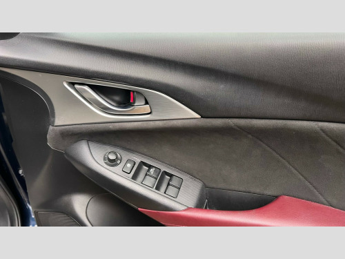 This 2016 Mazda CX-3 SKYACTIV-G Sport Nav offers an exceptional blend of style and efficiency, making it a standout choice. This particular model boasts a sophisticated Leather Lux Suede interior in Stone Black with striking Red Piping, complemented by automatic climate control for your comfort. Enjoy your journeys with the premium BOSE sound system and the convenience of dusk sensing automatic headlights. The front seats are heated, ensuring a pleasant experience in cooler weather.With a responsive 2.0 litre petrol engine, this CX-3 achieves 0-62mph in just 9.0 seconds, demonstrating its spirited performance. Its Euro 6 emission class and low CO2 emissions are indicative of its modern engineering, contributing to an impressive highlight fuel economy of 48 mpg. Furthermore, its low insurance group rating means that running costs are kept to a minimum, making this Mazda CX-3 a sensible and enjoyable option for everyday driving., v power socket - front, 18in alloy wheels - gun metallic diamond-cut, 7in colour touch screen display, aux socket, adjustable speed limiter, aha app and stitcher app integration, air conditioning - automatic climate control, air vents - piano black surround with dark red inner ring, airbags - curtain front, airbags - curtain rear, airbags - driver, airbags - front passenger, airbags - front passenger deactivation system, anti lock braking system - 4w-abs, bluetooth audio streaming, bluetooth hands free system, courtesy light with integral spotlights, cruise control, cupholder - centre console x2, dab radio, dsc - dynamic stability control, dashboard panel - black - soft-touch with stitching, deadlocking, digital speedometer, door mirrors - electrically adjustable-heated-folding-turning signal, door pockets - front, door pockets - rear, dusk sensing automatic headlights, eba - emergency brake assist, ebd - electronic brakeforce distribution, electric windows - front and rear with one touch auto up and down on drivers side, emergency stop signalling system - ess, engine start-stop button, exhaust tailpipes - twin, front fog lights - led, front knee pads - dark red - soft-touch with stitching, front side airbags, gear knob - leather-wrapped with satin silver surround, gear shift indicator, glovebox illumination, grab handles - front passenger, grab handles - two rear with coat hooks, handbrake - leather wrapped, head up display, headlights - adaptive front lighting system, headlights - automatic levelling, headlights - coming-leaving home, headlights - led, hill hold assist, isofix child seat anchorage for outer rear seats, immobiliser, inner door handles - satin silver, led daytime running lights, lane departure warning system, luggage compartment - flexible floorboard for adjustable floor height or secure separate storage space, luggage compartment - light, luggage compartment - tonneau cover, mazda advanced impact distribution and absorption system - maidas, multimedia commander, overhead console with sunglassess holder, pollen filter, power assisted steering - electronic, premium bose sound system, privacy glass - rear and rear side windows, radiator grille - chrome-accent, radio-cd, rain-sensing front wipers, rear lights - led, rear parking sensors, rear view mirror - manual - day and night mode, reversing camera, srs - supplementary restraint system, satellite navigation - european mapping with 3-years map updates, satellite navigation system, seatback pocket - rear of front passenger seat, seatbelt reminder - front with audible warning, seats - 60-40 split folding rear, seats - drivers manual slide-recline and height adjustment, seats - front heated, seats - front passenger manual slide and recline adjustment, shark fin antenna, side door trim - dark red - soft-touch with black leatherette inserts, side sill trim - chrome accent, smart city brake support, smart keyless entry, soft-touch meter hood - black, speakers x7, spoiler - rear roof, steering wheel - leather-wrapped with satin silver bezel, steering wheel - mounted audio and bluetooth controls, steering wheel - telescopic and tilt adjust, sunvisors - driver ticket holder, sunvisors - driver and front passenger with vanity mirror, tcs - traction control system, thatcham catergory 1 alarm, three height adjustable rear head restraints, trip computer, tyre pressure monitoring system, tyre repair kit, usb - ipod connectivity, voice control for phone, leather-lux suede - stone-black with red piping