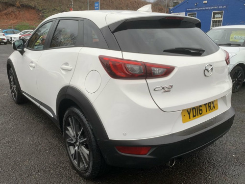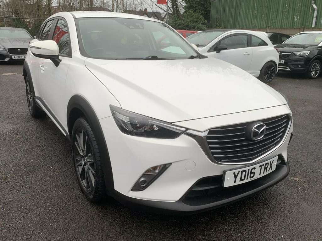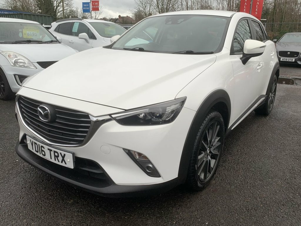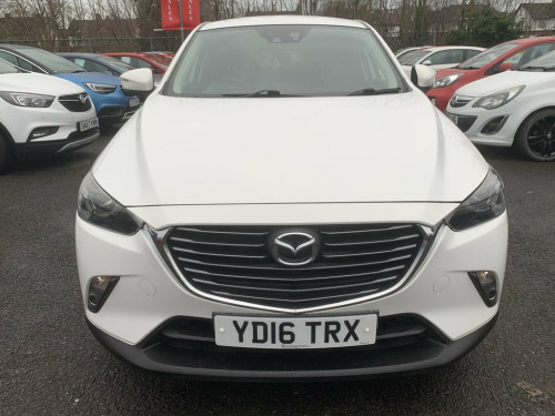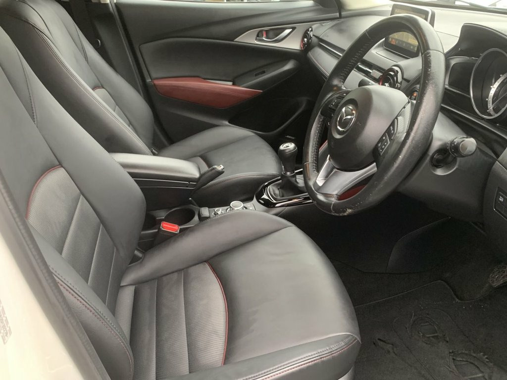 Mazda CX-3 Skyactiv G-Sport Nav in white, has service history with 5 services. Comes with sat navigation, 18" alloy wheels, air conditioning, electric windows in the front and rear, electric folding mirrors, keyless start and entry, rear parking sensors, reversing camera, cruise control, full leather trim, heated seats, auto lights and wipers, rear privacy glass, lane assist, its a 6 speed, has bluetooth, voice command, touchscreen dab radio, aux port, usb, multifunction steering wheel, 2 remote keys, Heads up display and Bose speakers. THE CAR WILL HAVE A SERVICE AND 12 MONTHS MOT / PART EXCHANGE IS ALWAYS WELCOME / FREE 12 MONTH AA ROADSIDE RECOVERY INCLUDED / FINANCE IS AVAILABLE VIA OUR WEBSITE LINK / THE CAR HAS BEEN HPI AND MILEAGE CHECKED, ALL OK / WE ARE A FAMILY RUN BUSINESS AND HAVE BEEN TRADING FOR OVER 30 YEARS, WE OFFER DELIVERY IN MAINLAND UK (Please ask for details), WE ARE HERE TO HELP YOU! PLEASE CONTACT US WITH ANY QUESTIONS 12V Power Socket - Front, 18in Alloy Wheels - Gun Metallic Diamond, 7in Colour Touch Screen Display, Adjustable Speed Limiter, Aha App and Stitcher App Integration, Air Conditioning - Automatic Climate Con, Air Vents - Piano Black Surround with Da, Airbags - Curtain Front, Airbags - Curtain Rear, Airbags - Driver, Airbags - Front Passenger, Airbags - Front Passenger Deactivation S, Anti Lock Braking System - 4W-ABS, Arctic White, AUX Socket, Bluetooth Audio Streaming, Bluetooth Hands Free System, Courtesy Light with Integral Spotlights, Cruise Control, Cupholder - Centre Console x2, DAB Radio, Dashboard Panel - Black - Soft-touch wit, Deadlocking, Digital Speedometer, Door Mirrors - Electric