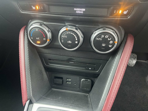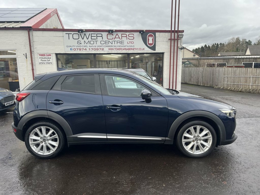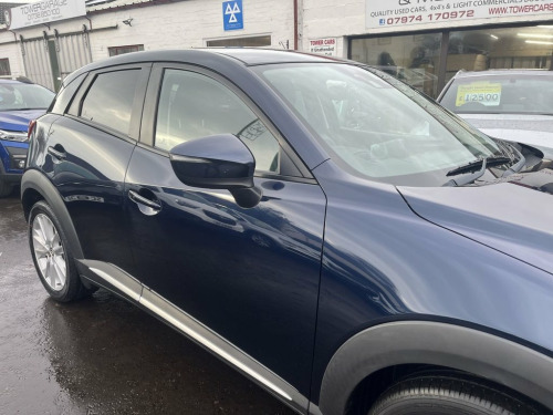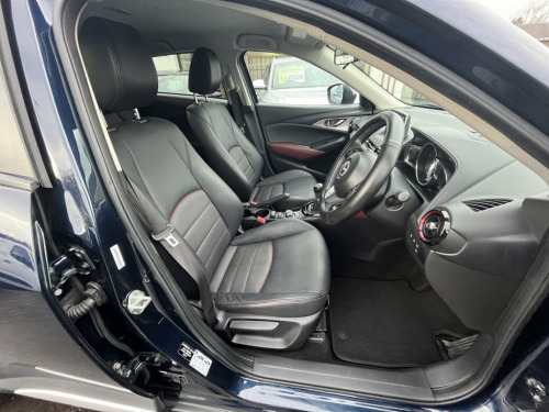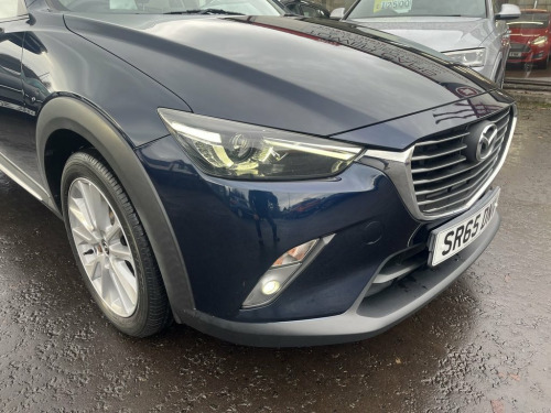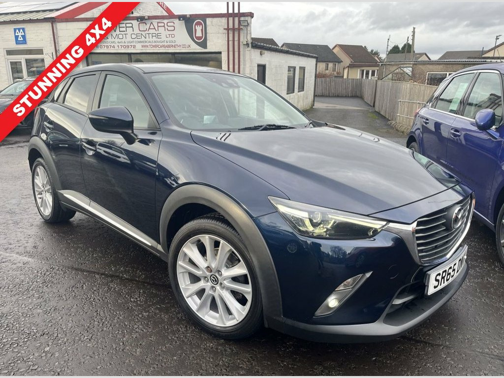 Stunning 4x4 CX-3 Sport in Metallic Deep chystal blue with Black leather and Heated front seats,Great spec and economy with average 44 Mpg and £215 road tax,Just been serviced by ourselves including 2 new tyres fitted,Comes with 2 remote keys and 12 Mths Mot,P/X and finance available,Boasting a full service history and having had only two owners, this 2015 Mazda CX-3 SKYACTIV-G Sport Nav is a well cared for example. This four wheel drive model features a 2.0 litre petrol engine and meets Euro 6 emissions standards. Inside, you'll find automatic climate control, Heads up Display,a premium BOSE sound system, and a Bluetooth hands free system for your convenience. For added peace of mind, it includes a Safety Pack with Blind Spot Assistance and rear parking sensors. Safety Pack, Leatherette-Cloth - Black with Red Pipin, Deep Crystal Blue Mica, 12V Power Socket - Front, 18in Alloy Wheels , 7in Colour Touch Screen Display, AUX Socket, Adjustable Speed Limiter, Aha App and Stitcher App Integration, Air Conditioning - Automatic Climate Con, Air Vents - Piano Black Surround with Da, Airbags - Curtain Front, Airbags - Curtain Rear, Airbags - Driver, Airbags - Front Passenger, Airbags - Front Passenger Deactivation S, Anti Lock Braking System - 4W-ABS, Bluetooth Audio Streaming, Bluetooth Hands Free System, Courtesy Light with Integral Spotlights, Cruise Control, Cupholder - Centre Console x2, DAB Radio, DSC - Dynamic Stability Control, Dashboard Panel - Black