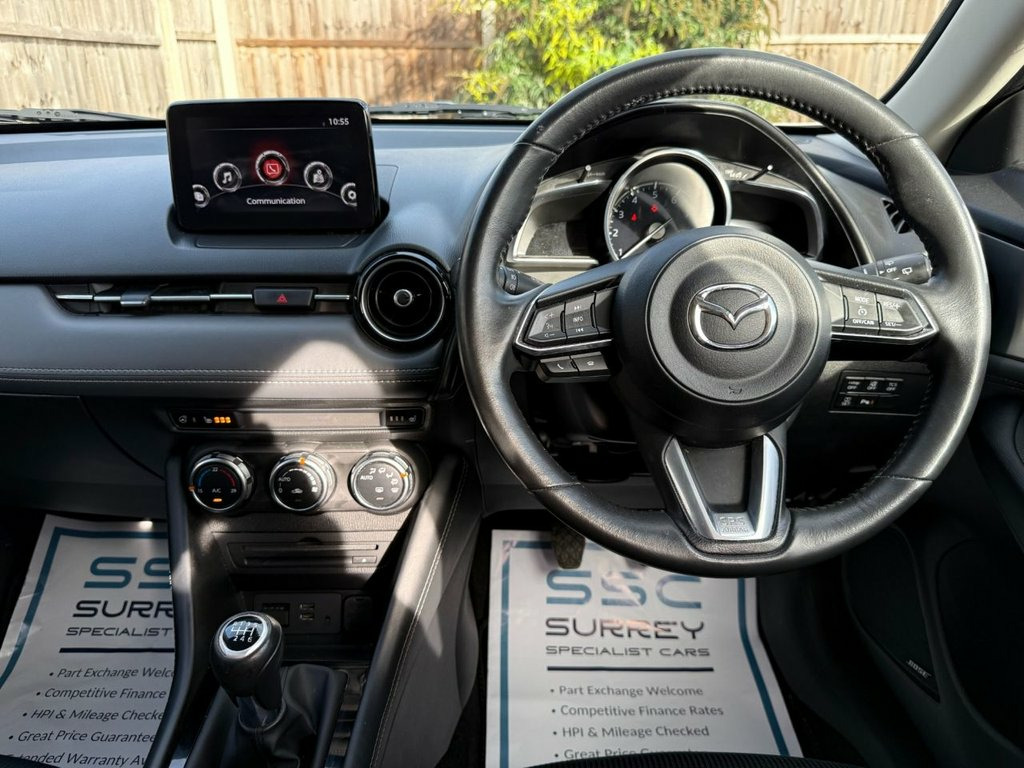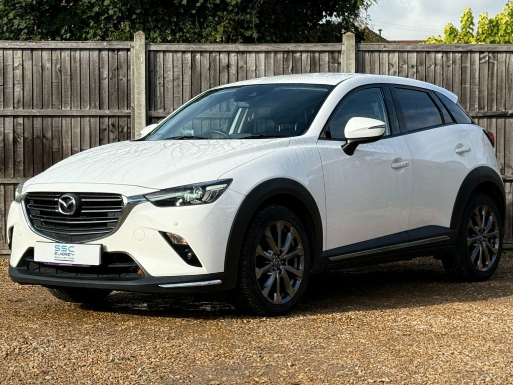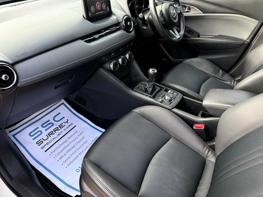 Surrey Specialist Cars are proud to present our lovely Mazda CX-3 Sport. This amazing car comes with Full Service History, finished in stunning metallic white with half leather seats. The car will come with Long MOT so it will be ready to go. The 2L Petrol engine offers superb economy at over 56 MPG on combined cycle. Features Include Multifunction Steering Wheel, Trip Computer, Satellite Navigation,  Parking Camera, Heated Seats,  Upgraded Sound System, Cruise Control, Speed Limiter, Stereo/Phone Control, FM Radio, Bluetooth Audio, two USB Inputs, Parking Sensors, Dual Zone Climate Control, Heated Rear and Front Screen, CD Player, 6 Speed Manual Gearbox, Electronic Hand Brake, 18 Inch Alloy Wheels and two Remote Control Keys to name a few.  18in Alloy Wheels - Silver, 7in Colour Touch Screen Display, ABS - Anti Lock Braking System, AM-FM DAB Radio - Single CD-MP3 Premium , AUX and 2 USB Inputs, Advanced Smart City Brake Support, Aha App and Stitcher App Integration, Air Conditioning - Automatic Climate Con, Airbags - Front Passenger Deactivation S, Audio Transfer from Bluetooth Devices, Auto Dimming Rear View Mirror, Centre Armrest - 2x Cup Holders, Colour Active Driving Display - Colour H, Courtesy Light with Integral Spotlights, Cruise Control with Manual Speed Adjustm, Door Mirrors - Electrically Adjustable -, Door Pockets - Driver - Front Passenger , Dual Exhaust System, Dual Front Airbags, Dusk Sensing Automatic Headlights