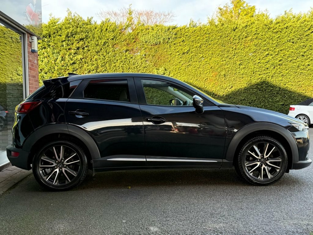 This 2015 Mazda CX-3 SKYACTIV-G Sport Nav presents a compelling proposition with its Full main dealer service history, remarkably low mileage of just 56,617 miles and a clear vehicle history check, having been owned by only two careful keepers. This stylish compact SUV boasts a responsive 2.0 litre petrol engine, meeting Euro 6 emissions standards, and comes equipped with the desirable Sport Nav trim. Convenience is key with Smart Keyless Entry, automatic climate control, and a helpful reversing camera complemented by rear parking sensors. Inside, you'll find the comfort of front heated seats, making every journey a pleasure. The highlights of this Mazda CX-3 demonstrate its superior offering compared to other vehicles in its class. With an impressive fuel economy of 48 miles per gallon, it offers excellent running costs. Its low CO2 emissions and low insurance group further contribute to its affordability. For those seeking a blend of performance and efficiency, the 0-60mph acceleration in just 9.0 seconds provides a satisfying driving experience. This CX-3 is a well maintained and economical choice for any driver. Leather-Lux Suede - Stone-Black with Red, Jet Black Mica, 12V Power Socket - Front, 18in Alloy Wheels - Gun Metallic Diamond, 7in Colour Touch Screen Display, AUX Socket, Adjustable Speed Limiter, Aha App and Stitcher App Integration, Air Conditioning - Automatic Climate Con, Air Vents - Piano Black Surround with Da, Airbags - Curtain Front, Airbags - Curtain Rear, Airbags - Driver, Airbags - Front Passenger, Airbags - Front Passenger Deactivation S, Anti Lock Braking System - 4W-ABS, Bluetooth Audio Streaming, Bluetooth Hands Free System, Courtesy Light with Integral Spotlights, Cruise Control, Cupholder - Centre Console x2, DAB Radio, DSC - Dynamic Stability Control, Dashboard Panel - Blac