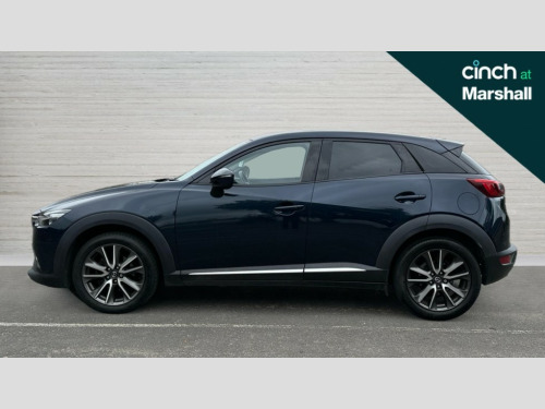 Mazda CX-3 2.0 Sport Nav 5dr Auto 7" touchscreen with multimedia commander and Aha and Stitcher app, Adjustable speed limiter, Bluetooth connectivity with voice control, Cruise control, Drive mode selector, Electric power steering, Head up Display, Lane departure warning system, Navigation system, Push button starter, Rear parking sensor, Reversing camera, Trip computer, Bluetooth audio streaming, Bose Premium Audio system+7 speakers, DAB Digital radio, Radio/CD, Steering wheel mounted audio controls, USB/iPod/auxiliary input connections, Adaptive front lighting system, Automatic headlamp levelling, Body colour bumpers, Body colour door handles, Body colour electric folding/heated door mirrors, Chrome accent front grille, Chrome side moulding trim, Coming/leaving home lighting function, Dual exhaust pipes, Dusk sensitive headlamps, Electric front windows + drivers one touch, Electric rear windows, Front and rear intermittent wipers, LED front fog lights, LED headlight and daytime running lights, LED rear lights, Rain sensing front wipers, Rear privacy glass, Rear roof spoiler, Rear wiper, 12V power outlet, 60/40 split folding rear seat, Boot light, Climate control, Cupholders in centre console, Driver/passenger sunvisors and vanity mirrors, Front and rear door pockets, Gearshift paddles, Heated front seats, Height adjustable drivers seat, Height adjustable front/rear head restraints, Illuminated glovebox with lock, Interior courtesy light, Isofix system on outer rear seats, Leather steering wheel/gearknob/handbrake grip, Passenger seat back pocket, Rear grab handles with coathooks, Satin silver interior door handles, Sunglasses holder, Tilt/telescopic adjustable steering wheel, Tonneau cover, Variable boot floor, 3 point seatbelts on all seats, ABS, ABS + EBD + EBA, DSTC-Dynamic Stability and Traction Control, Dual front airbags, Front and rear curtain airbags, Front and rear outer seat belt pre-tensioners, Front side airbags, Height adjustable front seatbelts, Hill hold assist, Passenger airbag deactivate switch, Seatbelt reminder front and rear, Smart City Brake Support - SCBS, Tyre pressure monitoring system, Deadlock, Remote central locking, Smart keyless entry, Thatcham category 1 alarm + immobiliser, 18" Gunmetal alloy wheels, Tyre repair kit
