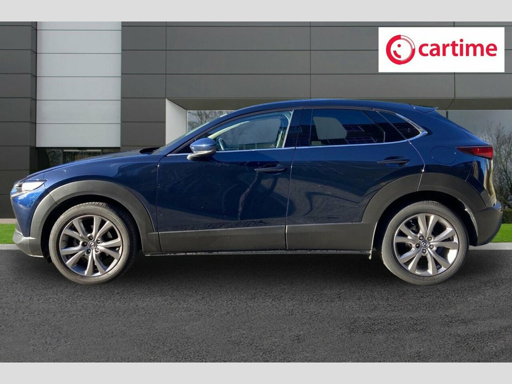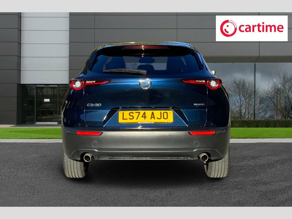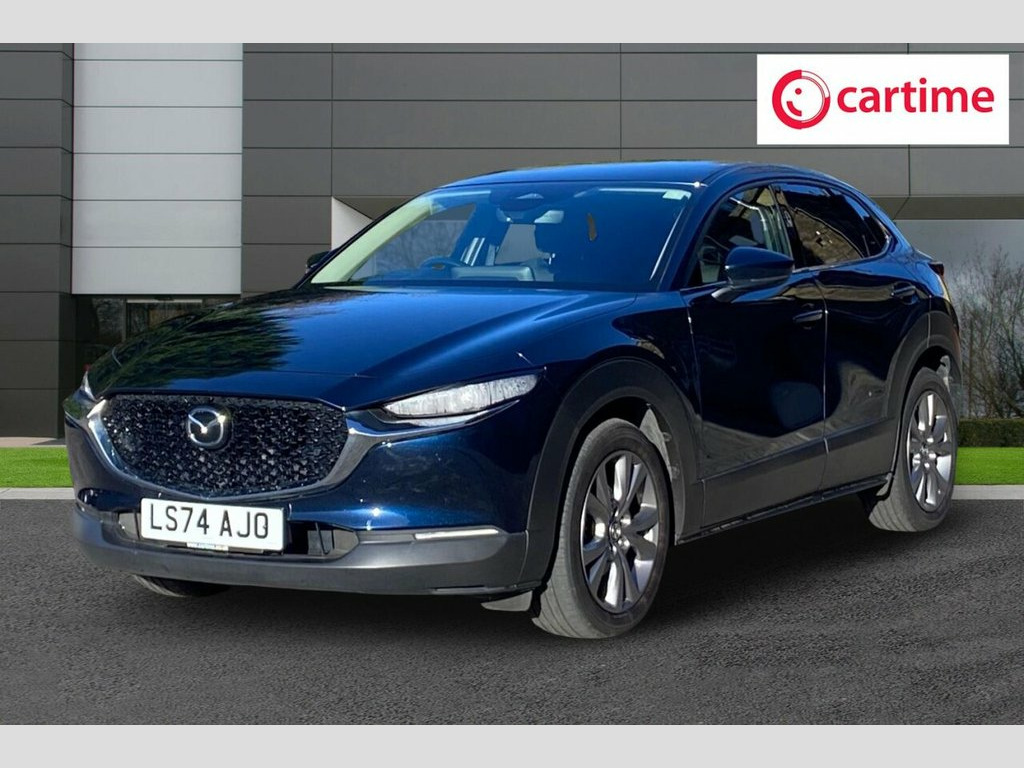 This 2024 Mazda CX-30 e-SKYACTIV G Exclusive-Line is a superb example, boasting a clear vehicle history and having had only one owner from new. This stylish SUV features a responsive 2.0L petrol engine, meeting Euro 6 emissions standards. Inside, you'll find a comfortable cabin equipped with dual zone climate controlled air conditioning, complete with rear air vents for passenger comfort. Connectivity is seamless with wireless Apple CarPlay and wired Android Auto, while the LED headlights with auto levelling ensure optimal visibility. For added convenience and safety, this CX-30 includes a reversing camera and a blind spot monitoring system with rear cross traffic alert. The CX-30 Exclusive-Line offers excellent value, highlighted by its impressive fuel economy of 48 mpg, which is better than many similar vehicles. Its low CO2 emissions also contribute to its appeal, making it a more environmentally conscious choice. Furthermore, its low insurance group rating means that running costs are kept to a minimum, further enhancing its attractiveness as a practical and economical option for any driver. 10.25in Colour Centre Display, 12V Electrical Power Outlet, 18in Alloy Wheels - Silver Metallic, 2 USB Charging Ports, ABS - Anti Lock Braking System, Adjustable Speed Limiter, Airbags - Curtain Front and Rear, Airbags - Front Passenger Deactivation S, AM-FM-DAB Radio - Featuring 12 Bose Spea, Auto Dimming Drivers Door Mirror, B-Pillar and C-Pillar Garnish - Piano Bl, Blind Spot Monitoring with Rear Cross Tr, Body Coloured Bumpers, Body Coloured Electrically-Adjustable - , Chrome Interior Trim Accents - Steering , Connected Services, Deep Crystal Blue, Door Panel Trim - Dark Cloth Insert, Door Pockets - Driver - Front Passenger , Driver and Front Passenger Airbags, Driver Attention Alert - D