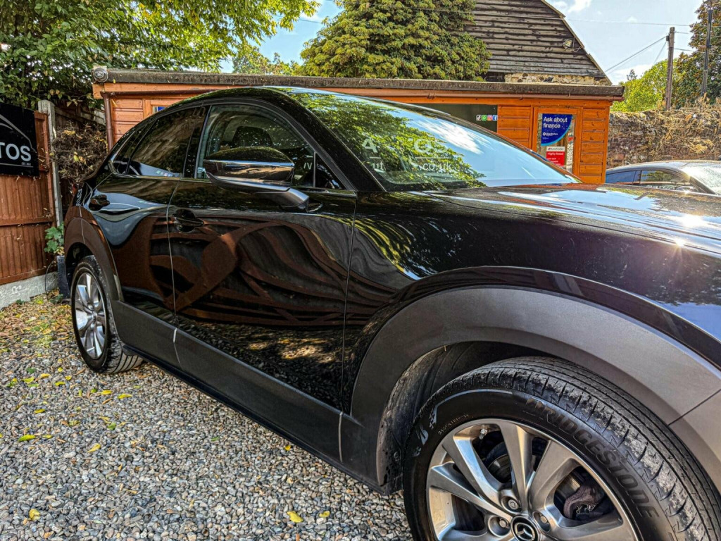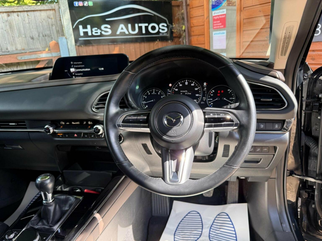 We Are Pleased To Offer This Excellent Example Of The Mazda CX-30 Finished In Black With 18 Alloys, This Mazda Comes With Excellent Spec Including Heads Up Display, Carplay, Leather Seats With Front Heating, Privacy Glass, DAB, Nav, Bluetooth, Bose Speakers, Media Connection, Cruise Control, Front and Rear Parking Sensors, Reversing Cam and Multifunction Steering Wheel, Service History at The Following Intervals - The First Service At 14k and Last Service at 21k Sep 2025, MOT Expiry Aug 2026. Our Promise Is To Offer: , Flexible Finance Options: Choose from PCP and HP plans available right on our website, backed by a no-obligation eligibility check. We also work with major banks and third‑party finance providers to secure the best financing solutions tailored for you. Quality Assured Vehicles: Every car is HPI clear, meticulously selected, thoroughly tested, and prepared to the highest standards. Part Exchanges: We welcome them, but not all vehicles can be taken in. Please note that our services are available by appointment only.