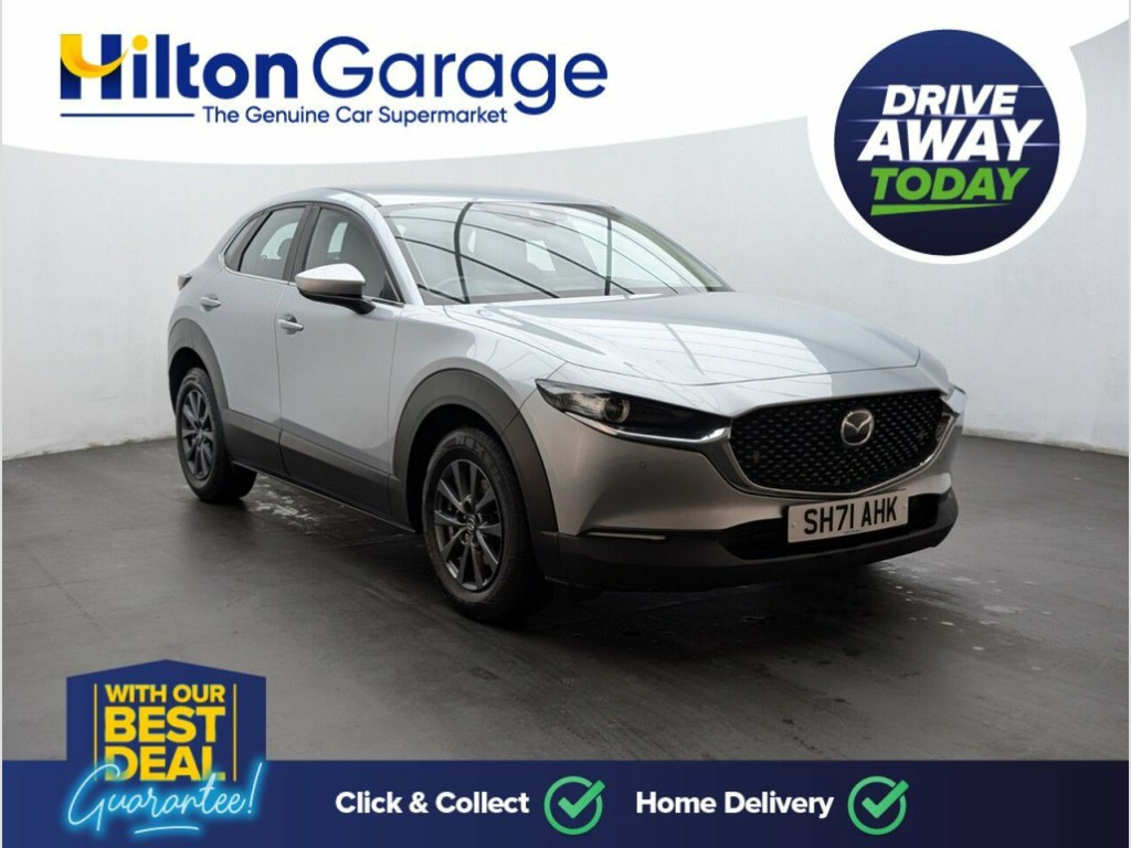 16" alloys, Apple CarPlay, Reversing camera, Lane keep assist and Navigation. Last serviced on the 20.03.2024 at 15742 miles. Stylish, efficient, and versatile — this Mazda CX-30 2.0 e-SKYACTIV G MHEV SE-L Lux combines premium SUV design with advanced mild-hybrid technology for a smooth and economical drive. Powered by a 122 PS 2.0-litre petrol engine with Start/Stop (s/s) and a manual gearbox, it delivers responsive performance, low emissions, and excellent fuel economy. The SE-L Lux trim adds premium interior features, modern technology, and comfort, making this CX-30 ideal for city driving, family use, or longer journeys. 12V Electrical Power Outlet, 16in Alloy Wheels - Grey, 2 USB Charging Ports, 8.8in TFT Colour Centre Display, ABS - Anti Lock Braking System, Airbags - Curtain Front and Rear, Airbags - Front Passenger Deactivation S, AM-FM-DAB Radio with 8 Speakers, Apple CarPlay and Android Auto, Auto Dimming Drivers Door Mirror, Auto Dimming Rear View Mirror, B-Pillar and C-Pillar Garnish - Satin Bl, Blind Spot Monitoring with Rear Cross Tr, Body Coloured Electrically-Adjustable - , Connected Services, Door Panel Trim - Dark Cloth Insert, Door Pockets - Driver - Front Passenger , Driver and Front Passenger Airbags, Driver Attention Alert - DAA, Drivers Knee Airbags, DSC - Dynamic Stability Control, Dual Z