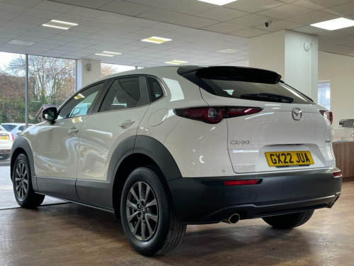 This 2022 Mazda CX-30 e-SKYACTIV G SE-L Lux is a superb example, having been owned by just one careful keeper from new with a clear vehicle history check. This stylish compact SUV boasts a responsive 2.0L petrol engine and meets Euro 6 emissions standards, making it an environmentally conscious choice. The SE-L Lux trim level ensures a comfortable and well equipped interior, designed for everyday practicality and enjoyment. With an impressive fuel economy of 48 miles per gallon, this CX-30 offers excellent value for money, especially when considering its low CO2 emissions and low insurance group rating. These factors combined mean that running costs are kept to a minimum, making it a more economical and affordable option compared to many other vehicles in its class. Arctic White, 12V Electrical Power Outlet, 16in Alloy Wheels - Grey, 2 USB Charging Ports, 8.8in TFT Colour Centre Display, ABS - Anti Lock Braking System, AM-FM-DAB Radio with 8 Speakers, Airbags - Curtain Front and Rear, Airbags - Front Passenger Deactivation S, Apple CarPlay and Android Auto, Auto Dimming Drivers Door Mirror, Auto Dimming Rear View Mirror, B-Pillar and C-Pillar Garnish - Satin Bl, Blind Spot Monitoring with Rear Cross Tr, Body Coloured Electrically-Adjustable - , Connected Services, DSC - Dynamic Stability Control, Door Panel Trim - Dark Cloth Insert, Door Pockets - Driver - Front Passenger , Driver Attention Alert - DAA, Driver and Front Passenger Airbags, Drivers Knee A