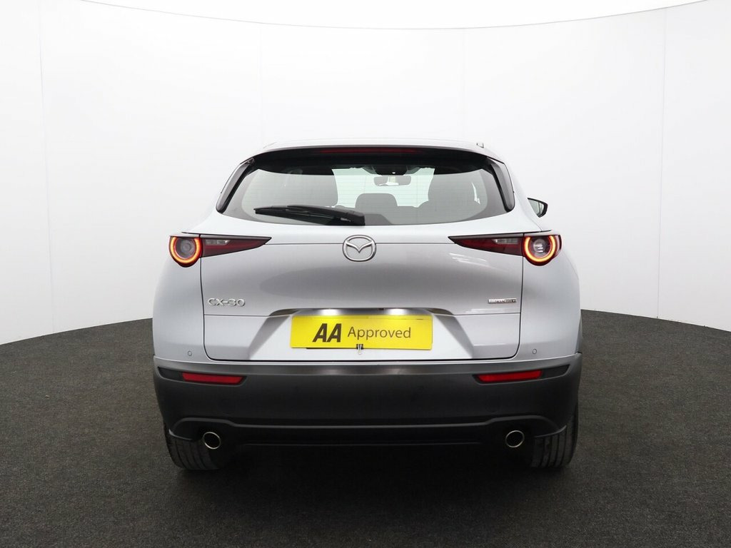 With only one owner and a remarkably low mileage of 24712 miles for its 2022 registration, this Mazda CX-30 e-SKYACTIV G SE-L Lux presents a superb example of a well cared for vehicle. This Euro 6 compliant model boasts a 2.0L petrol engine and comes with a clear vehicle history check, offering peace of mind. Inside, you'll find comfort and convenience with heated front seats offering three stage settings, alongside a reversing camera and front and rear parking sensors to assist with manoeuvring. The SE-L Lux trim also includes advanced safety features such as blind spot monitoring with rear cross traffic alert, and smart keyless entry for effortless access. This Mazda CX-30 stands out with its impressive fuel economy of 48 mpg and low CO2 emissions, indicating it is more economical to run and better for the environment than many similar vehicles. Furthermore, its placement in a low insurance group means that running costs are kept to a minimum, making this CX-30 an attractive choice for a wide range of drivers seeking a stylish, practical, and cost effective compact SUV. 12V Electrical Power Outlet, 16in Alloy Wheels - Grey, 2 USB Charging Ports, 8.8in TFT Colour Centre Display, ABS - Anti Lock Braking System, Airbags - Curtain Front and Rear, Airbags - Front Passenger Deactivation S, AM-FM-DAB Radio with 8 Speakers, Apple CarPlay and Android Auto, Auto Dimming Drivers Door Mirror, Auto Dimming Rear View Mirror, B-Pillar and C-Pillar Garnish - Satin Bl, Blind Spot Monitoring with Rear Cross Tr, Body Coloured Electrically-Adjustable - , Connected Services, Door Panel Trim - Dark Cloth Insert, Door Pockets - Driver - Front Passenger , Driver and Front Passenger Airbags, Driver Attention Alert - DAA, Drivers Knee Airbags, DSC - Dynamic Stability Control, Dual Z