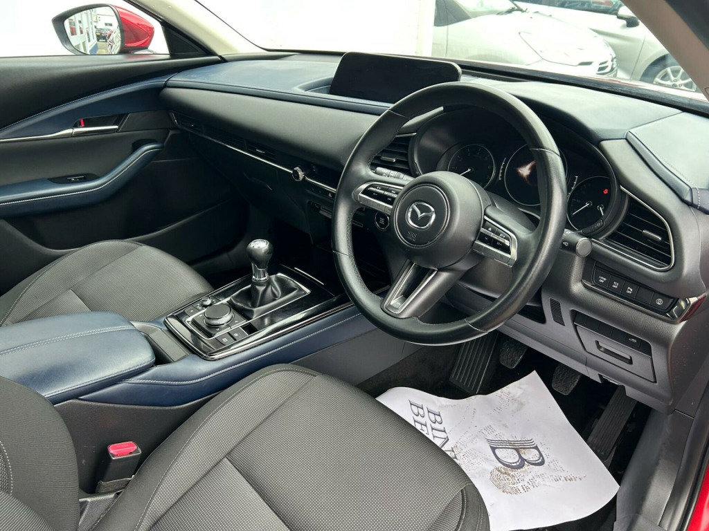 This 2020 Mazda CX-30 SKYACTIV-X Sport Lux boasts a full service history and a clear vehicle history check, ensuring peace of mind for its next owner. This stylish 2.0L petrol model, registered in 2020, comes with a 6 month warranty and a 12 month MOT provided on purchase. Its Sport Lux trim level offers a host of desirable features, including Adaptive LED headlights for enhanced visibility, and seamless integration with Apple CarPlay and Android Auto for effortless connectivity. Safety is paramount with Blind Spot Monitoring and Rear Cross Traffic Alert, complemented by front and rear parking sensors to make manoeuvring simple. Inside, you'll find the comfort of heated front seats with 3 stage settings.The Mazda CX-30 SKYcdot-X Sport Lux stands out with its impressive fuel economy of 48 mpg, demonstrating its efficiency compared to other vehicles. Its Euro 6 emission class and low CO2 emissions further highlight its environmentally conscious design. This model also benefits from a low insurance group, making it an economical choice to own and run. For those seeking performance, it achieves 0-62mph in a brisk 8.5 seconds, offering a responsive driving experience. The last service was completed at 50,000 miles, adding to its well maintained provenance.RESERVE ONLINE TODAY + ULEZ COMPLIANT +0% DEPOSIT FINANCE AVAILABLE + PLEASE MAKE YOUR APPOINTMENT TO VIEW TODAY + Our family owned business was founded in 1992 and our aim is to offer a friendly and efficient service and to make our customer's buying experience as easy and enjoyable as possible. Our experienced staff will offer advice, if required, to help ensure our customers find the most suitable car to match their motoring needs. Part Exchange welcome. Although every effort is made to ensure the accuracy of these details please contact the dealer to verify any particular details prior to making a purchase. + All our cars are HPi checked to offer our customers peace of mind and therefore ensuring there is no outstanding finance or insurance write offs listed against them+ *Finance subject to status+ Third. 18in Alloy Wheels - Bright Silver Metallic, 2 USB Charging Ports, 3x 3-Point Rear Seat Belts, 8.8in TFT Colour Centre Display with Mazda Connect Infotainment, ABS - Anti Lock Braking System, AM-FM-DAB Radio - Single CD-MP3 with 8 Speakers, Airbags - Curtain Front and Rear, Airbags - Front Passenger Deactivation System, Apple CarPlay and Android Auto, Auto Dimming Drivers Door Mirror, B-Pillar and C-Pillar Garnish - Gloss Black, Blind Spot Monitoring with Rear Cross Traffic Alert, Chrome Steering Wheel Centre Bezel, DSC - Dynamic Stability Control, Door Mirrors - Electrically Adjustable - Heated - Auto Power Folding with Integrated Indicator Lights, Door Pockets - Driver - Front Passenger and Rear, Driver Attention Alert - DAA, Driver and Front Passenger Airbags, Drivers Knee Airbags, Dual Zone Climate-Controlled Air-Conditioning with Rear Air Vents, Electric Windows - Front and Rear with One-Touch Auto Down - Up, Electrical Power Outlet, Electronic Parking Brake with Auto-Disengage Function - Auto-Hold Function, Emergency Stop Signalling System - ESS, Emergency Tyre Repair Kit, Engine Start-Stop Button, Frameless Auto Dimming Rear View Mirror, Front Armrest, Front Grille - Black Gloss Finish, Front Side Airbags, Front and Rear Parking Sensors, G-Vectoring Control Plus - GVC Plus, Gear Shift - Leather-Wrapped, Gear Shift Indicator, Glovebox Illumination, Grab Handles - Front Passenger and Two Rear with Coat Hooks, Head Restraints - Front and Rear x3, Headlights - Adaptive LED, Headlights - Coming-Leaving Home, Headlights - Dusk-Sensing Lights, Heated Front Seats with 3-Stage Settings, Hill Launch Assist - HLA, ISOFIX Child Seat Anchorage for Outer Rear Seats, Instrument Panel 7in TFT Colour Driver Display, Integrated Bluetooth System, Integrated Mazda Navigation System with 5-Years Free European Map Updates, Intelligent Speed Assist, Kodo Turn Signal, LED Interior Lighting - Front and Rear, LED Signature Daytime Running Lights, Lane Keep Assist with Lane Departure Warning System, Leather-Wrapped Steering Wheel with Telescopic and Tilt Adjustment, Luggage Compartment - Light, Mazda Radar Cruise Control, Multimedia Commander, Power Assisted Steering, Power Liftgate, Privacy Glass - Rear and Rear Side Windows, Rain-Sensing Front Wipers with Adjustable Speed and Intermittent Wipe, Rear Fog Light, Rear Roof Spoiler - Gloss Black, Rear Seats - Folding Centre Armrest Equipped with Two Cup Holders, Rear Wiper, Remote Central Locking with Deadlocking and Automatic Door Lock when Driving, Reversing Camera, Roof Mounted Sunglasses Holder, Seatbelt Reminder Audible Warning, Seatbelts - Front - 3 Point - ELR x 2 with Pre-Tensioners, Seats - 60-40 Split Folding Rear, Seats - Drivers Manual Slide-Recline Height and Tilt Adjustment, Seats - Front Passenger Manual Slide - Recline and Height Adjustment, Signature LED Rear Combination Lights with LED Rear Turn Lights, Smart City Brake Support - Front Only, Smart Keyless Entry, Steering Wheel Mounted Audio and Bluetooth Controls, Storage Spaces - Front Centre Console with Lid and Two Cupholders, Sun Visors - Drivers and Front Passengers with Covered Vanity Mirror and Ticket Holder, Sunroof - Power Tilt and Slide, TCS - Traction Control System, Thatcham Accredited Alarm and Immobiliser, Trip Computer, Tyre Pressure Monitoring System, Windscreen Projected Colour Active Driving Display - HUD with Traffic Sign Recognition, e-Call with GPS, Premium Cloth - Dark Grey with Navy Blue Interior Accent. Full service history