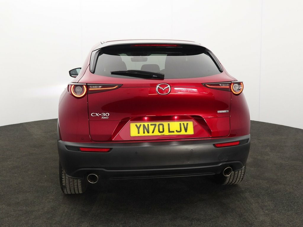 This 2020 Mazda CX-30 SKYACTIV-X Sport Lux boasts a clear vehicle history, offering peace of mind for its next owner. This stylish SUV features a 2.0L petrol engine, a sophisticated Four Wheel Drive system, and meets Euro 6 emissions standards. Inside, you'll find a Windscreen Projected Colour Active Driving Display with Traffic Sign Recognition, an Integrated Bluetooth System for seamless connectivity, and a power tilt and slide sunroof for an open cabin feel. Automatic dusk sensing headlights and a reversing camera further enhance convenience and safety. The CX-30 SKYACTIV-X Sport Lux is designed to impress, with a brisk 0-60mph acceleration time of just 9.0 seconds, demonstrating its responsive performance. Its Euro 6 compliance and low insurance group highlight its efficiency and cost effectiveness compared to similar vehicles. With a long MOT, this Mazda CX-30 is ready for your next adventure. 2 USB Charging Ports, 8.8in TFT Colour Centre Display with Maz, AM-FM-DAB Radio - Single CD-MP3 with 8 S, Apple CarPlay and Android Auto, e-Call with GPS, Electrical Power Outlet, Integrated Bluetooth System, 18in Alloy Wheels - Bright Silver Metall, Auto Dimming Drivers Door Mirror, B-Pillar and C-Pillar Garnish - Gloss Bl, Door Mirrors - Electrically Adjustable -, Electric Windows - Front and Rear with O, Front Grille - Black Gloss Finish, Kodo Turn Signal, Privacy Glass - Rear and Rear Side Windo, Rear Roof Spoiler - Gloss Black, Sunroof - Power Tilt and Slide, Chrome Steering Wheel Centre Bezel, Door Pockets - Driver - Front Passenger , Dual Zone Climate-Controlled Air-Conditi, Engine St