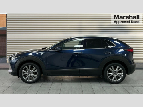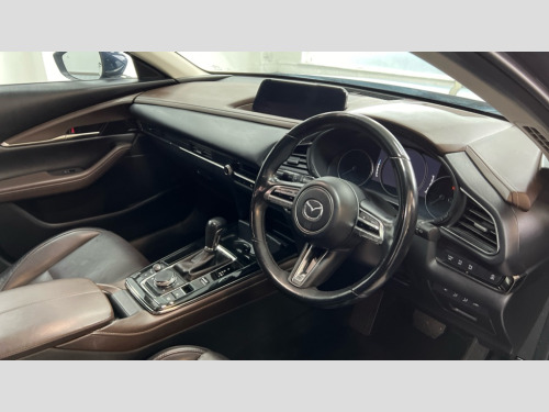 Mazda Cx-30 2.0 e-Skyactiv G MHEV GT Sport 5dr Auto 7" TFT Colour driver instrument panel display, 8.8" Colour centre touch screen display with Mazda Connect infotainment, Adaptive cruise control (Mazda radar cruise control) features stop and go, Apple car play/Android Auto, Blind spot monitoring with rear cross traffic alert, Drive mode selector, Driver attention alert system, E-call with GPS, Emergency stop signalling system, Engine start/stop button, Front and rear parking sensors, Integrated bluetooth, Integrated Mazda navigation system, Intelligent speed assist, Lane keep assist system (LAS) with Lane departure warning system (LDWS), Mazda connected services, PAS, Power lift gate, Reversing camera, Service indicator, Tailgate, Traffic sign recognition, Trip computer, Windscreen projected colour active driving display (HUD), Cylinder Deactivation, i-stop, 2 USB charging ports in front inner central armrest, AM/FM and DAB radio, Bose surround sound system with 12 Speaker, Bose center point, Bass match and audio pilot technology, Multimedia Commander including separate volume dial, Steering wheel mounted audio/bluetooth controls, Auto dimming driver's door mirror, Auto headlight levelling, B-pillar and C-pillar garnishes in piano black finish, Body coloured, electrically adjustable, heated auto power folding door mirrors with integrated indicators, Chrome finish signature wing in front grille, Coming/leaving home lighting function, Door mirrors with adjustable memory and tilt-down function when reversing, Dual chrome exhaust, Dusk sensing headlights, Electric front/rear windows with one touch auto up/down, Frameless auto dimming interior rear view mirror, Front kodo turn signal, Gloss black front grille, Gloss black rear roof spoiler, High beam assist, LED Headlights, LED signature daytime running lights, Privacy glass (rear side windows and rear screen), Rain sensing front wipers with adjustable speed and intermittent wipe, Rear fog lights, Rear side wing doors, Rear wiper, Signature LED rear combination lights, Third brake light, 12V power outlet in centre console, 3 seat bench in 2nd row, 60/40 split fold down rear seats, Chrome horn pad ring, Chrome interior trim accents with steering wheel centre bezel, surround of engine start / stop button and glove box handle, Dashboard, door cards and front centre armrest in rich brown leather, Driver and front passenger visors with covered vanity mirror and driver ticket holder, Driver's seat, power tilt, slide, recline, height and lumbar adjustment, Driver, front passenger and two rear door storage, Driver, Front passenger and two rear grab handles with coathooks, Dual zone climate control air conditioning with rear air vents, Folding rear centre armrest with two cup holders, Front and rear (x3) head restraints, Front and rear LED lighting, Front armrest, Front centre storage with two cupholders with lid, Front passenger seatback pockets, Front passengers seat manual slide, recline and height adjustment, Glovebox illumination, Heated front seats with 3 stage setting, Heated steering wheel, ISOFIX child seat anchorage points attached on outer rear seats, Leather upholstery with interior accents, Leather wrapped gear shift knob, Leather wrapped steering wheel with telescopic and tilt adjustment, LED luggage compartment lighting, Light roof headlining and pillars, Paddle shift controls, Rear armrest inner material in cloth, Roof mounted sunglasses holder, Single front passenger seat, 3 point ELR front seat belts x2 with pretensioners, 3 point ELR rear seat belts, Anti-lock braking system (ABS), Drivers knee airbag, DSC - Dynamic Stability Control, Electronic parking brake with auto disengage function and auto hold function, Front and rear curtain airbags, Front dual stage driver and single stage front passenger airbags, Front passenger airbag cut-off switch, Front side airbags, Front smart city brake support, G-Vectoring control plus, Hill launch assist, Manual child lock in rear doors, Mild Hybrid system with regenerative braking, Seatbelt reminder for driver/front passenger and rear seats, Traction control system (TCS), Tyre pressure monitoring system (TPMS), Remote central locking with deadlocking and automatic door lock when driving, Smart keyless entry, Thatcham accredited alarm and immobiliser, Dark vinyl door panel inserts, 18" Silver alloy wheels, Emergency tyre repair kit