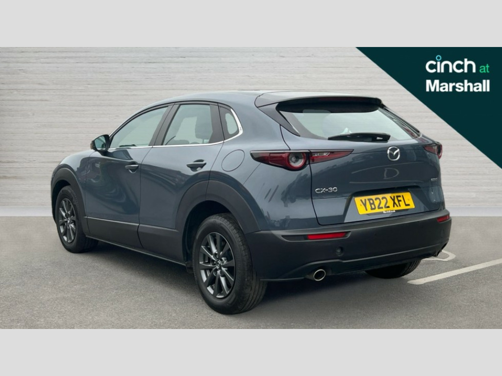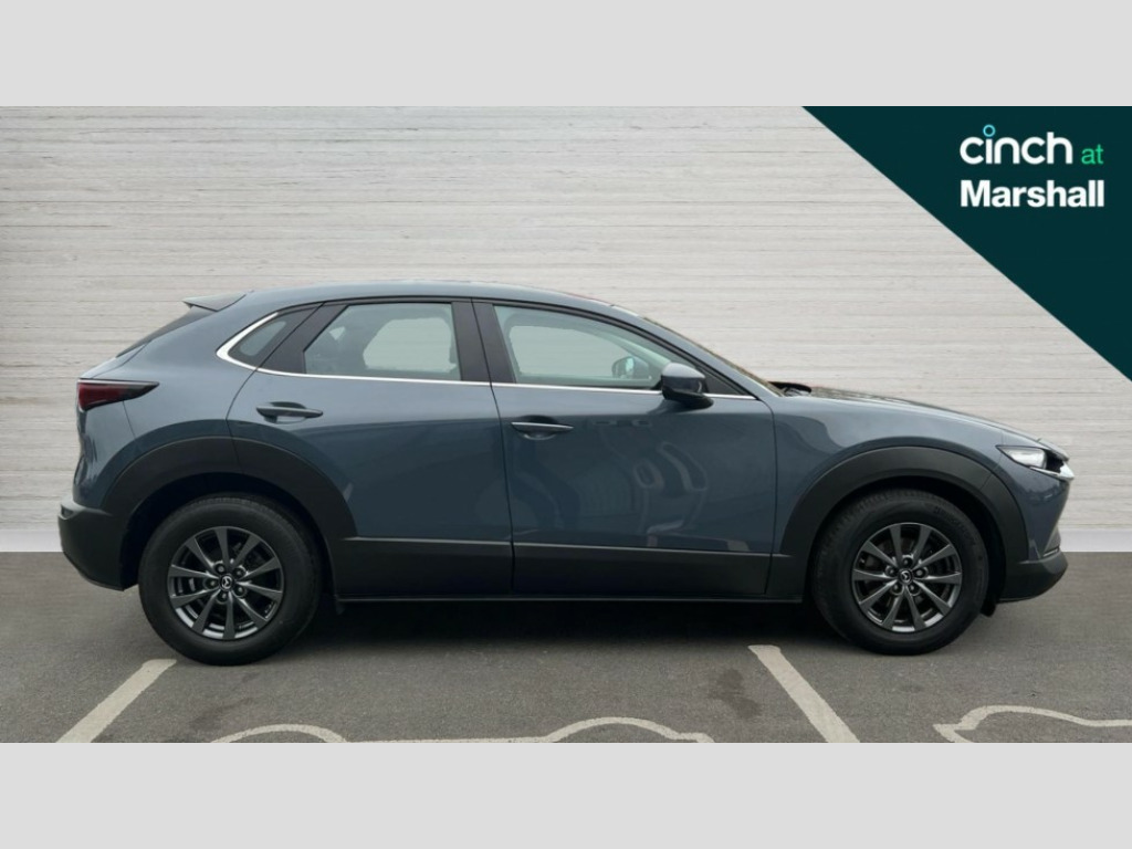 Mazda Cx-30 2.0 e-Skyactiv G MHEV SE-L Lux 5dr 7" TFT Colour driver instrument panel display, 8.8" Colour centre touch screen display with Mazda Connect infotainment, Adaptive cruise control (Mazda radar cruise control), Apple car play/Android Auto, Blind spot monitoring with rear cross traffic alert, Driver attention alert system, E-call with GPS, Emergency stop signalling system, Engine start/stop button, Front and rear parking sensors, Integrated bluetooth, Integrated Mazda navigation system, Intelligent speed assist, Lane keep assist system (LAS) with Lane departure warning system (LDWS), Mazda connected services, PAS, Reversing camera, Service indicator, Tailgate, Traffic sign recognition, Trip computer, Windscreen projected colour active driving display (HUD), Cylinder Deactivation, i-stop, 2 USB charging ports in front inner central armrest, AM / FM / DAB radio with 8 speakers, Multimedia Commander including separate volume dial, Steering wheel mounted audio/bluetooth controls, B-pillar and C-pillar garnishes in satin black finish, Auto dimming driver's door mirror, Auto dimming rear view mirror, Auto headlight levelling, Body coloured, electrically adjustable, heated auto power folding door mirrors with integrated indicators, Chrome finish signature wing in front grille, Coming/leaving home lighting function, Dual chrome exhaust, Dusk sensing headlights, Electric front/rear windows with one touch auto up/down, Front kodo turn signal, Gloss black rear roof spoiler, LED headlights with halogen daytime running lights and high beam control, LED rear combination lights, Rain sensing front wipers with adjustable speed and intermittent wipe, Rear fog lights, Rear side wing doors, Rear wiper, Satin black front grille, Third brake light, 12V power outlet in centre console, 3 seat bench in 2nd row, 60/40 split fold down rear seats, Cloth upholstery with interior accents, Dark cloth door panel inserts, Dashboard, door cards and front centre armrest in black cloth, Driver and front passenger visors with covered vanity mirror and driver ticket holder, Driver seat manual slide, recline, height and seat tilt adjust, Driver, front passenger and two rear door storage, Driver, Front passenger and two rear grab handles with coathooks, Dual zone climate control air conditioning with rear air vents, Folding rear centre armrest with two cup holders, Front and rear (x3) head restraints, Front and rear LED lighting, Front armrest, Front centre storage with two cupholders, Front passenger seatback pockets, Front passengers seat manual slide, recline and height adjustment, Gear shift indicator, Glovebox illumination, Heated front seats with 3 stage setting, ISOFIX child seat anchorage points attached on outer rear seats, Leather wrapped gear shift knob, Leather wrapped steering wheel with telescopic and tilt adjustment, LED luggage compartment lighting, Light roof headlining and pillars, Roof mounted sunglasses holder, Single front passenger seat, 3 point ELR front seat belts x2 with pretensioners, 3 point ELR rear seat belts, Anti-lock braking system (ABS), Drivers knee airbag, DSC - Dynamic Stability Control, Electronic parking brake with auto disengage function and auto hold function, Front and rear curtain airbags, Front dual stage driver and single stage front passenger airbags, Front passenger airbag cut-off switch, Front side airbags, Front smart city brake support, G-Vectoring control plus, Hill launch assist, Manual child lock in rear doors, Mild Hybrid system with regenerative braking, Seatbelt reminder for driver/front passenger and rear seats, Traction control system (TCS), Tyre pressure monitoring system (TPMS), Remote central locking with deadlocking and automatic door lock when driving, Smart keyless entry, Thatcham accredited alarm and immobiliser, 16" Grey alloy wheels, Emergency tyre repair kit