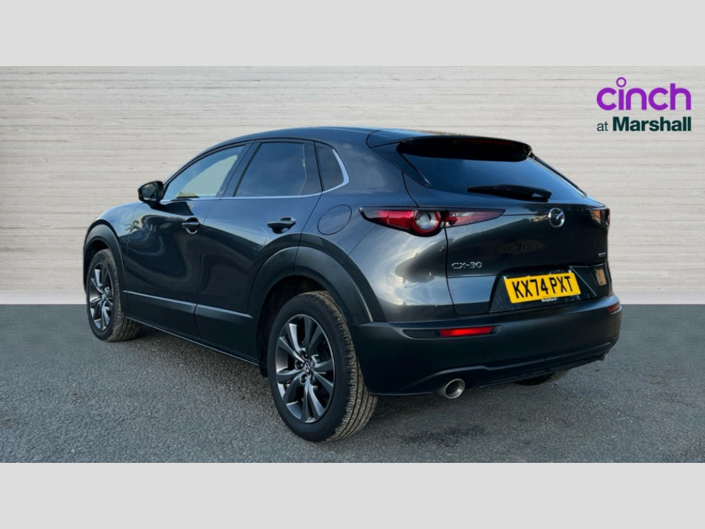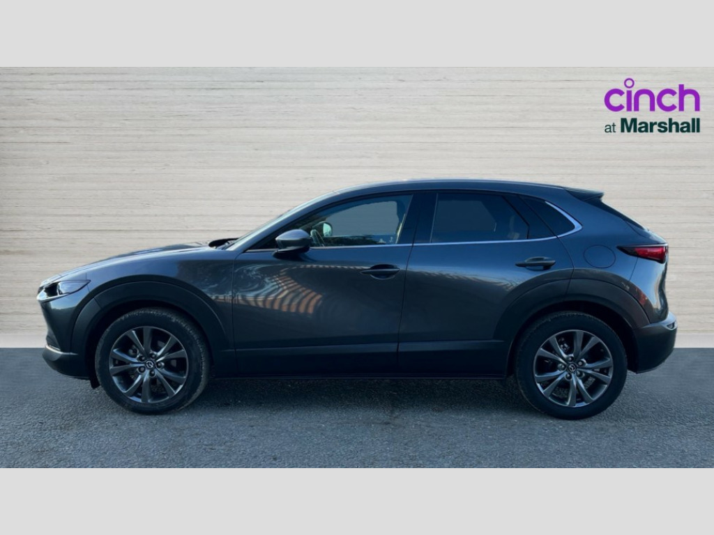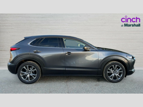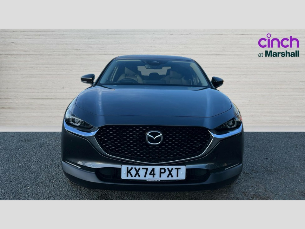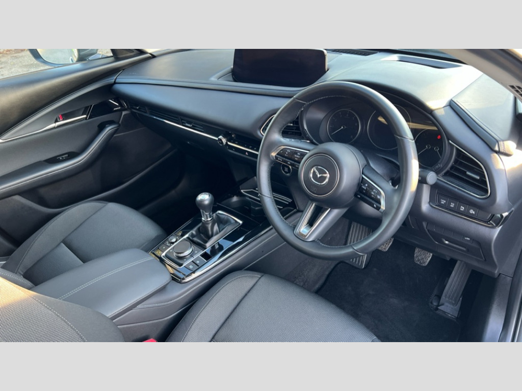 Mazda Cx-30 2.0 e-Skyactiv X MHEV Exclusive-Line 5dr 10.25" display with Mazda Connect infotainment, 7" TFT Colour driver instrument panel display, Adaptive cruise control (Mazda radar cruise control), Blind spot monitoring with rear cross traffic alert, Driver attention alert system, E-call with GPS, Emergency stop signalling system, Engine start/stop button, Front and rear parking sensors, Integrated Alexa Voice Assistant, Integrated bluetooth, Integrated Mazda navigation system, Intelligent speed assist, Lane keep assist system (LAS) with Lane departure warning system (LDWS), Mazda connected services, PAS, Power lift gate, Qi wireless charging, Reversing camera, Service indicator, Tailgate, Traffic sign recognition, Trip computer, Windscreen projected colour active driving display (HUD), Wireless Apple CarPlay/Android Auto, i-stop, 2 x USB Type-C inputs, AM/FM and DAB radio, Bose surround sound system with 12 Speaker, Bose center point, Bass match and audio pilot technology, Multimedia Commander including separate volume dial, Steering wheel mounted audio/bluetooth controls, Adaptive LED Headlights, Auto dimming driver's door mirror, B-pillar and C-pillar garnishes in gloss black finish, Body coloured, electrically adjustable, heated auto power folding door mirrors with integrated indicators, Chrome finish signature wing in front grille, Coming/leaving home lighting function, Dual bright finish exhaust tip trim, Dusk sensing headlights, Electric front/rear windows with one touch auto up/down, Frameless auto dimming interior rear view mirror, Front kodo turn signal, Gloss black front grille, Gloss black rear roof spoiler, High beam assist, LED auto headlight levelling, LED signature daytime running lights, Power tilt/slide sunroof, Privacy glass (rear side windows and rear screen), Rain sensing front wipers with adjustable speed and intermittent wipe, Rear fog lights, Rear side wing doors, Rear wiper, Signature LED rear combination lights, Third brake light, 12V power outlet in centre console, 3 seat bench in 2nd row, 60/40 split fold down rear seats, Bright interior trim accents with steering wheel centre bezel, surround of engine start / stop button and glove box handle, Cloth upholstery with interior accents, Dark cloth door panel inserts, Dashboard, door cards and front centre armrest in black cloth, Driver and front passenger visors with covered vanity mirror and driver ticket holder, Driver seat manual slide, recline, height and seat tilt adjust, Driver, front passenger and two rear door storage, Driver, Front passenger and two rear grab handles with coathooks, Dual zone climate control air conditioning with rear air vents, Folding rear centre armrest with two cup holders, Front and rear (x3) head restraints, Front and rear LED lighting, Front armrest, Front centre storage with two cupholders with lid, Front passenger seatback pockets, Front passengers seat manual slide, recline and height adjustment, Gear shift indicator, Glovebox illumination, Heated front seats with 3 stage setting, ISOFIX child seat anchorage points attached on outer rear seats, Leather wrapped gear shift knob, Leather wrapped steering wheel with telescopic and tilt adjustment, LED luggage compartment lighting, Light roof headlining and pillars, Roof mounted sunglasses holder, Single front passenger seat, 3 point ELR front seat belts x2 with pretensioners, 3 point ELR rear seat belts, Anti-lock braking system (ABS), Drivers knee airbag, DSC - Dynamic Stability Control, Electronic parking brake with auto disengage function and auto hold function, Front and rear curtain airbags, Front dual stage driver and single stage front passenger airbags, Front passenger airbag cut-off switch, Front side airbags, Front smart city brake support, G-Vectoring control plus, Hill launch assist, Manual child lock in rear doors, Mild Hybrid system with regenerative braking, Seatbelt reminder for driver/front passenger and rear seats, Traction control system (TCS), Tyre pressure monitoring system (TPMS), Remote central locking with deadlocking and automatic door lock when driving, Smart keyless entry, Thatcham accredited alarm and immobiliser, 18" Bright silver metallic alloy wheels, Emergency tyre repair kit