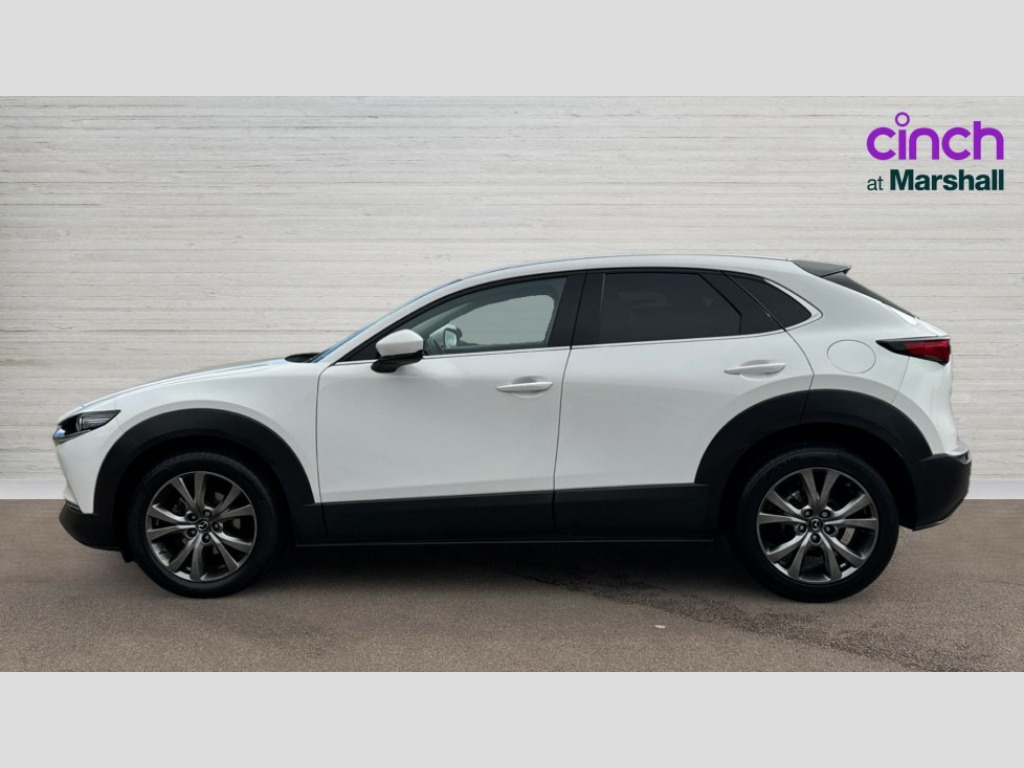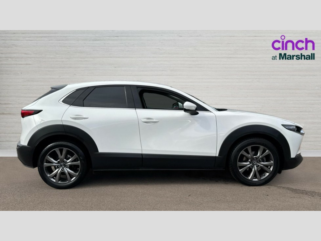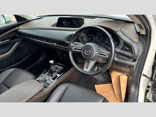 Mazda Cx-30 2.0 e-Skyactiv X MHEV GT Sport 5dr 7" TFT Colour driver instrument panel display, 8.8" Colour centre touch screen display with Mazda Connect infotainment, Adaptive cruise control (Mazda radar cruise control), Apple car play/Android Auto, Blind spot monitoring with rear cross traffic alert, Driver attention alert system, E-call with GPS, Emergency stop signalling system, Engine start/stop button, Front and rear parking sensors, Integrated bluetooth, Integrated Mazda navigation system, Intelligent speed assist, Lane keep assist system (LAS) with Lane departure warning system (LDWS), Mazda connected services, PAS, Power lift gate, Reversing camera, Service indicator, Traffic sign recognition, Trip computer, i-stop, 2 USB charging ports in front inner central armrest, AM/FM and DAB radio, Bose surround sound system with 12 Speaker, Bose center point, Bass match and audio pilot technology, Multimedia Commander including separate volume dial, Steering wheel mounted audio/bluetooth controls, Adaptive LED Headlights, Auto dimming driver's door mirror, Auto headlight levelling, B-pillar and C-pillar garnishes in piano black finish, Body coloured, electrically adjustable, heated auto power folding door mirrors with integrated indicators, Chrome finish signature wing in front grille, Coming/leaving home lighting function, Door mirrors with adjustable memory and tilt-down function when reversing, Dual chrome exhaust, Dusk sensing headlights, Electric front/rear windows with one touch auto up/down, Frameless auto dimming interior rear view mirror, Front kodo turn signal, Gloss black front grille, Gloss black rear roof spoiler, High beam assist, LED signature daytime running lights, Power tilt/slide sunroof, Privacy glass (rear side windows and rear screen), Rain sensing front wipers with adjustable speed and intermittent wipe, Rear fog lights, Rear side wing doors, Rear wiper, Signature LED rear combination lights, Third brake light, 12V power outlet in centre console, 3 seat bench in 2nd row, 60/40 split fold down rear seats, Chrome horn pad ring, Chrome interior trim accents with steering wheel centre bezel, surround of engine start / stop button and glove box handle, Dashboard, door cards and front centre armrest in rich brown leather, Driver and front passenger visors with covered vanity mirror and driver ticket holder, Driver's seat power slide, recline, height, seat tilt and lumbar adjustment with head up display and driver door mirror memory, Driver, front passenger and two rear door storage, Driver, Front passenger and two rear grab handles with coathooks, Dual zone climate control air conditioning with rear air vents, Folding rear centre armrest with two cup holders, Front and rear (x3) head restraints, Front and rear LED lighting, Front armrest, Front centre storage with two cupholders with lid, Front passenger seatback pockets, Front passengers seat manual slide, recline and height adjustment, Gear shift indicator, Glovebox illumination, Heated front seats with 3 stage setting, Heated steering wheel, ISOFIX child seat anchorage points attached on outer rear seats, Leather upholstery with interior accents, Leather wrapped gear shift knob, Leather wrapped steering wheel with telescopic and tilt adjustment, LED luggage compartment lighting, Light roof headlining and pillars, Rear armrest inner material in cloth, Roof mounted sunglasses holder, Single front passenger seat, 3 point ELR front seat belts x2 with pretensioners, 3 point ELR rear seat belts, Anti-lock braking system (ABS), Drivers knee airbag, DSC - Dynamic Stability Control, Electronic parking brake with auto disengage function and auto hold function, Front and rear curtain airbags, Front dual stage driver and single stage front passenger airbags, Front passenger airbag cut-off switch, Front side airbags, Front smart city brake support, G-Vectoring control plus, Hill launch assist, Manual child lock in rear doors, Mild Hybrid system with regenerative braking, Seatbelt reminder for driver/front passenger and rear seats, Traction control system (TCS), Tyre pressure monitoring system (TPMS), Remote central locking with deadlocking and automatic door lock when driving, Smart keyless entry, Thatcham accredited alarm and immobiliser, Dark vinyl door panel inserts, 18" Bright alloy wheels, Emergency tyre repair kit