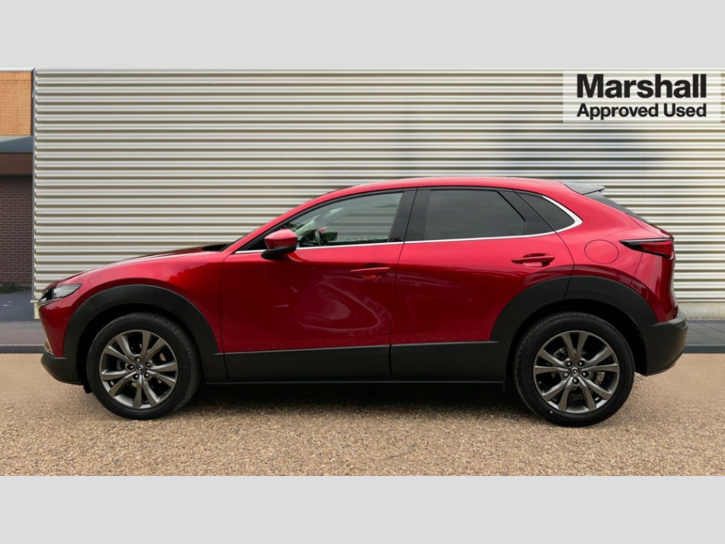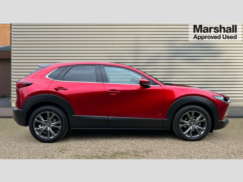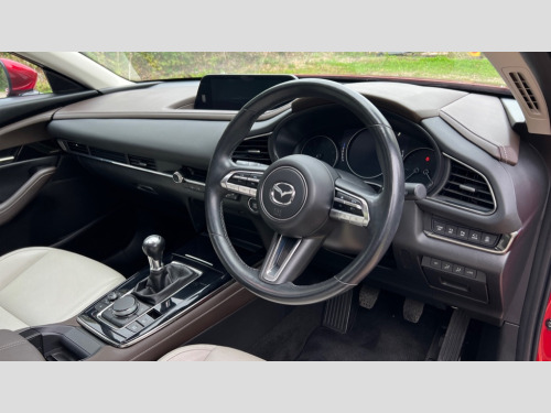 Mazda Cx-30 2.0 e-Skyactiv X MHEV GT Sport Tech 5dr 360 View Monitor, 7" TFT Colour driver instrument panel display, 8.8" Colour centre touch screen display with Mazda Connect infotainment, Adaptive cruise control (Mazda radar cruise control), Apple car play/Android Auto, Blind spot monitoring with rear cross traffic alert, Cruising Traffic Support, Driver attention alert system, Driver monitoring system, E-call with GPS, Emergency stop signalling system, Engine start/stop button, Front and rear parking sensors, Front Cross Traffic Alert, Integrated bluetooth, Integrated Mazda navigation system, Intelligent speed assist, Lane keep assist system (LAS) with Lane departure warning system (LDWS), PAS, Power lift gate, Service indicator, Trip computer, Window projected colour active driving display (head up display) with traffic sign recognition, i-stop, 2 USB charging ports, Bose surround sound system with 12 Speaker, Bose center point, Bass match and audio pilot technology, DAB Digital radio, Multimedia Commander including separate volume dial, Steering wheel mounted audio/bluetooth controls, Adaptive LED Headlights, Auto dimming driver's door mirror, B-pillar and C-pillar garnishes in piano black finish, Body coloured, electrically adjustable, heated auto power folding door mirrors with integrated indicators, Coming/leaving home lighting function, Door mirrors with tilt-down function when reversing, Dual chrome exhaust, Dusk sensing headlights, Electric front/rear windows with one touch auto up/down, Frameless auto dimming interior rear view mirror, Front grille in piano black finish, Front kodo turn signal, High beam assist, Piano black rear roof spoiler, Power tilt/slide sunroof, Privacy glass (rear side windows and rear screen), Rain sensing front wipers with adjustable speed and intermittent wipe, Rear fog lights, Rear wiper, Signature front LED daytime running lights, Signature LED rear combination lights with LED rear turn lights, 60/40 split fold down rear seats, Chrome centre bezel steering wheel, Chrome horn pad ring, Dashboard, door cards and front centre armrest in rich brown leather, Driver and front passenger visors with covered vanity mirror and driver ticket holder, Driver seat memory function, Driver's seat, power tilt, slide, recline, height and lumbar adjustment, Driver, Front passenger and two rear grab handles with coathooks, Dual zone climate control air conditioning with rear air vents, Electrical power outlet, Folding rear centre armrest with two cup holders, Front and rear (x3) head restraints, Front and rear door pockets, Front and rear LED lighting, Front armrest, Front centre storage with two cupholders, Front passengers seat manual slide, recline and height adjustment, Gear shift indicator, Glove box handle with chrome surround, Glovebox illumination, Heated front seats with 3 stage setting, Heated steering wheel, ISOFIX child seat anchorage points attached on outer rear seats, Leather wrapped gear shift knob, Leather wrapped steering wheel with telescopic and tilt adjustment, Luggage compartment light, Rear passenger seat map pockets, Roof mounted sunglasses holder, Vinyl leather door panel inserts, 3 point ELR front seat belts x2 with pretensioners, 3 point ELR rear seat belts, Anti-lock braking system (ABS), Driver/Front Passenger airbags, Drivers knee airbag, DSC - Dynamic Stability Control, Electronic parking brake with auto disengage function and auto hold function, Front and rear curtain airbags, Front and rear smart city brake support, Front passenger airbag cut-off switch, Front side airbags, G-Vectoring control plus, Hill launch assist, Mild Hybrid system with regenerative braking, Rear cross traffic braking, Seatbelt reminder for driver/front passenger and rear seats, Traction control system (TCS), Tyre pressure monitoring system (TPMS), Remote central locking with deadlocking and automatic door lock when driving, Smart keyless entry, Thatcham accredited alarm and immobiliser, 18" Bright silver metallic alloy wheels, Emergency tyre repair kit
