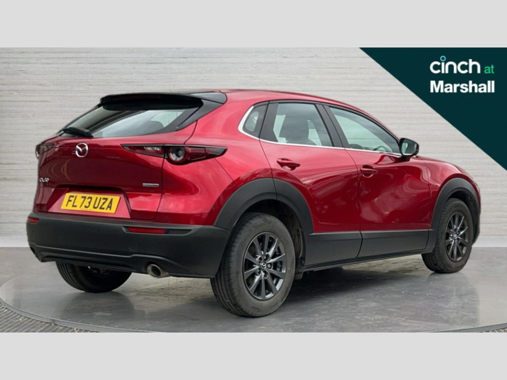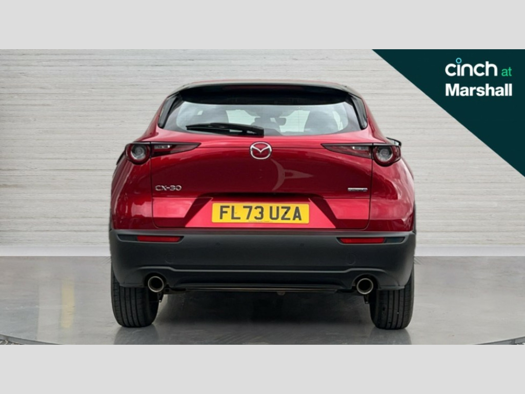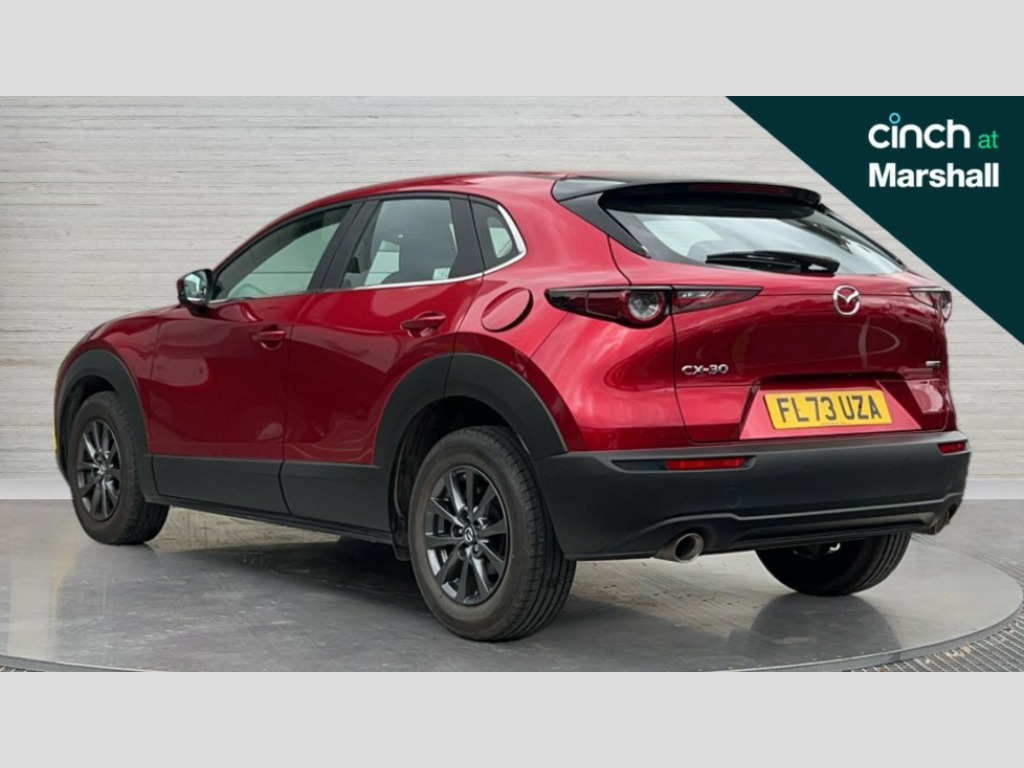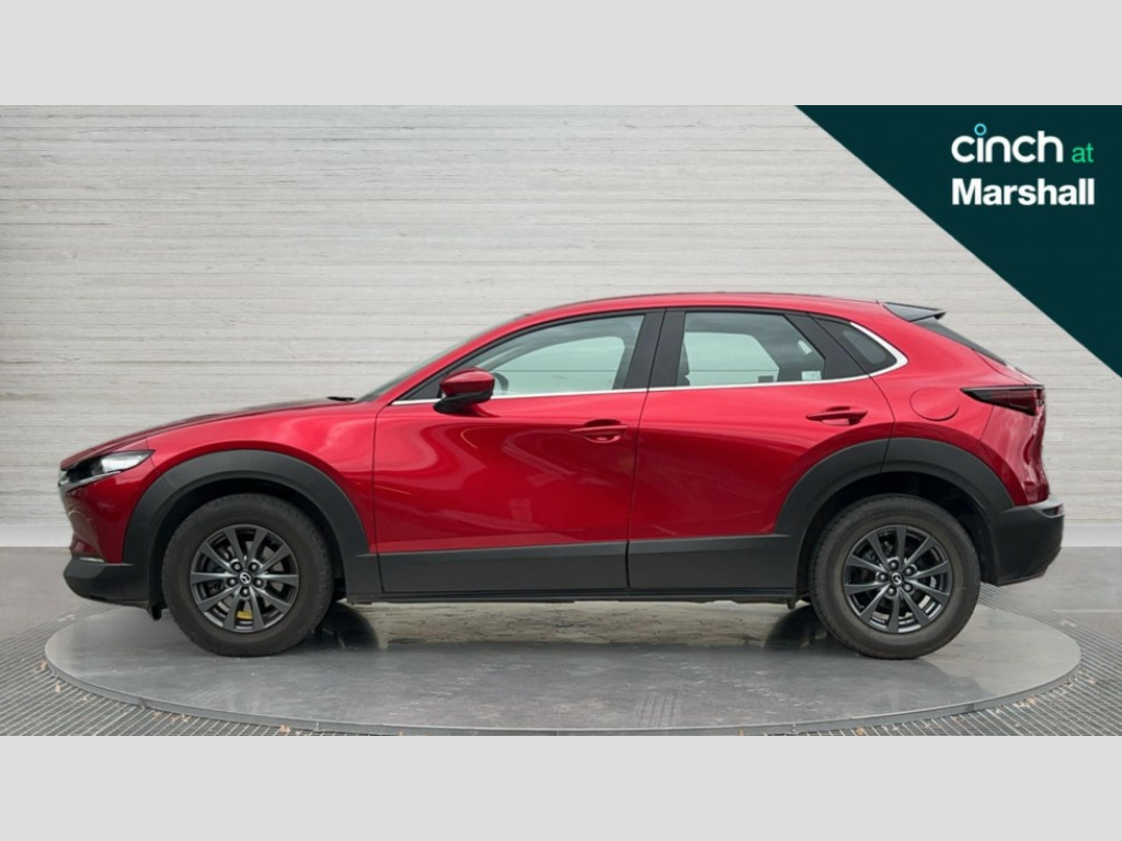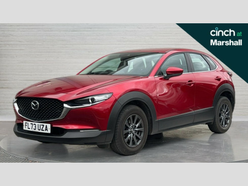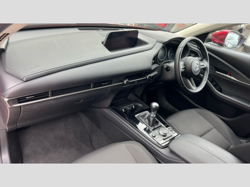 Mazda Cx-30 2.0 e-Skyactiv X MHEV SE-L Lux 5dr 7" TFT Colour driver instrument panel display, 8.8" Colour centre touch screen display with Mazda Connect infotainment, Adaptive cruise control (Mazda radar cruise control), Apple car play/Android Auto, Blind spot monitoring with rear cross traffic alert, Driver attention alert system, E-call with GPS, Emergency stop signalling system, Engine start/stop button, Front and rear parking sensors, Integrated bluetooth, Integrated Mazda navigation system, Intelligent speed assist, Lane keep assist system (LAS) with Lane departure warning system (LDWS), Mazda connected services, PAS, Reversing camera, Service indicator, Tailgate, Traffic sign recognition, Trip computer, Windscreen projected colour active driving display (HUD), i-stop, 2 USB charging ports in front inner central armrest, AM / FM / DAB radio with 8 speakers, Multimedia Commander including separate volume dial, Steering wheel mounted audio/bluetooth controls, B-pillar and C-pillar garnishes in satin black finish, Auto dimming driver's door mirror, Auto dimming rear view mirror, Auto headlight levelling, Body coloured, electrically adjustable, heated auto power folding door mirrors with integrated indicators, Chrome finish signature wing in front grille, Coming/leaving home lighting function, Dual chrome exhaust, Dusk sensing headlights, Electric front/rear windows with one touch auto up/down, Front kodo turn signal, Gloss black rear roof spoiler, LED headlights with halogen daytime running lights and high beam control, LED rear combination lights, Rain sensing front wipers with adjustable speed and intermittent wipe, Rear fog lights, Rear side wing doors, Rear wiper, Satin black front grille, Third brake light, 12V power outlet in centre console, 3 seat bench in 2nd row, 60/40 split fold down rear seats, Cloth upholstery with interior accents, Dark cloth door panel inserts, Dashboard, door cards and front centre armrest in black cloth, Driver and front passenger visors with covered vanity mirror and driver ticket holder, Driver seat manual slide, recline, height and seat tilt adjust, Driver, front passenger and two rear door storage, Driver, Front passenger and two rear grab handles with coathooks, Dual zone climate control air conditioning with rear air vents, Folding rear centre armrest with two cup holders, Front and rear (x3) head restraints, Front and rear LED lighting, Front armrest, Front centre storage with two cupholders, Front passenger seatback pockets, Front passengers seat manual slide, recline and height adjustment, Gear shift indicator, Glovebox illumination, Heated front seats with 3 stage setting, ISOFIX child seat anchorage points attached on outer rear seats, Leather wrapped gear shift knob, Leather wrapped steering wheel with telescopic and tilt adjustment, LED luggage compartment lighting, Light roof headlining and pillars, Roof mounted sunglasses holder, Single front passenger seat, 3 point ELR front seat belts x2 with pretensioners, 3 point ELR rear seat belts, Anti-lock braking system (ABS), Drivers knee airbag, DSC - Dynamic Stability Control, Electronic parking brake with auto disengage function and auto hold function, Front and rear curtain airbags, Front dual stage driver and single stage front passenger airbags, Front passenger airbag cut-off switch, Front side airbags, Front smart city brake support, G-Vectoring control plus, Hill launch assist, Manual child lock in rear doors, Mild Hybrid system with regenerative braking, Seatbelt reminder for driver/front passenger and rear seats, Traction control system (TCS), Tyre pressure monitoring system (TPMS), Remote central locking with deadlocking and automatic door lock when driving, Smart keyless entry, Thatcham accredited alarm and immobiliser, 16" Grey alloy wheels, Emergency tyre repair kit